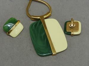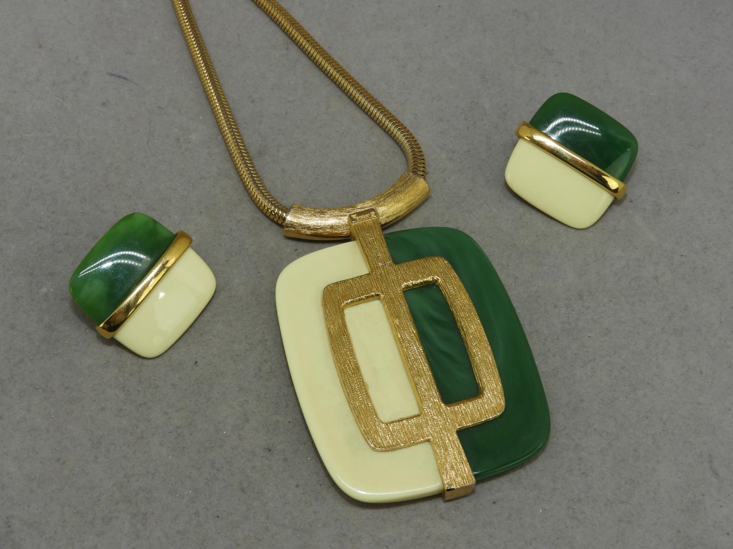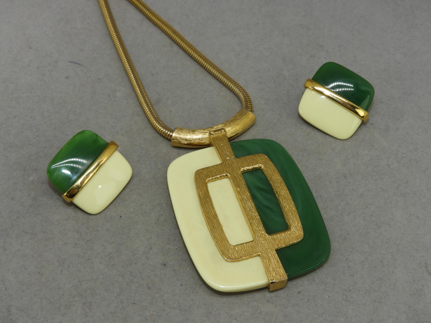 signed trifari lucite mid century pendant and earrings suite