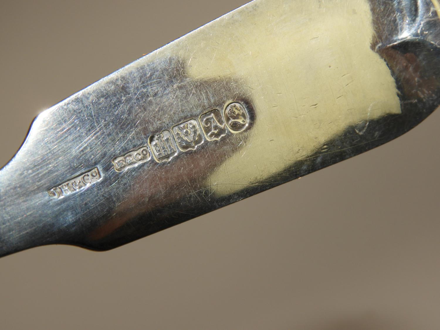 english georgian hallmarked sterling silver stuffing spoon, length 12", 101 grams