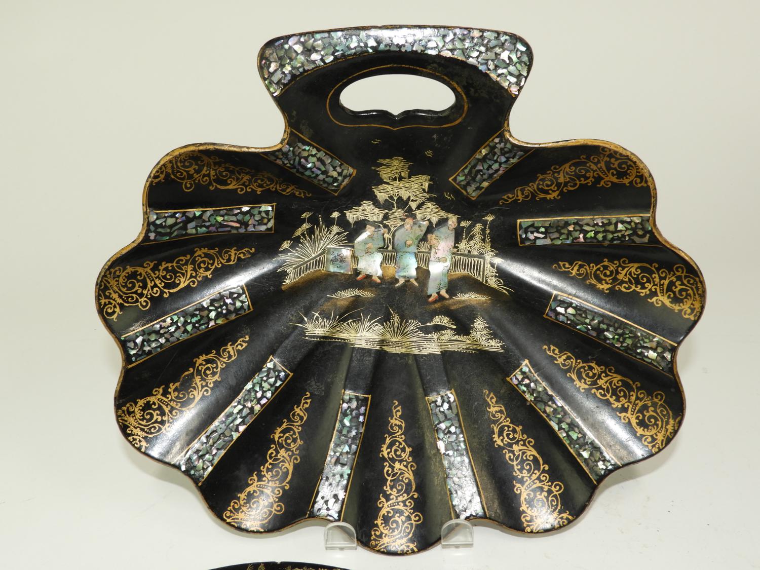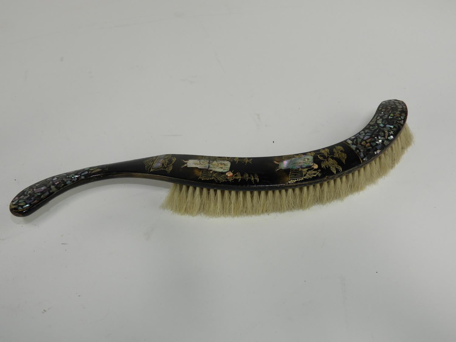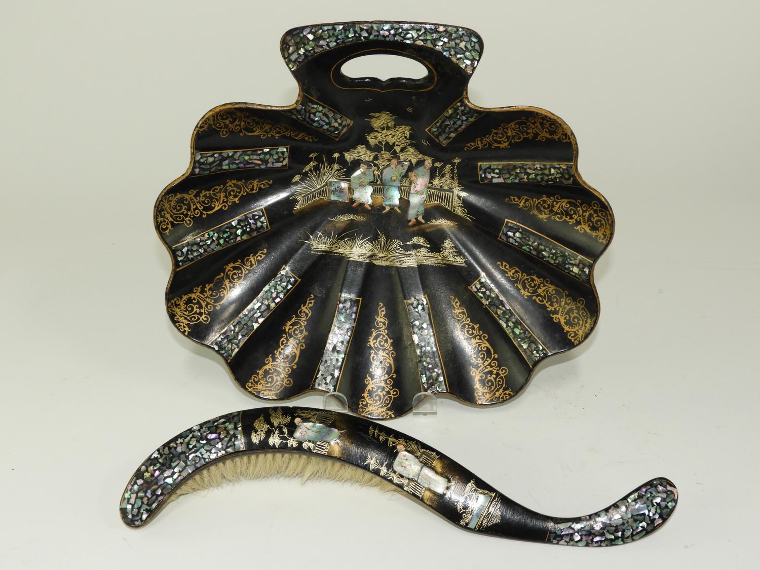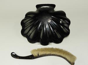 19th century lacquered crumb tray and brush