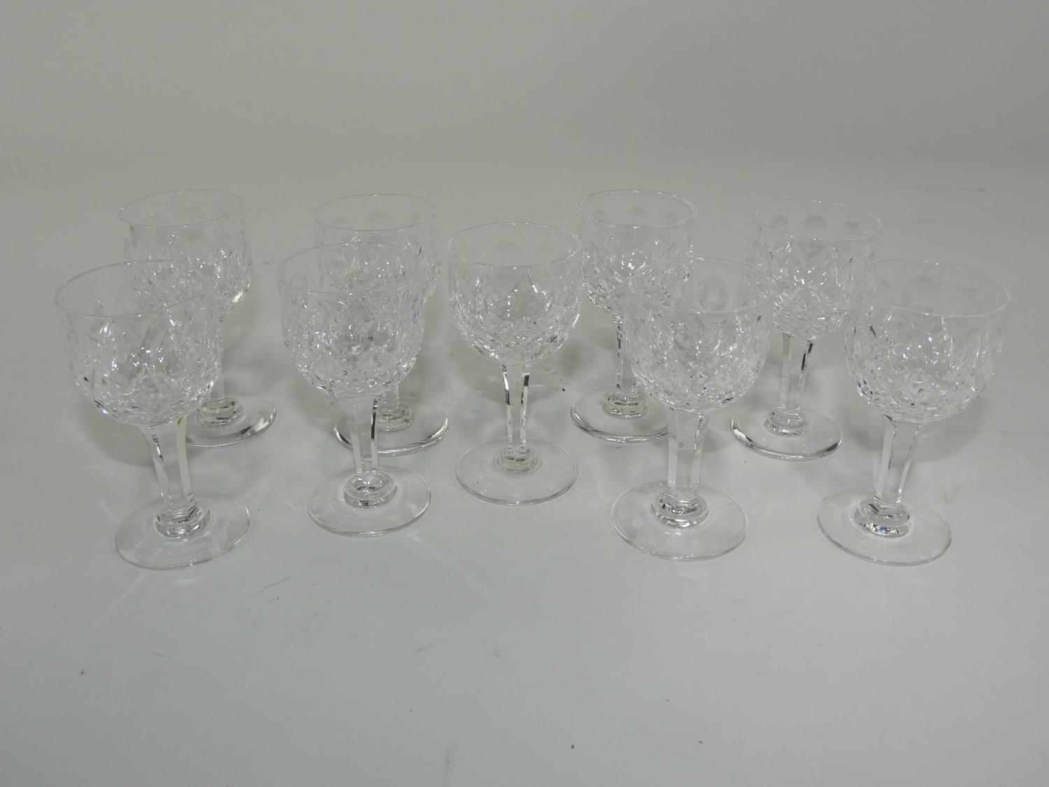 set of 9 stuart cut crystal toasting/shot glasses, ht. 3 1/2"