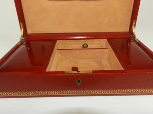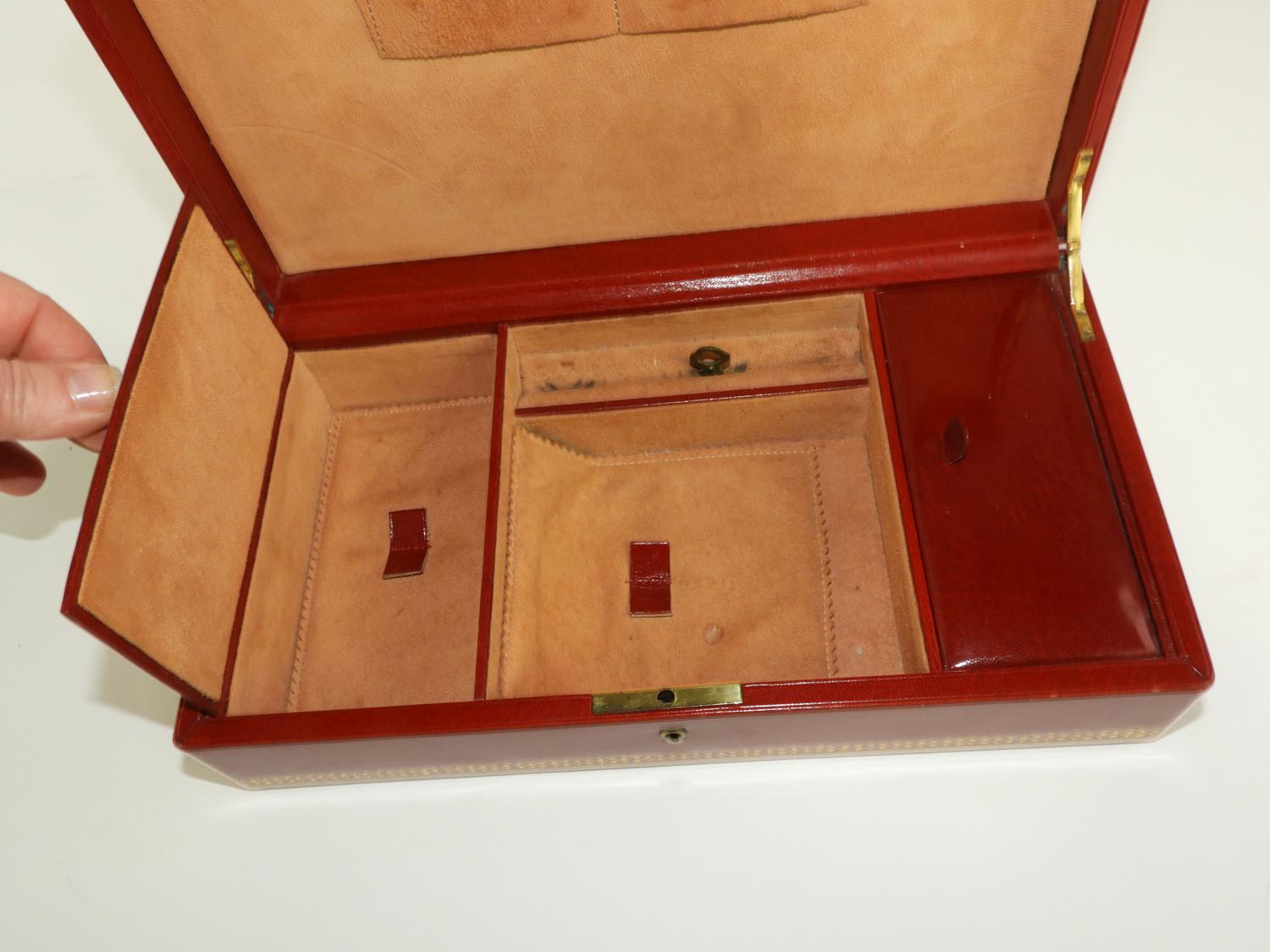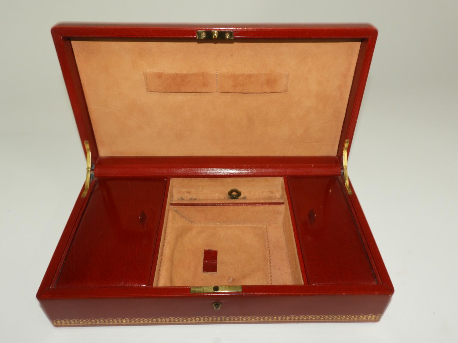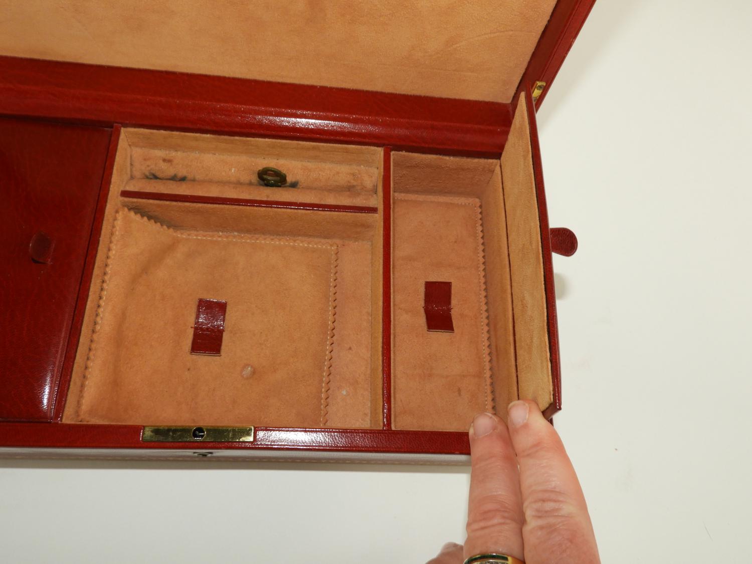 tooled leather jewelery box with key, made in spain, suede lined, 11 1/2" x 6" x 3"