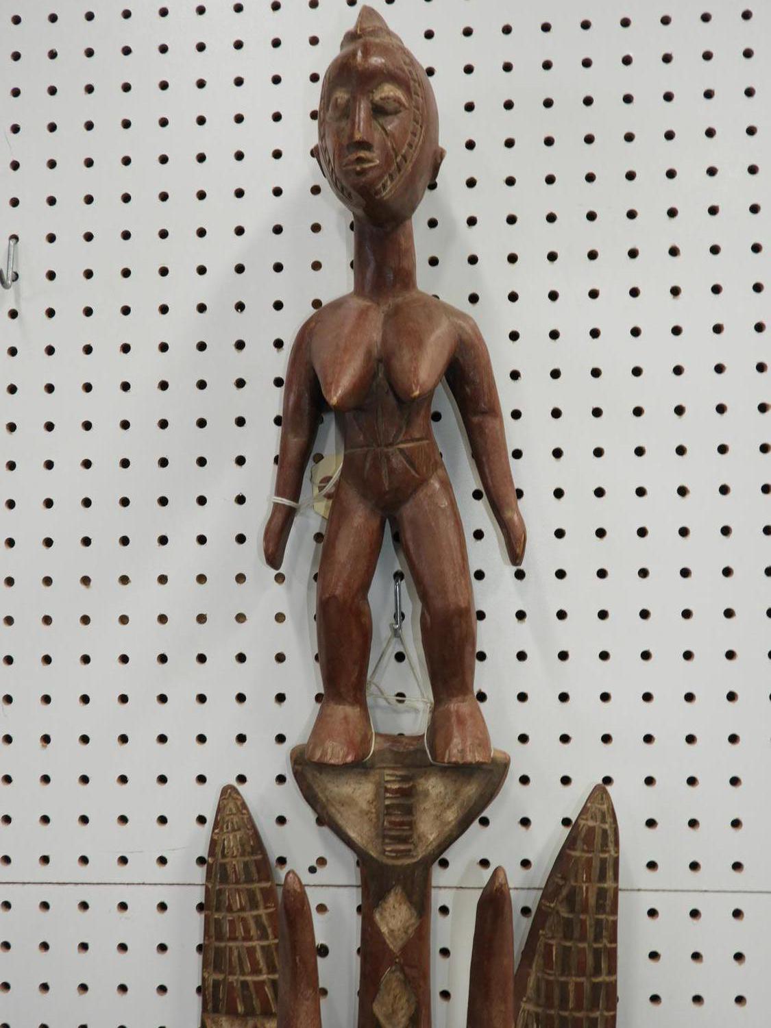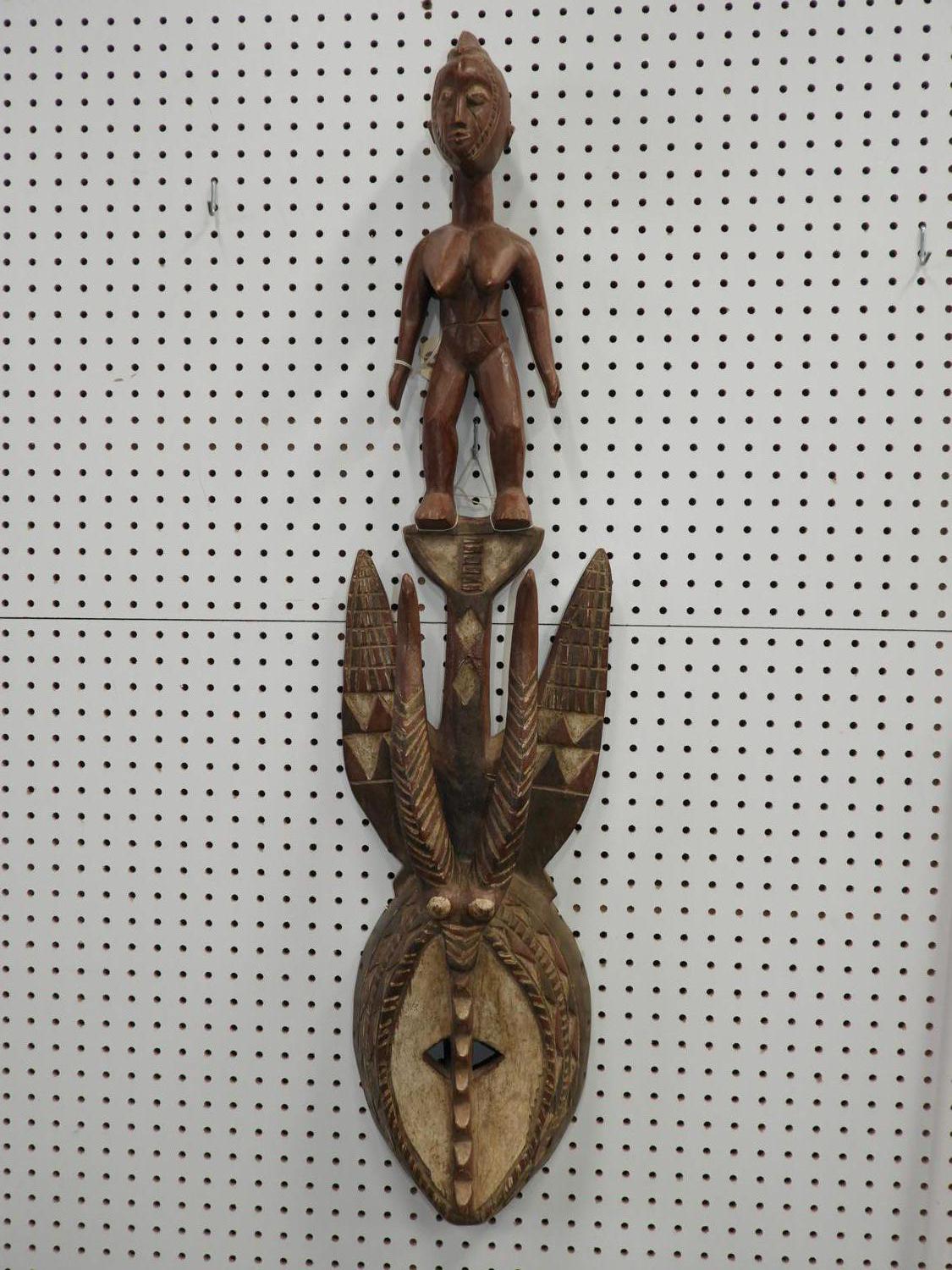 mossi karanga mask with figural surmount, burkina faso, west africa, late 20th century, ht. 42 1/4"