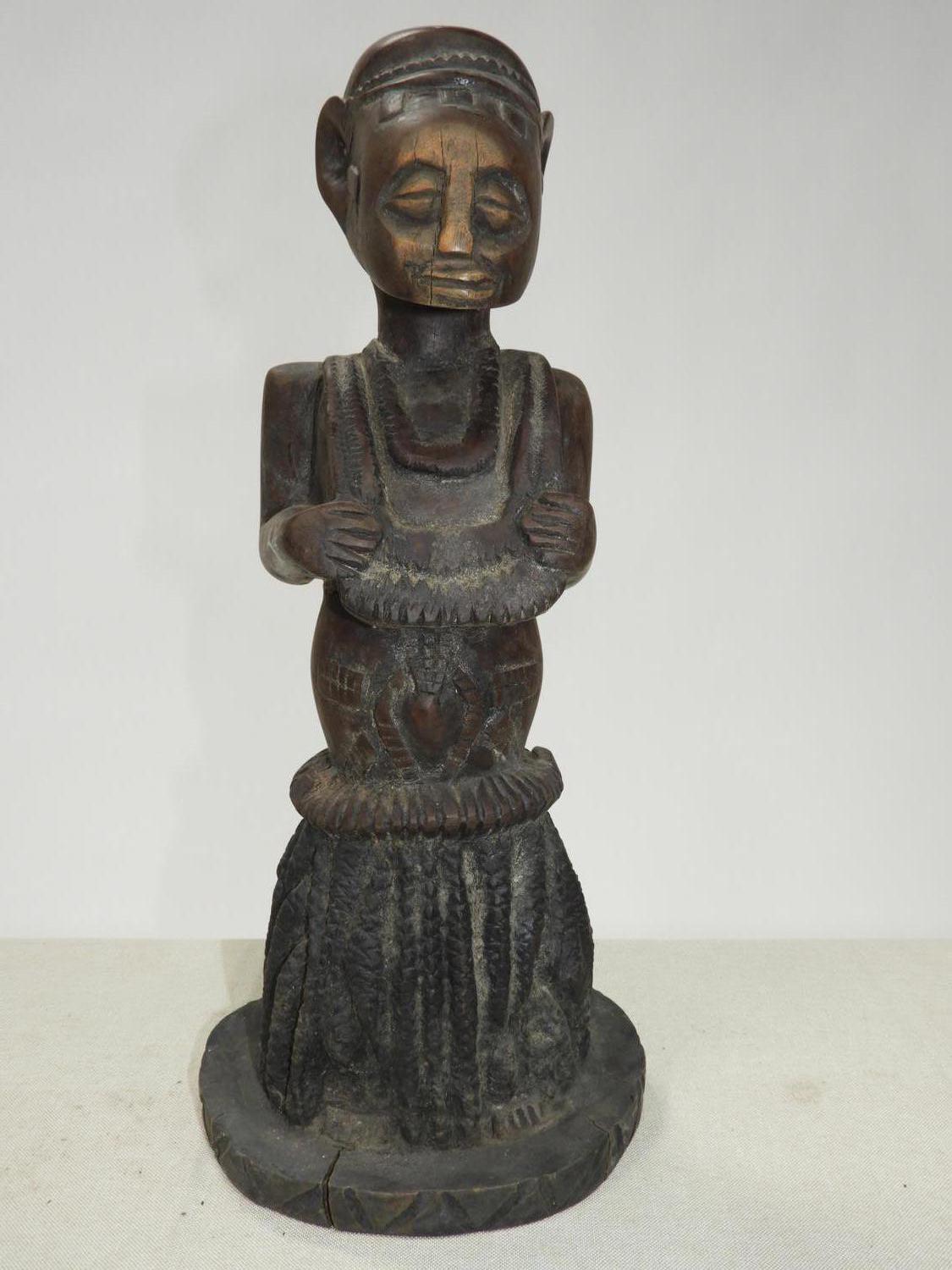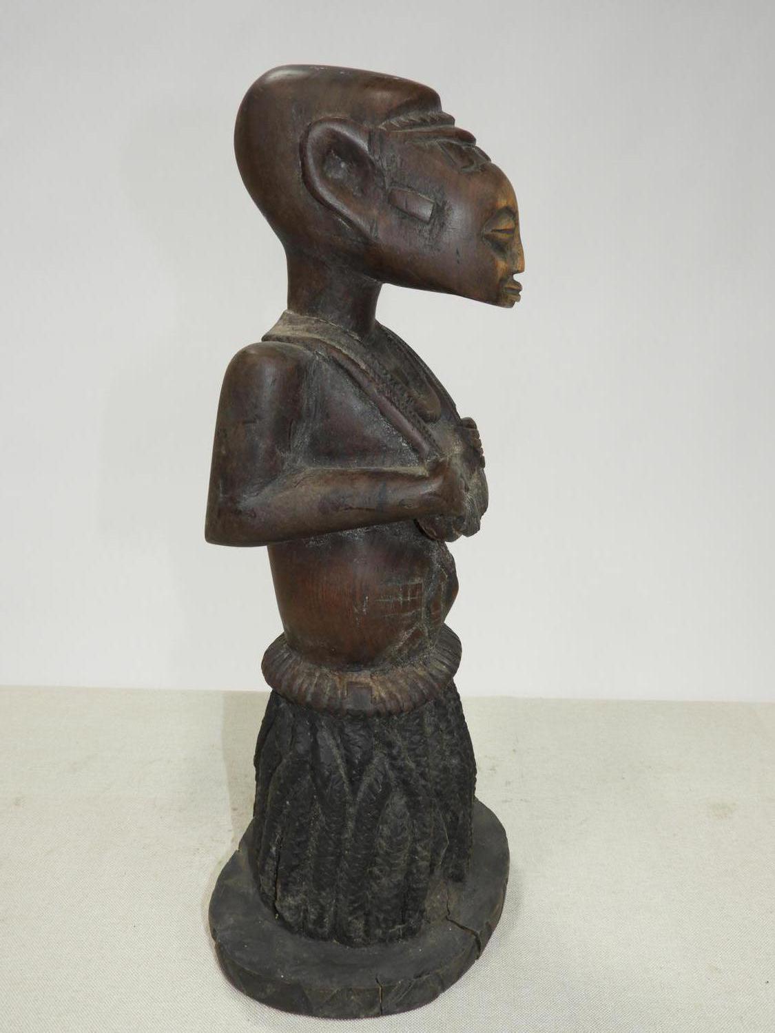 african carved female figure, possibly yoruba or luba, 20th century, ht. 15 1/2"