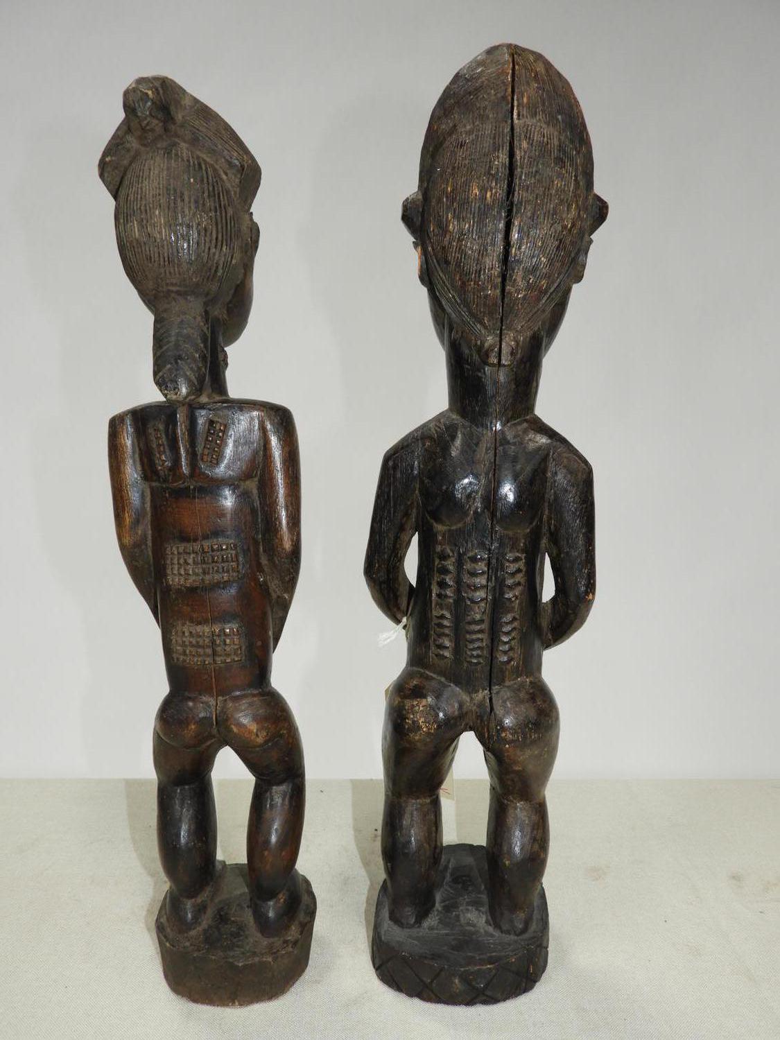 baule male and female figures, ivory coast/liberia, west africa, mid to late 20th century, ht. 19"
