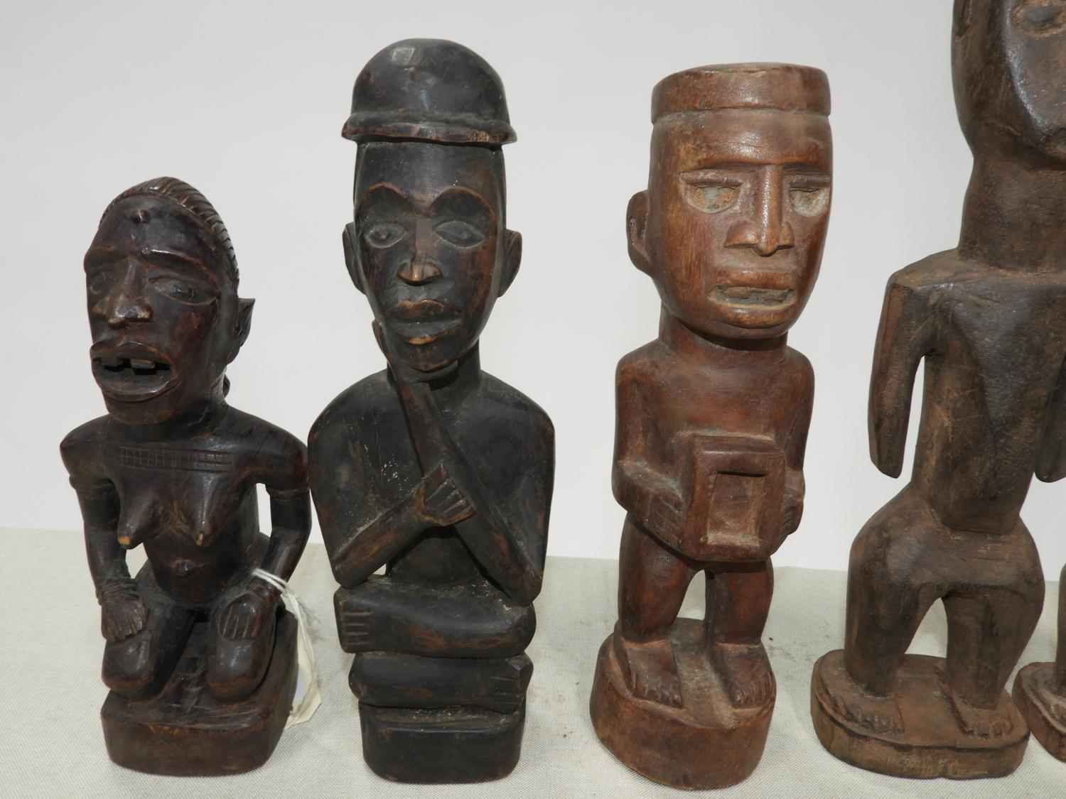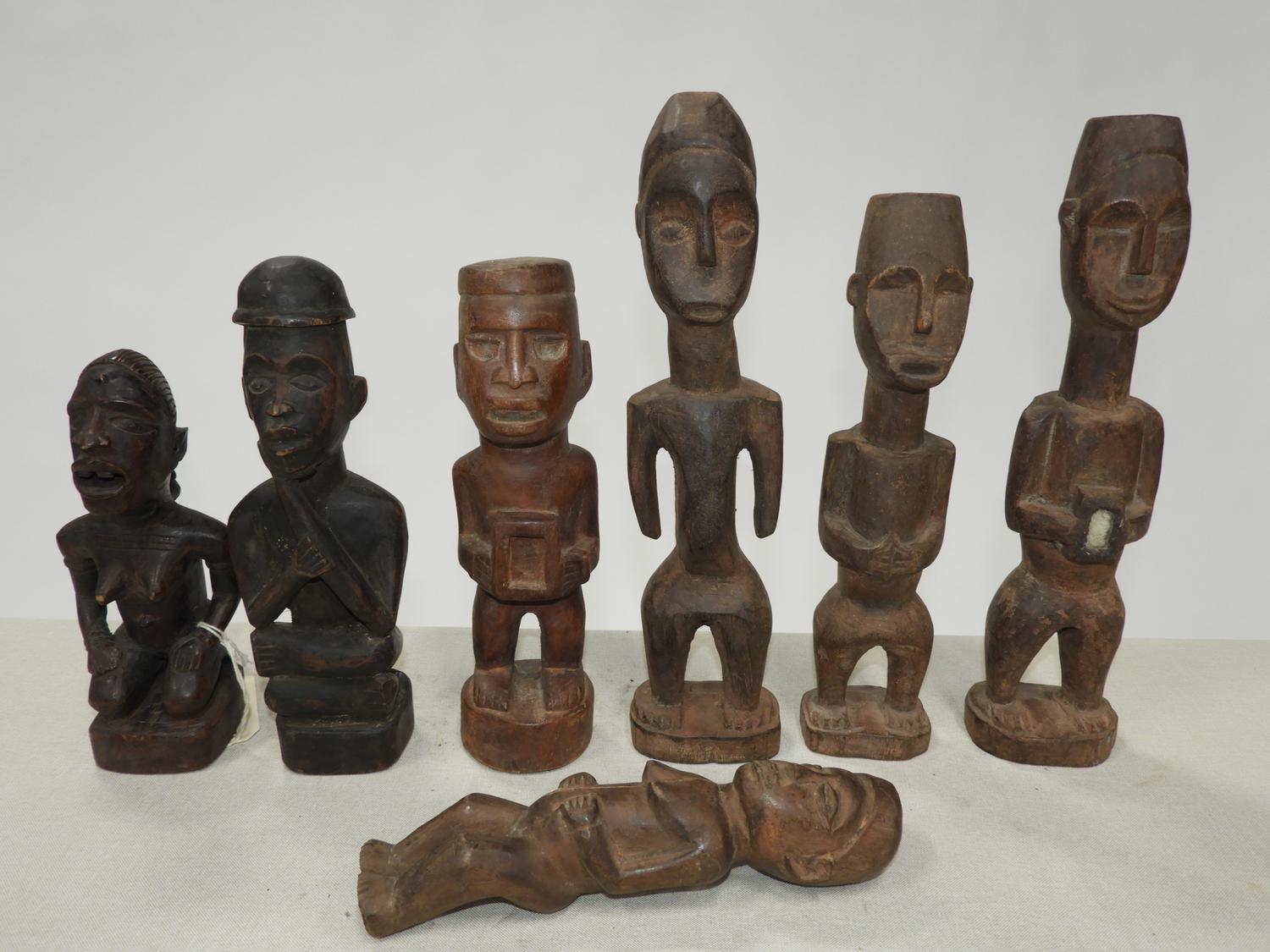 six kongo figures, democratic republic of congo, central africa, 20th century, ht. 14 1/2"