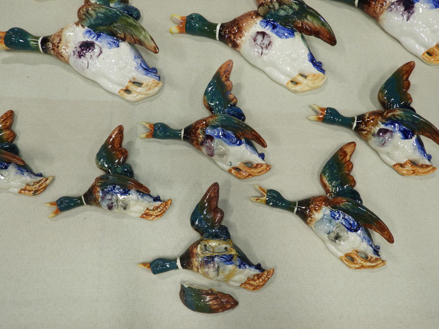 lot of japanese porcelain ducks, mid 20th century, half repaired