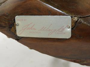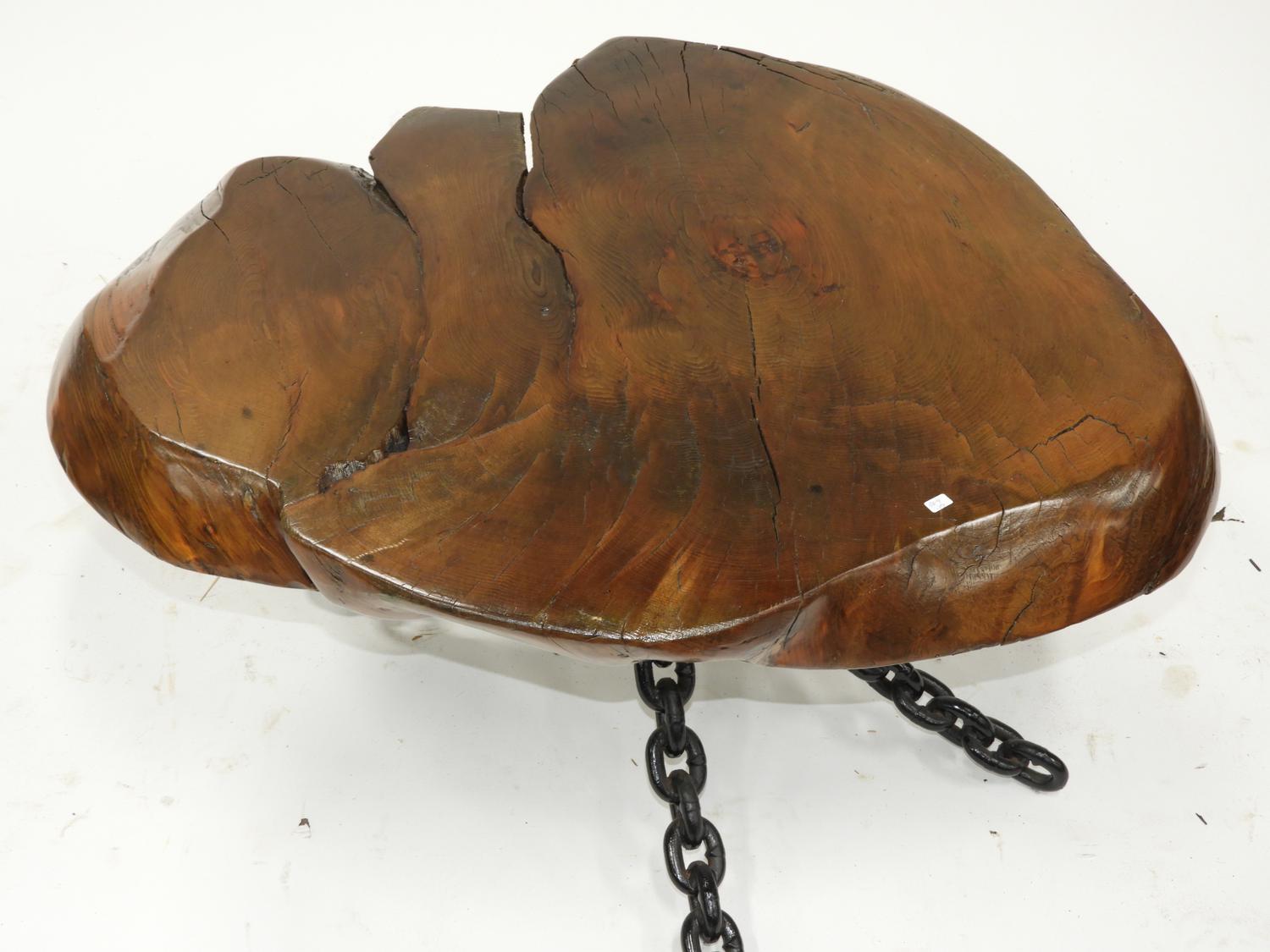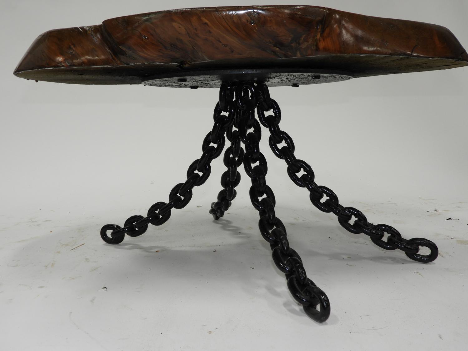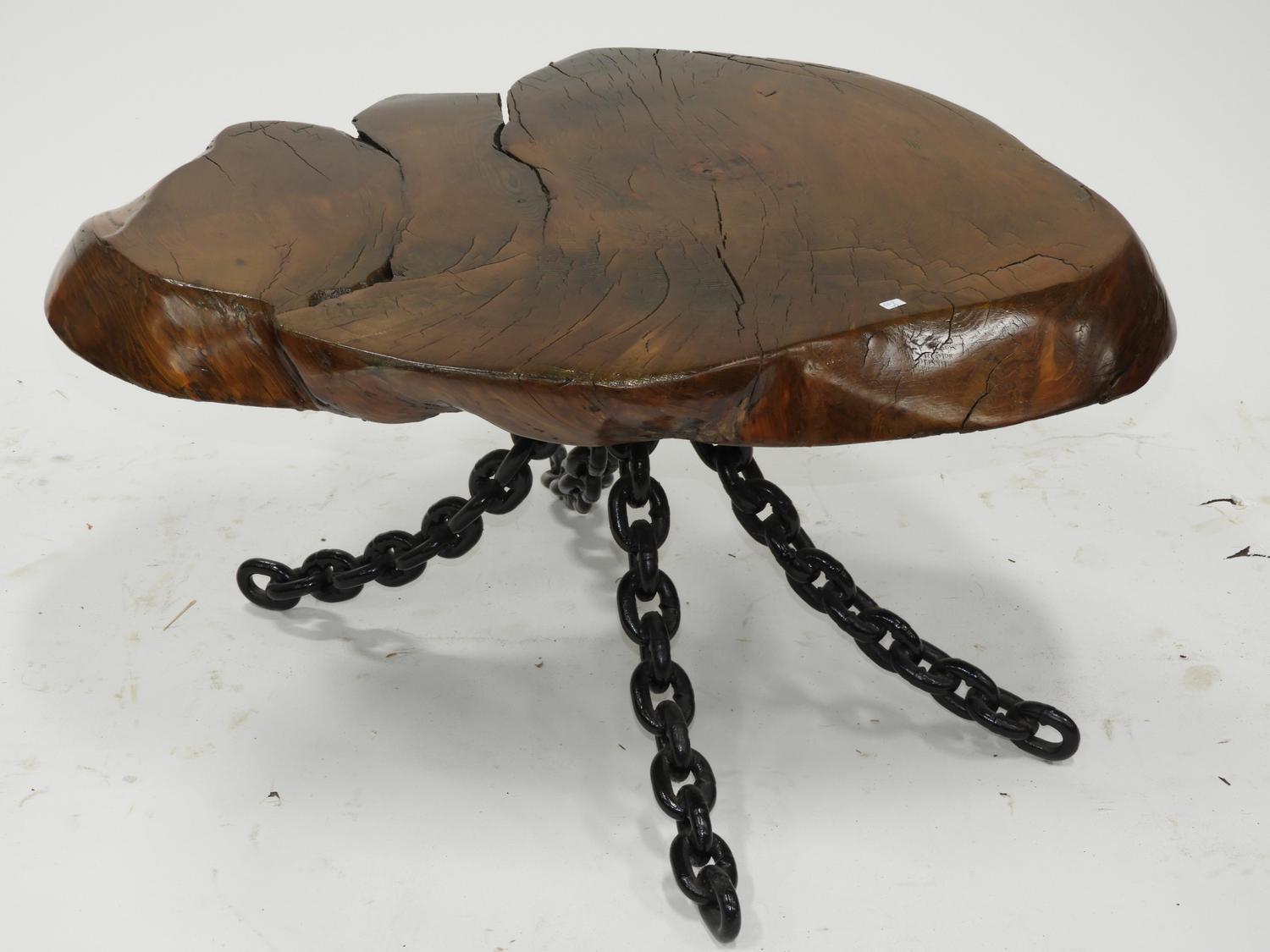 vintage maple live edge and chain link pedestal coffee table by john wright, montreal canada