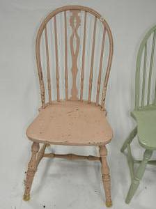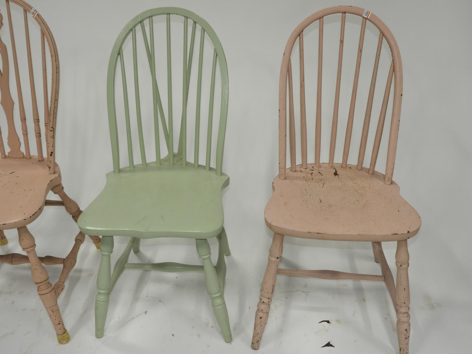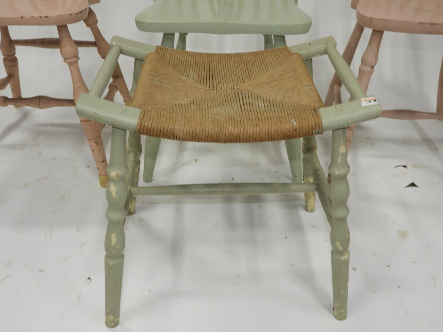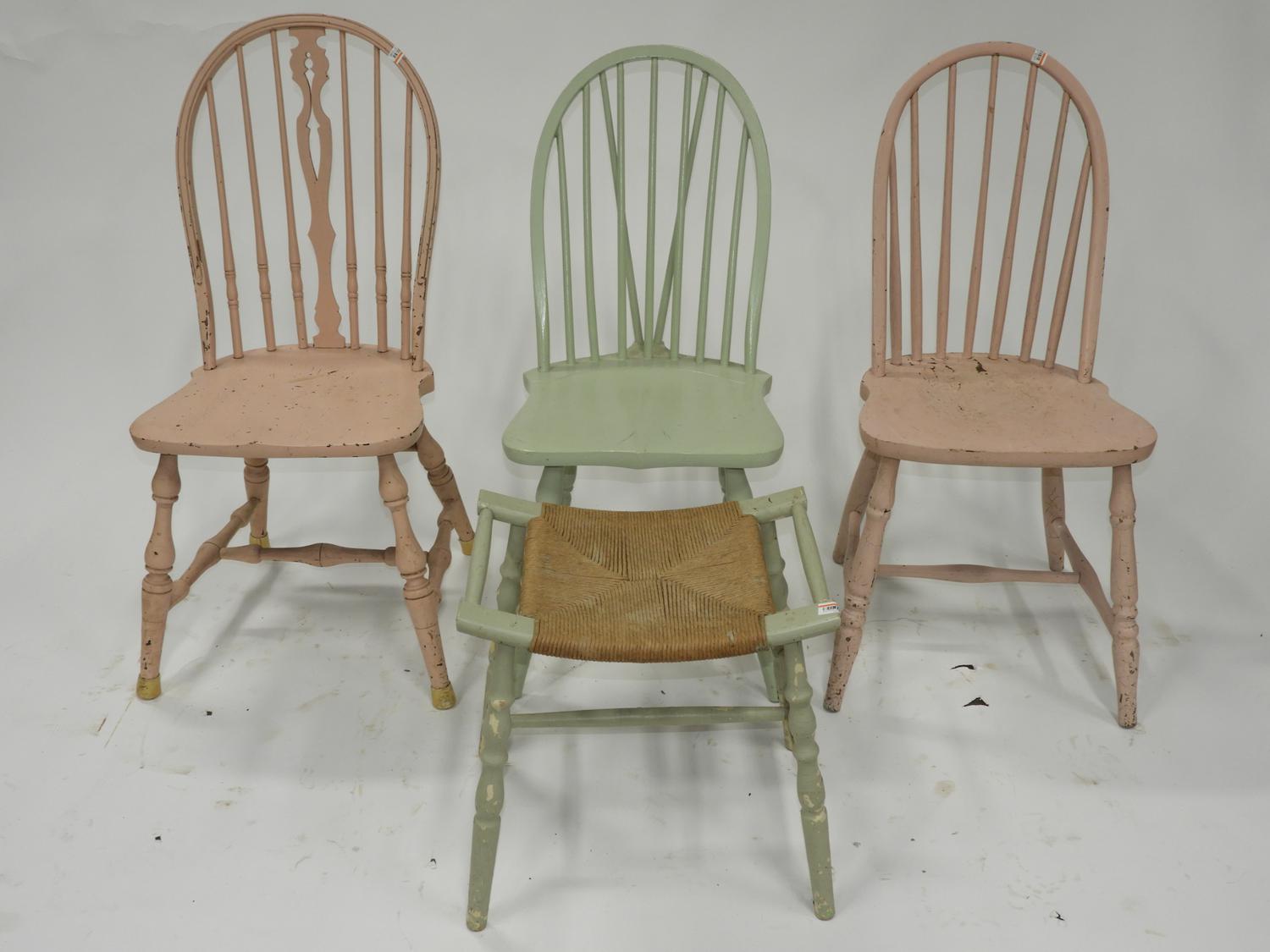 three painted side chairs and a stool