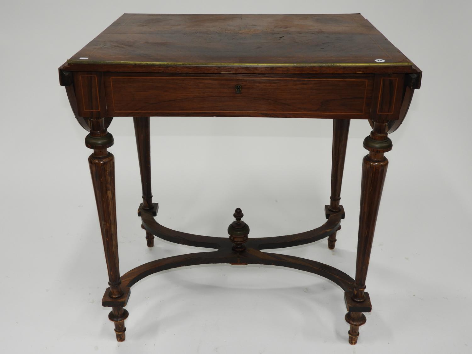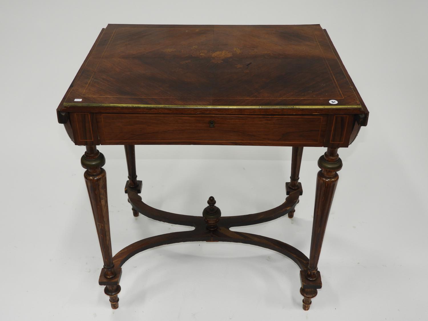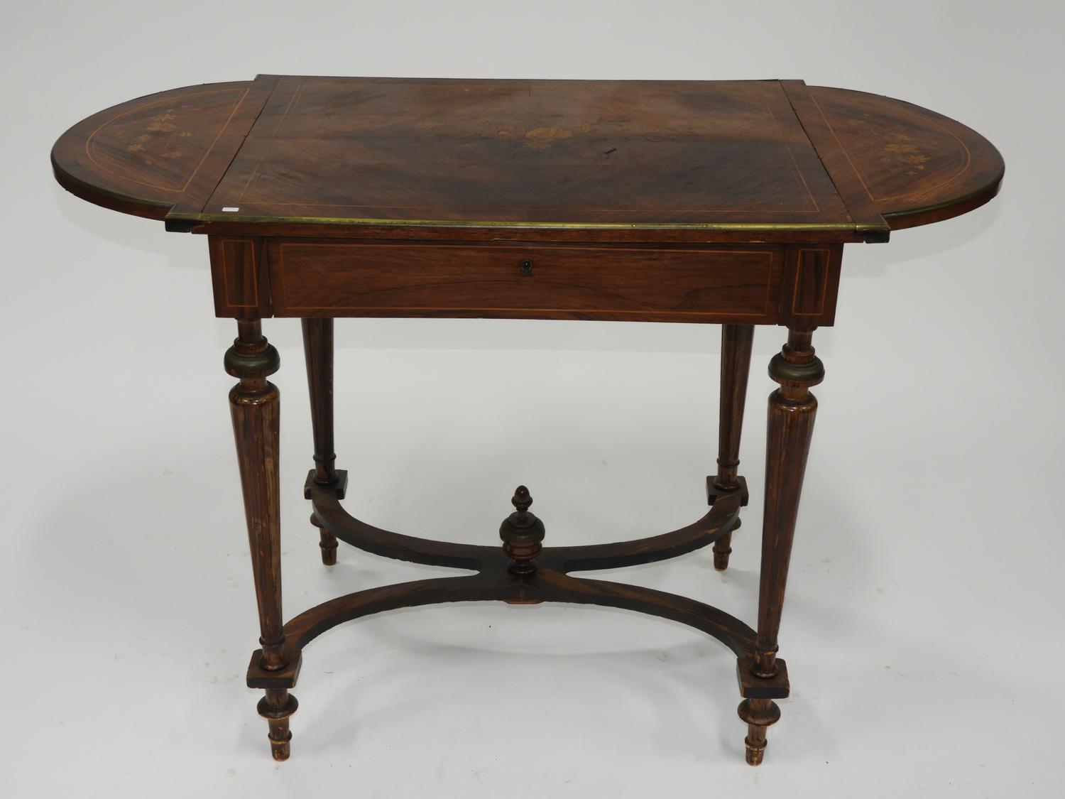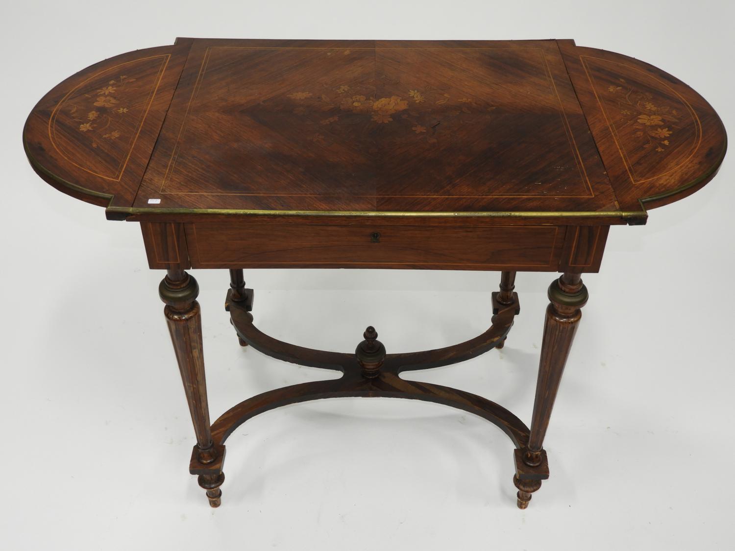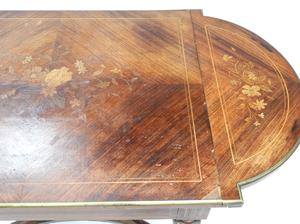 louis xvi-style marquetry inlaid rosewood sofa table, late 19th century, 29" x 43 1/2" x 21"