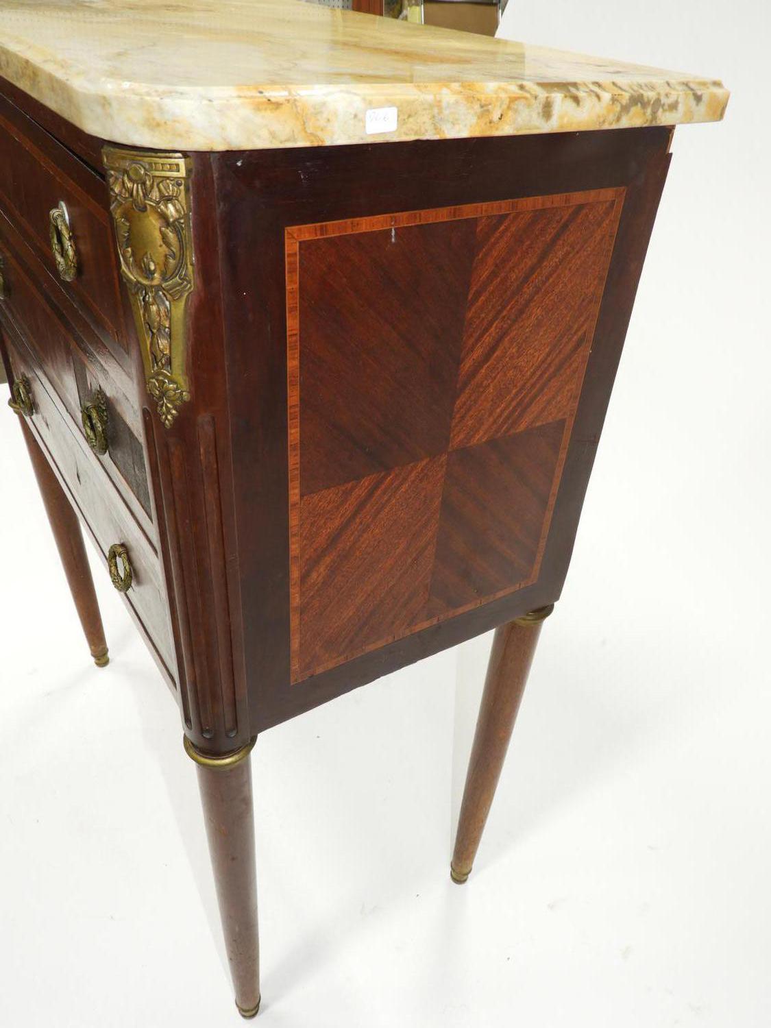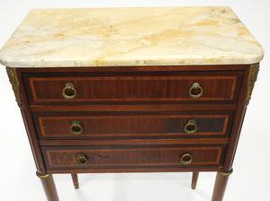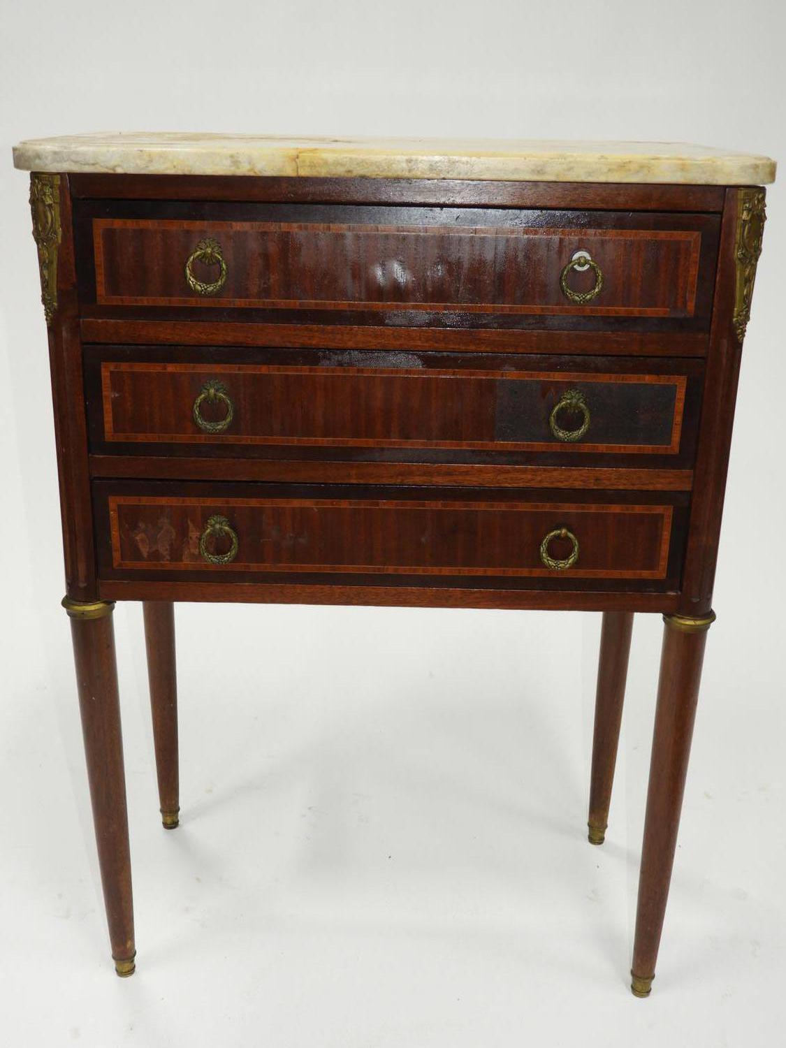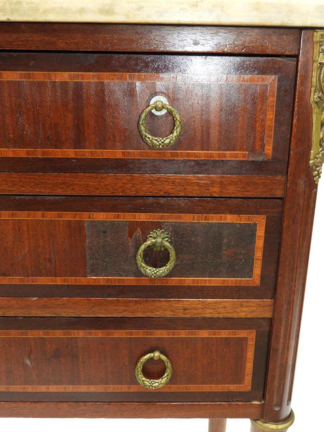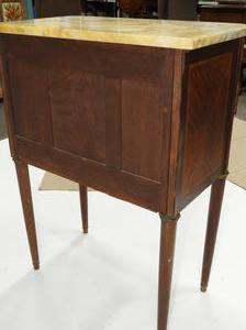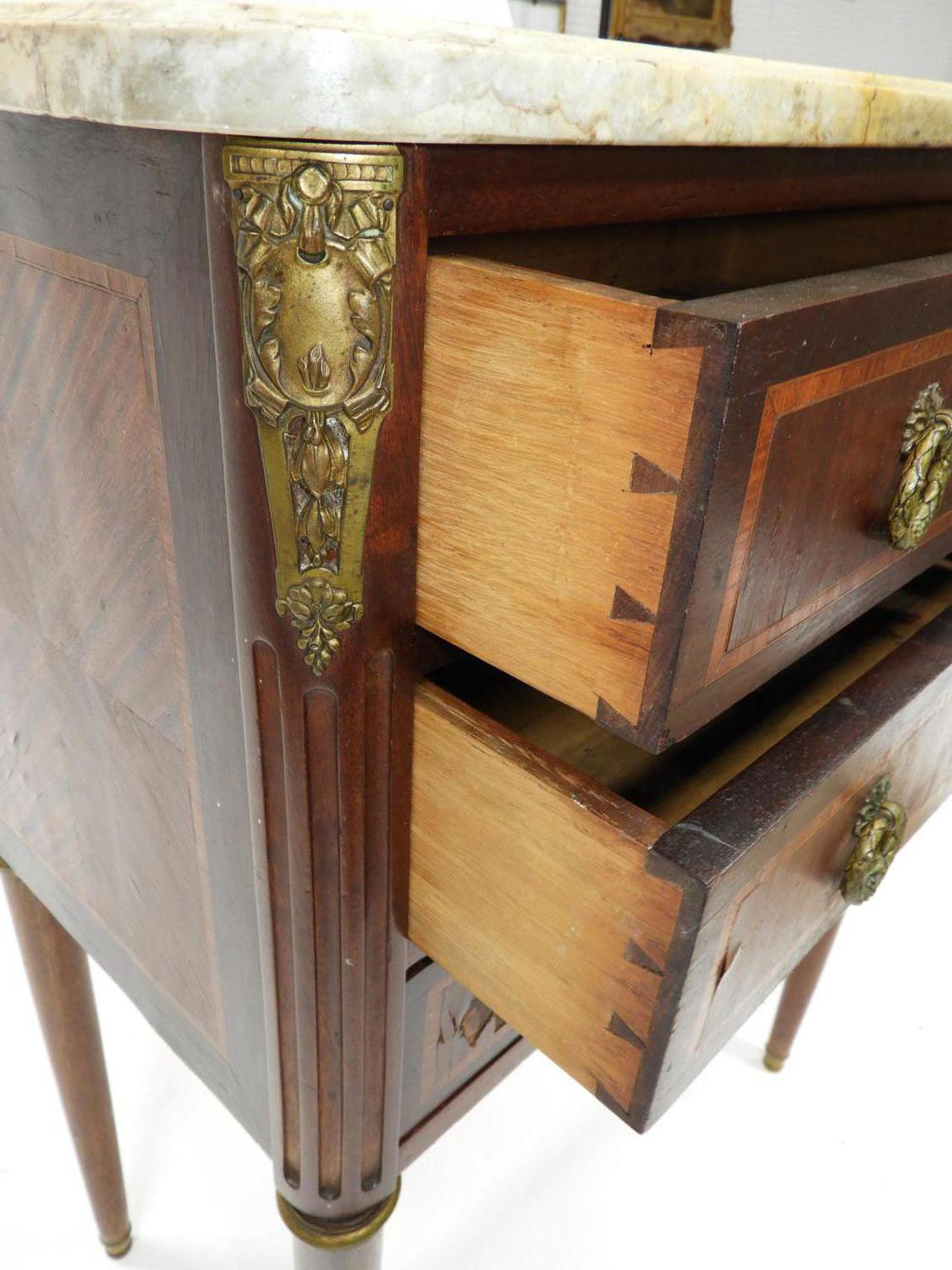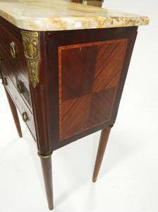 louis xvi-style parquetry inlaid marble top side table, early 20th century, 34" x 25" x 14"