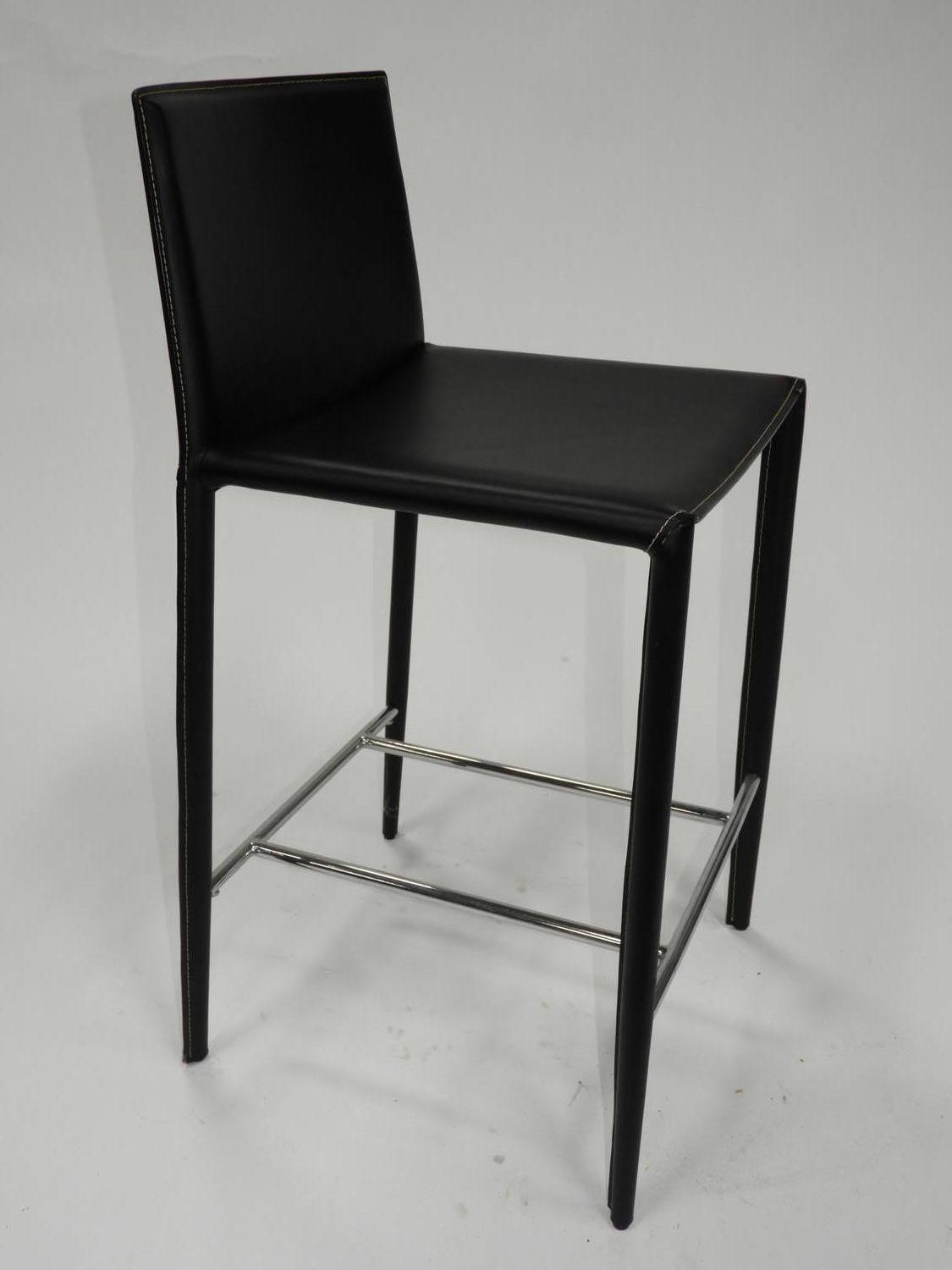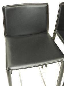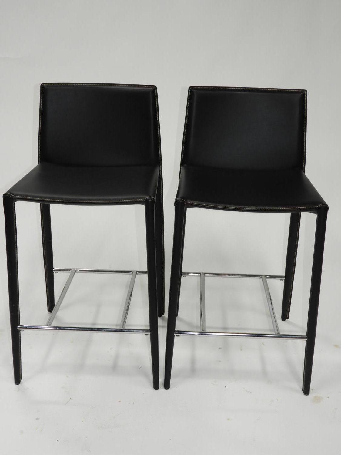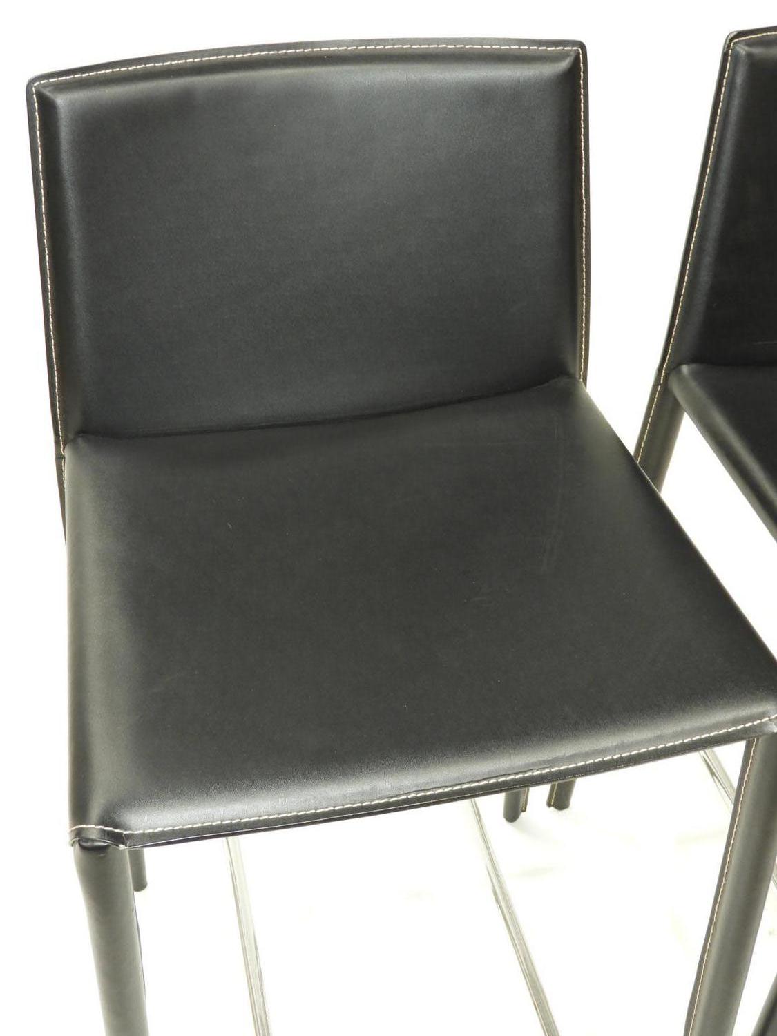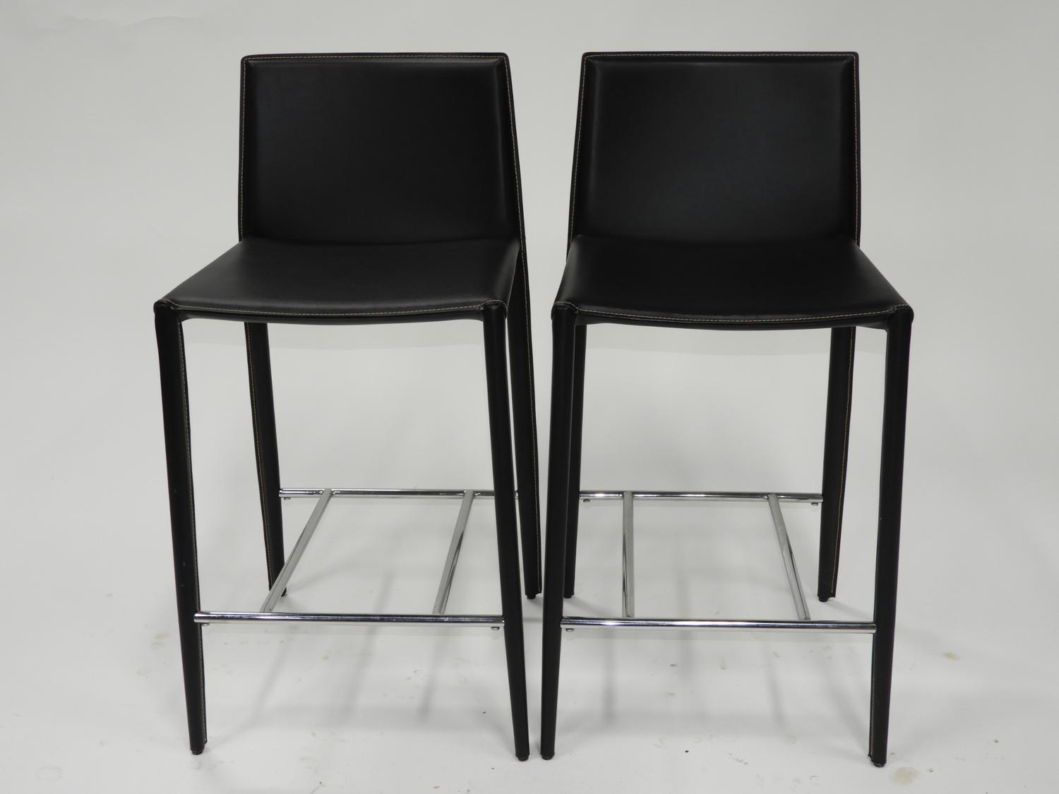 pair of modern black leather stools, 34" x 17" x 16"