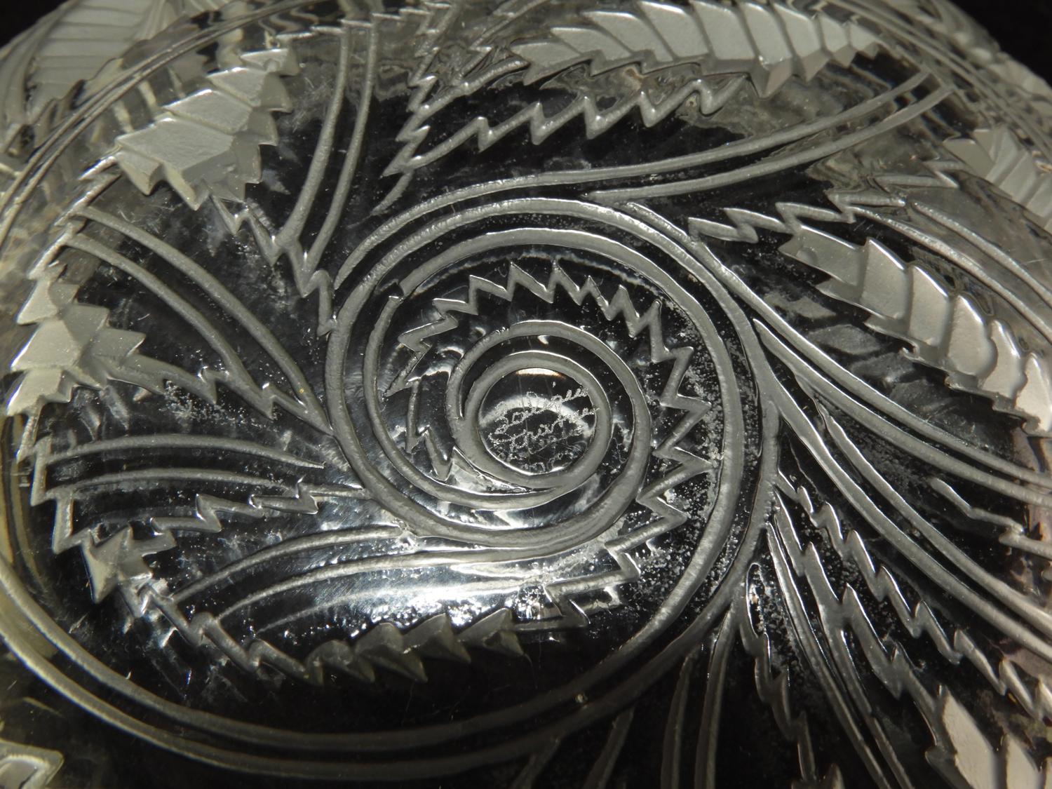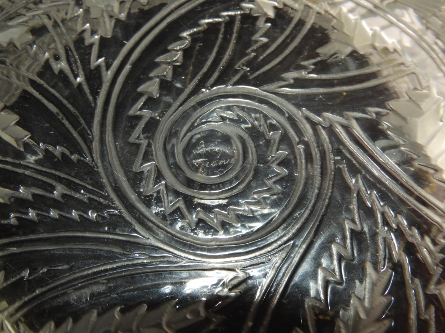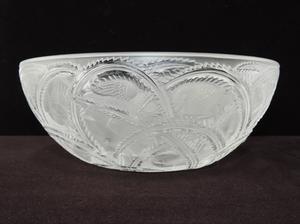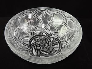 Both signed, rare French Pinsons Sepia Patina glass bowl, FInches, Rene Lalique Ca.