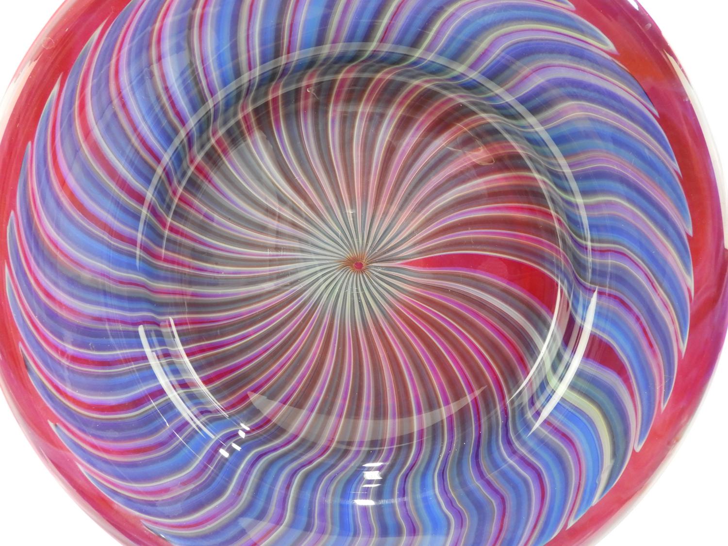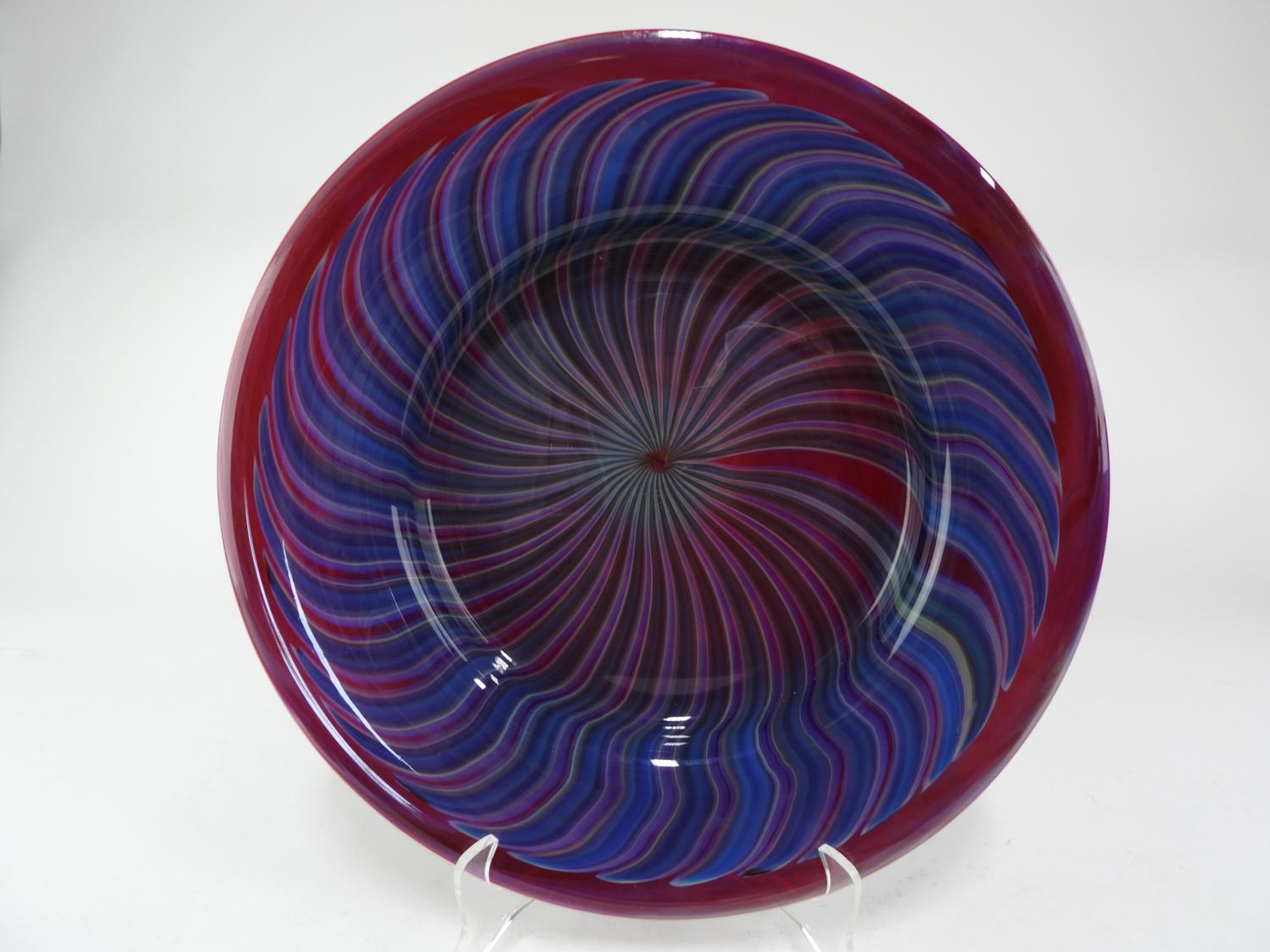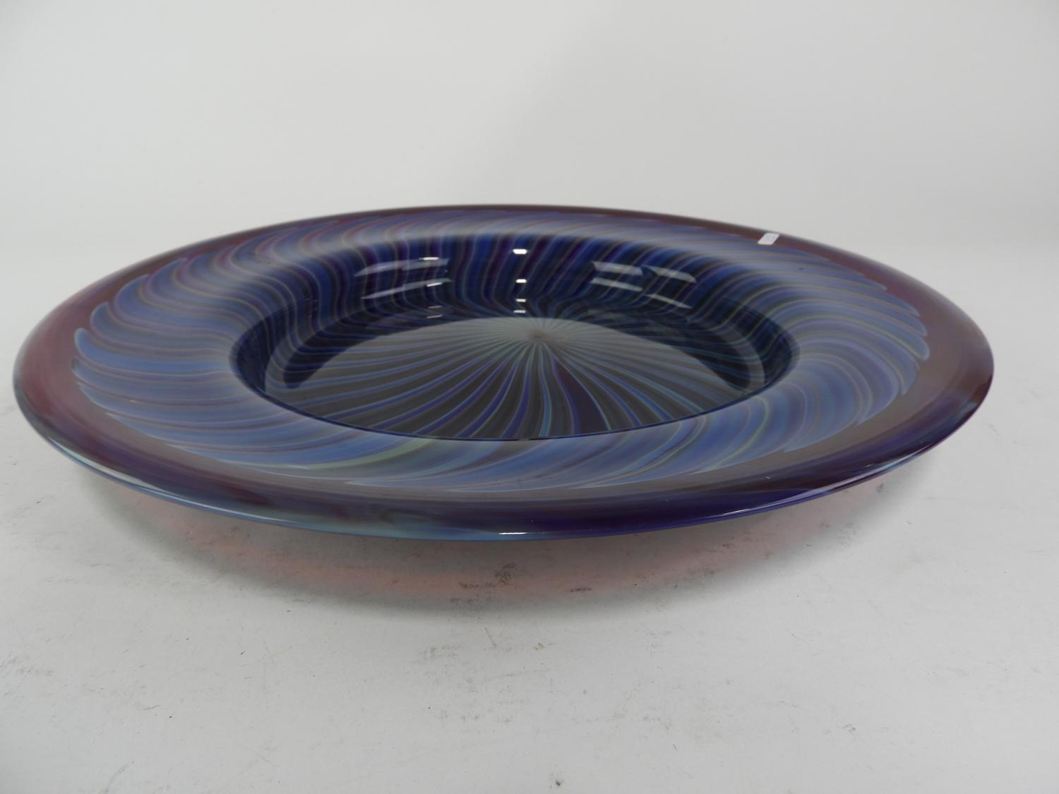 signed peter gudrunas art glass charger, diameter 17 1/4"