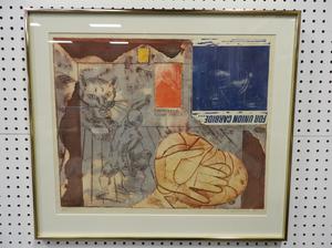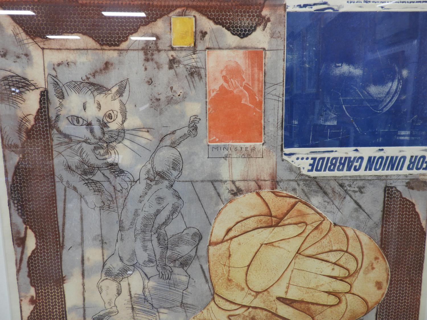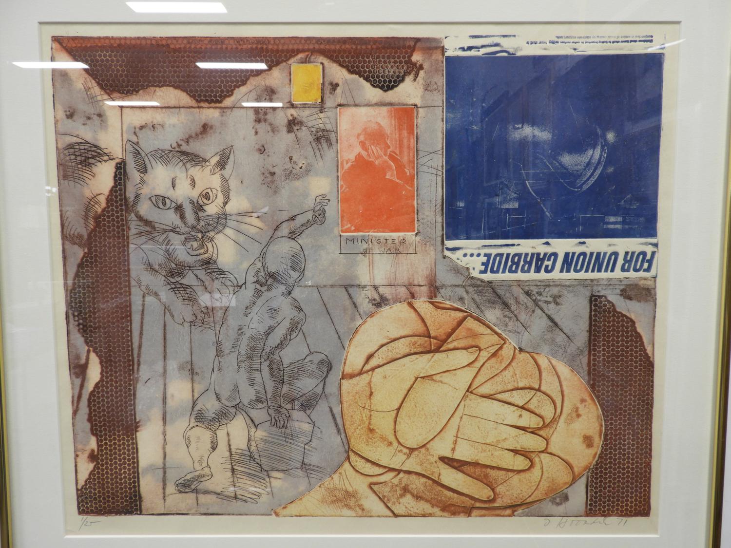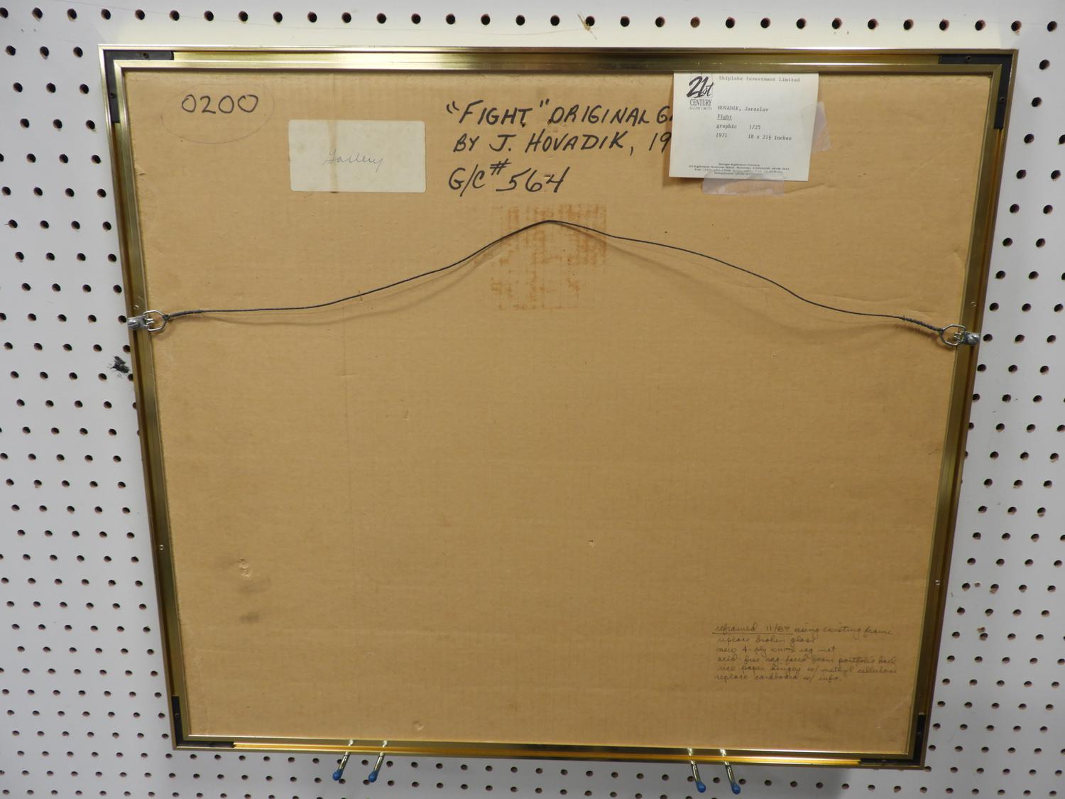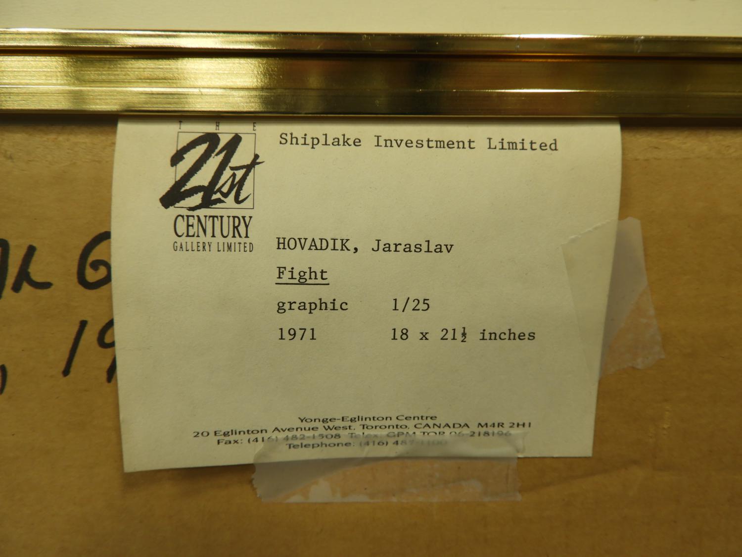 jaroslav hovadik (1935-2011), mixed media print d.1971, 1/25, 18" x 22", "fight"
