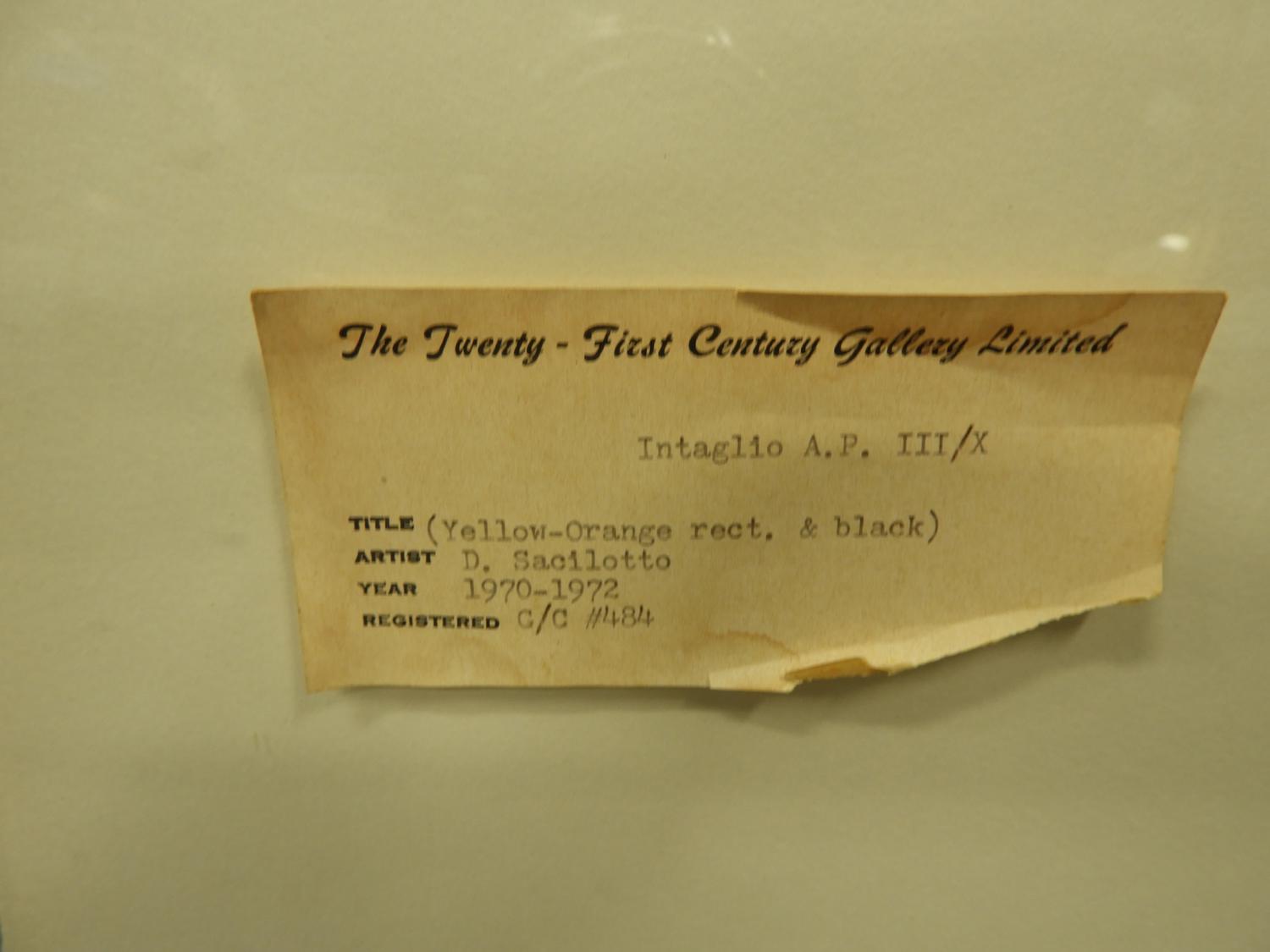 deli sacilotto (b. 1936), artist proof print d.1970-72, 26" x 20" x "untitled - yellow rectangle"