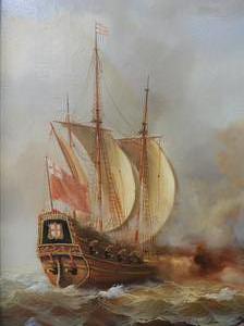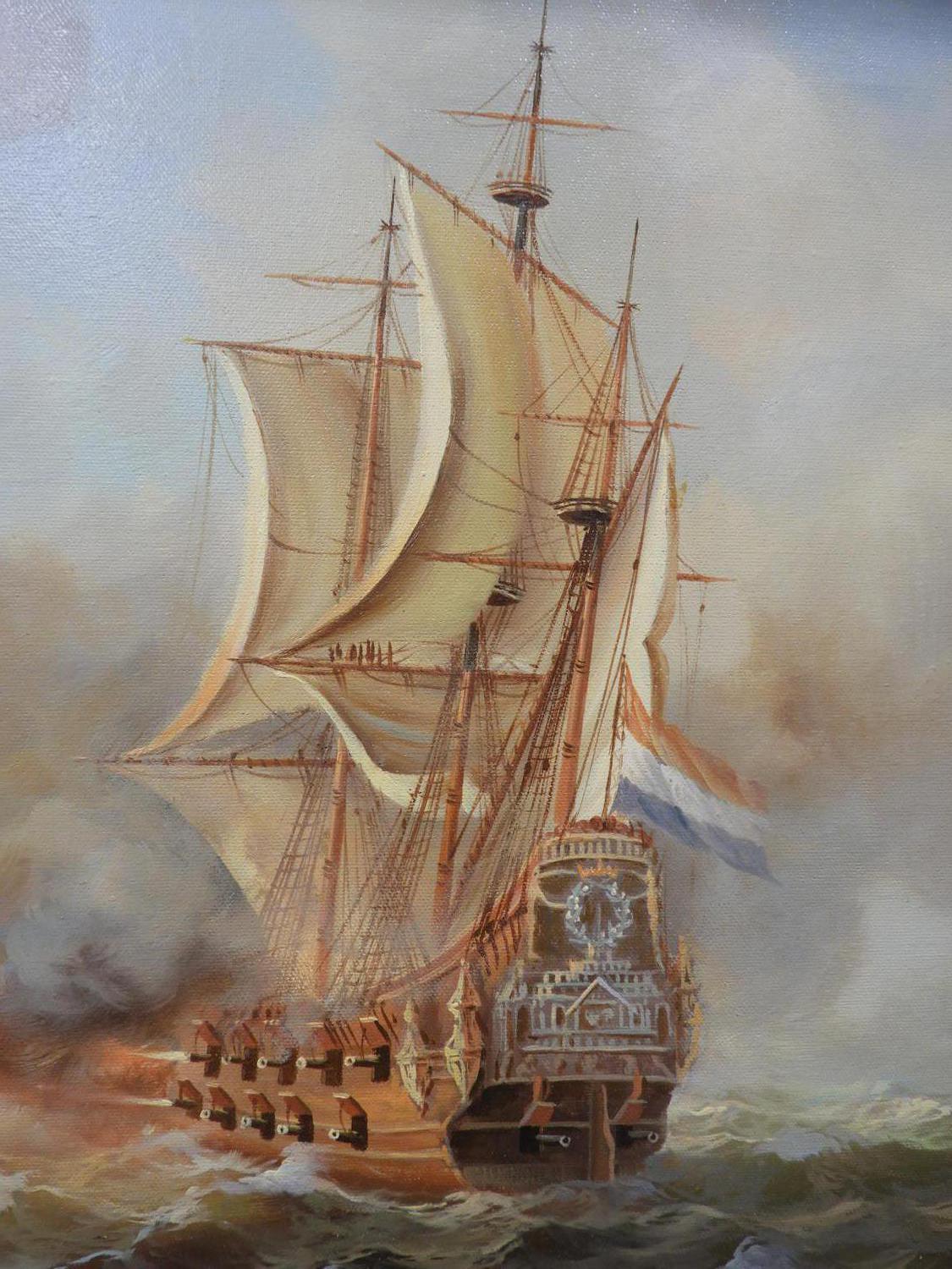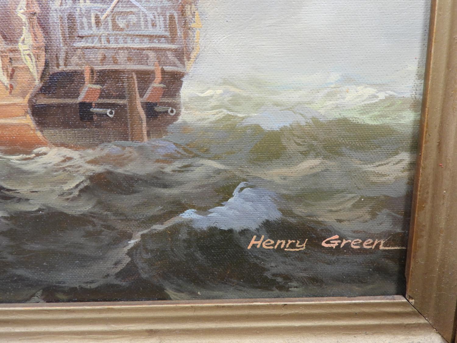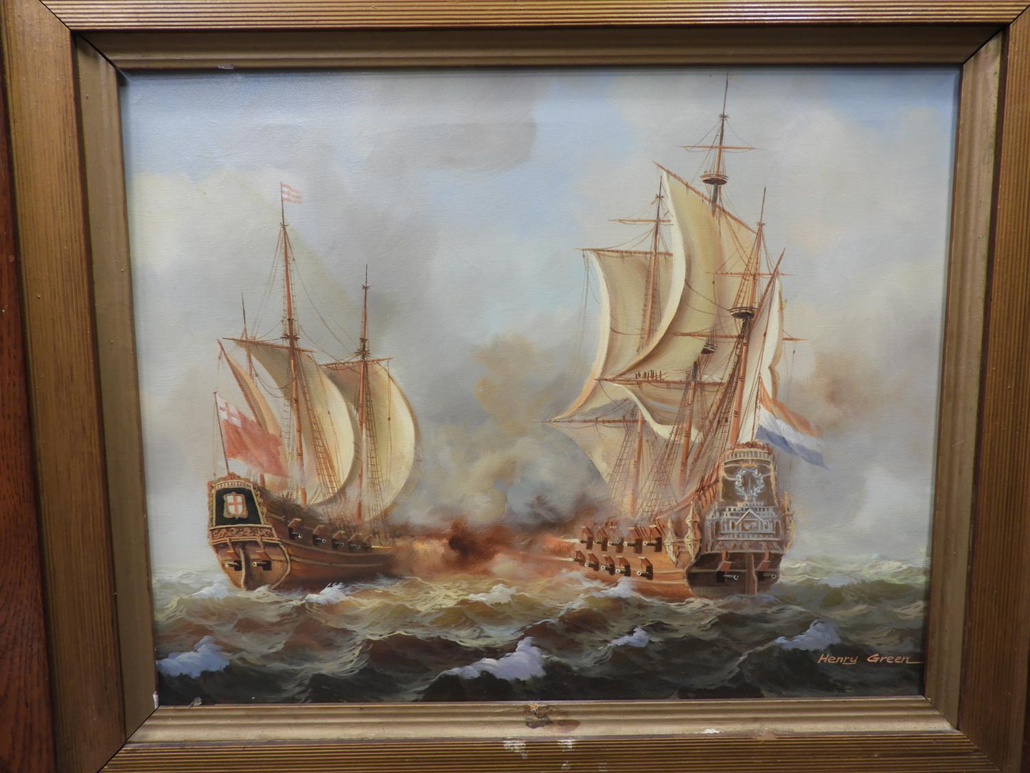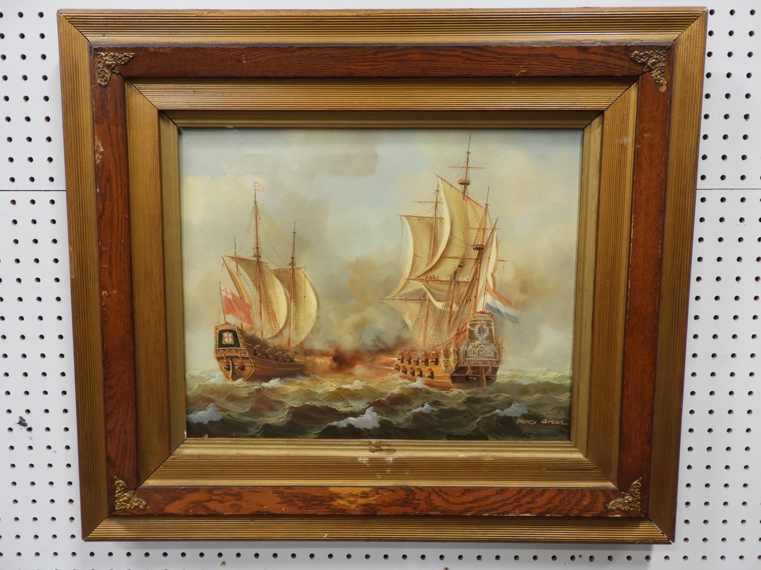 henry green, oil on canvas, 16" x 20", "untitled battle at sea"