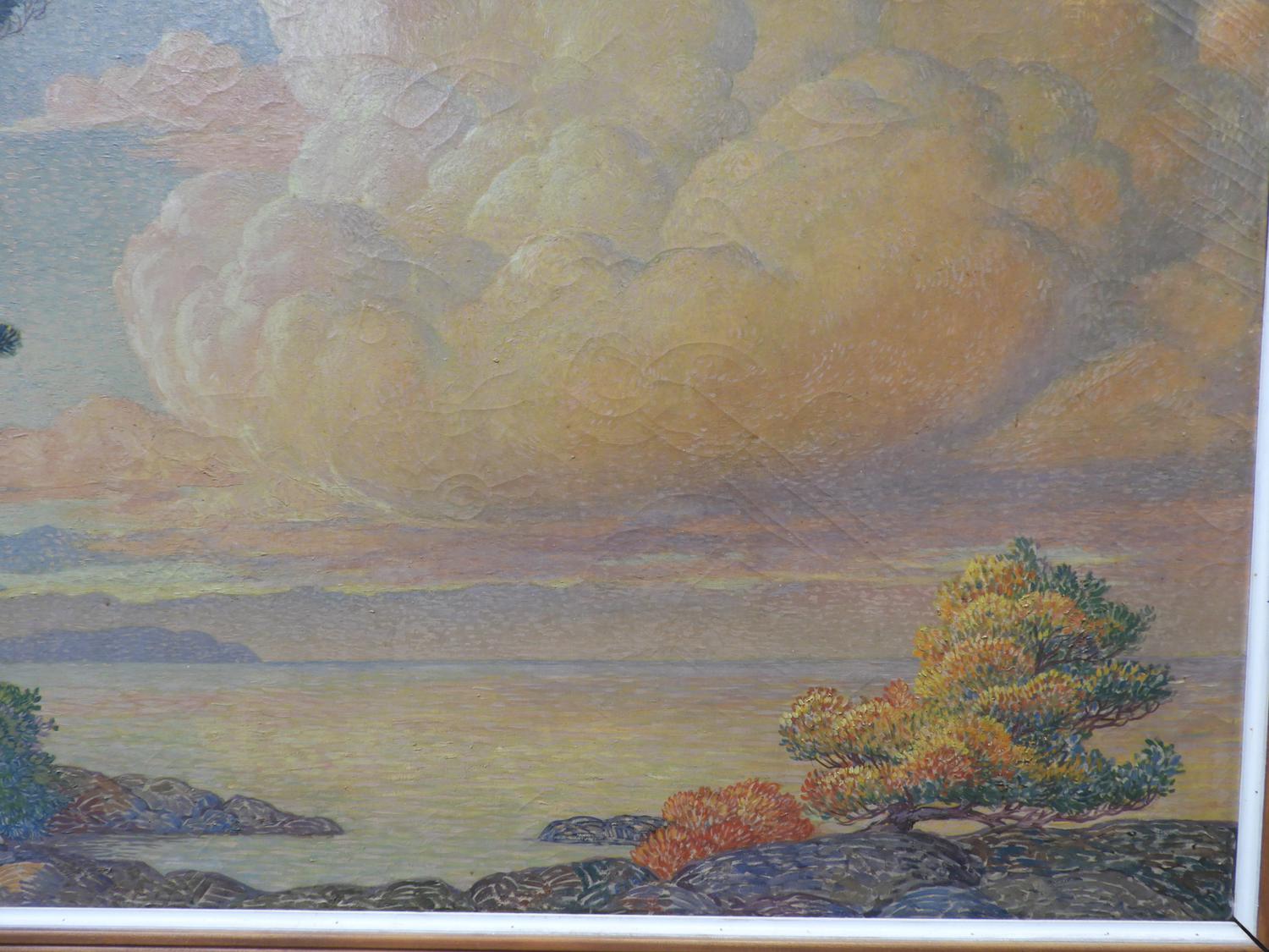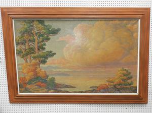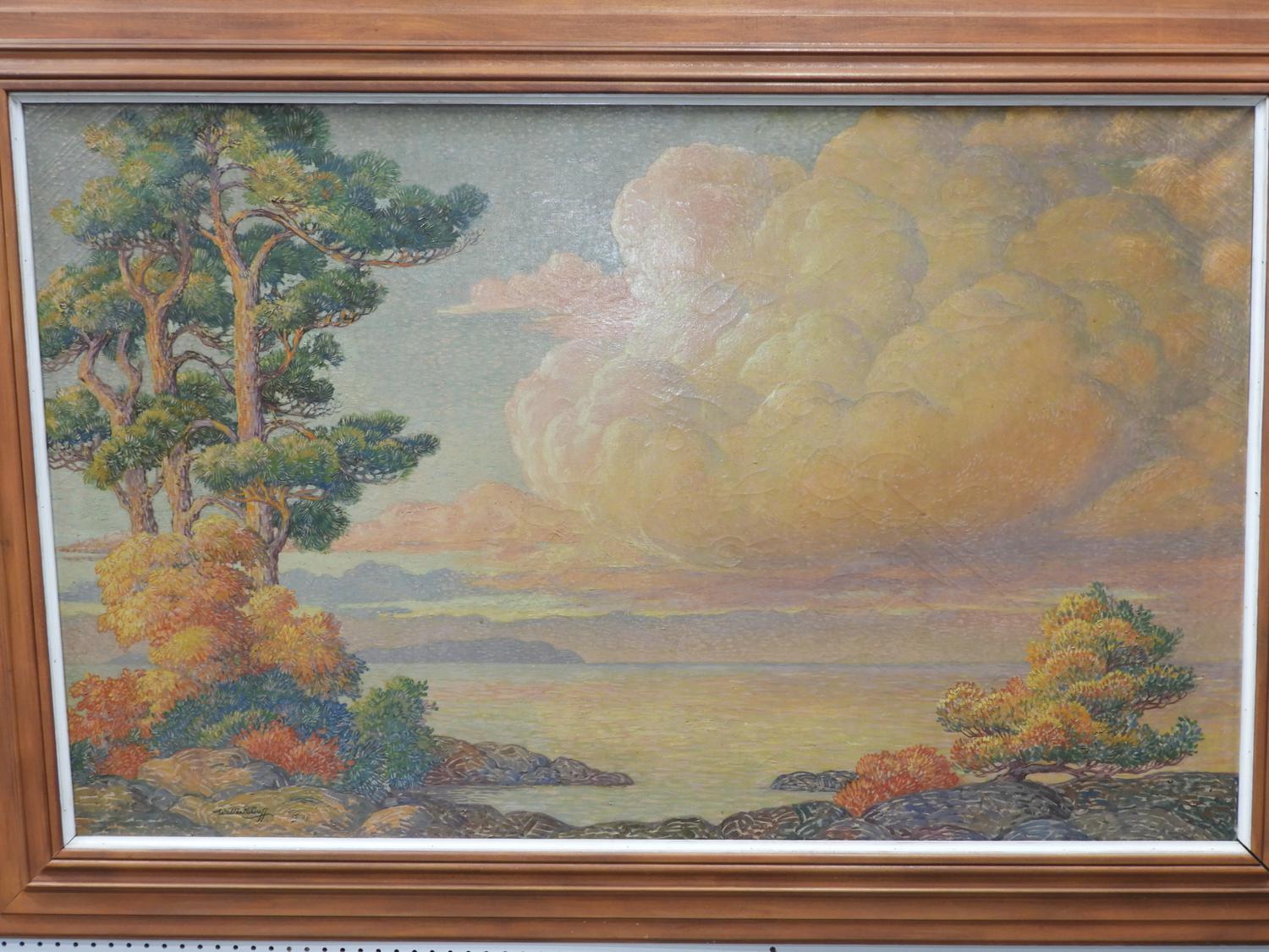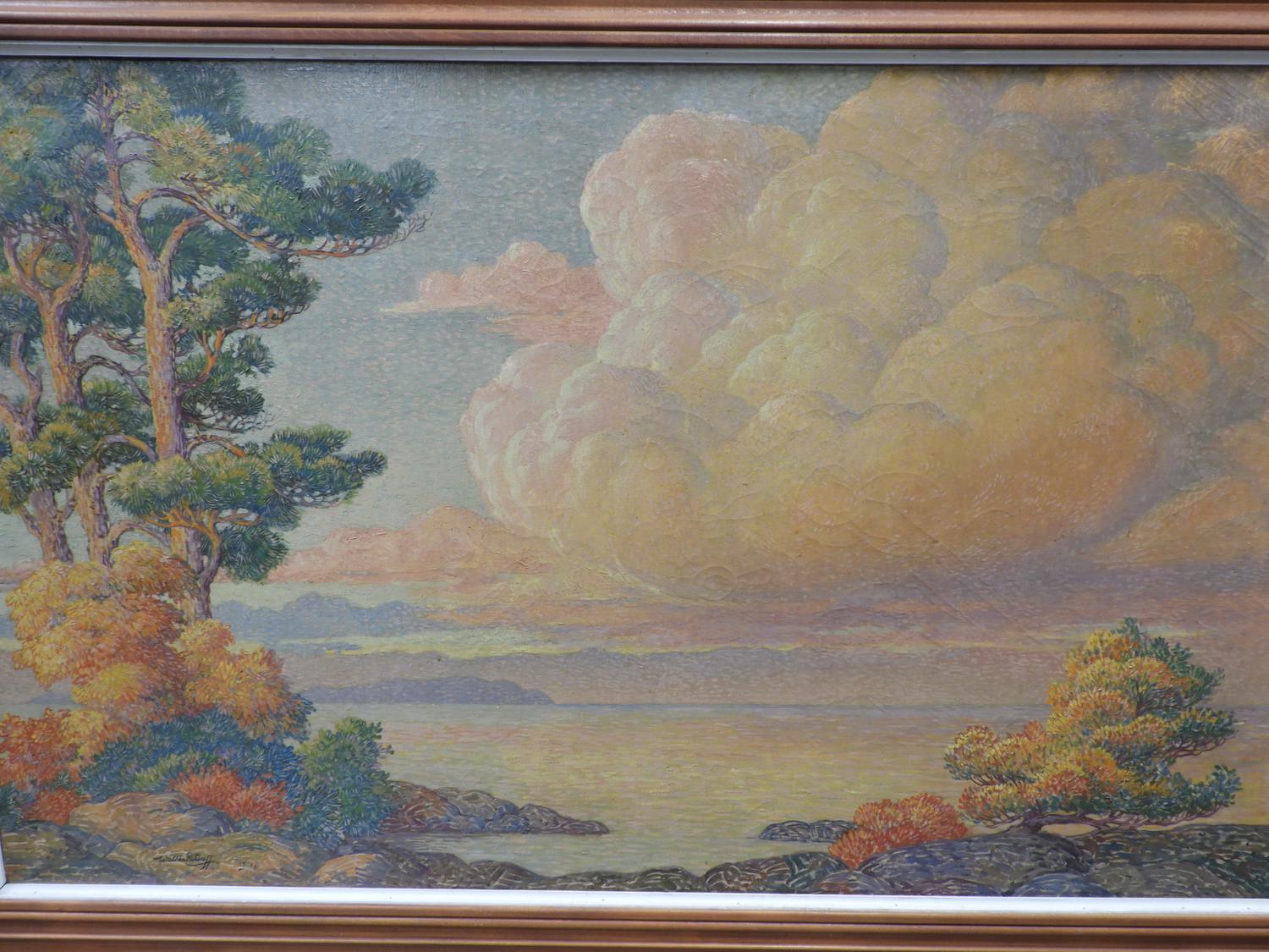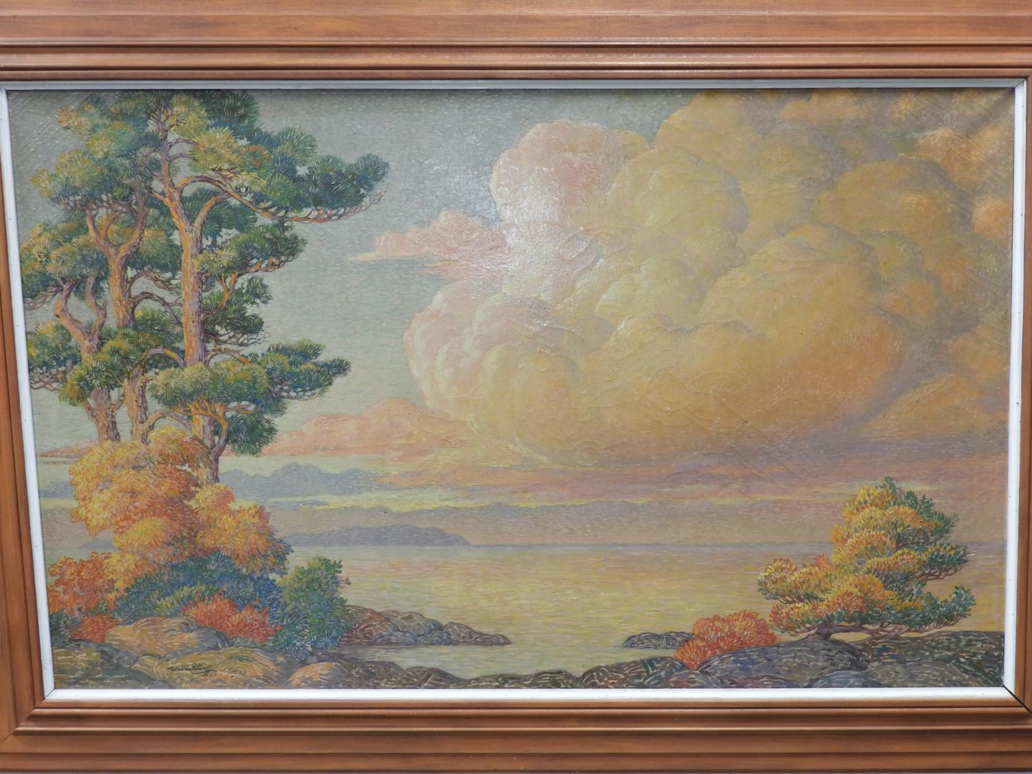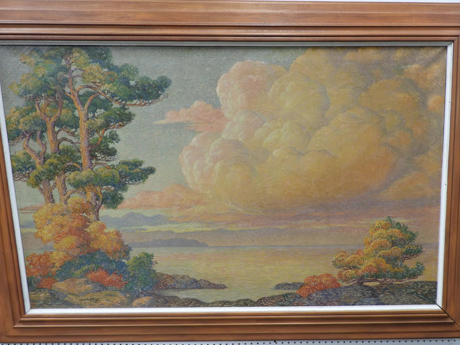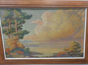 walter raymond duff (1879-1967), oil on canvas, 40" x 64", "landscape with lake"