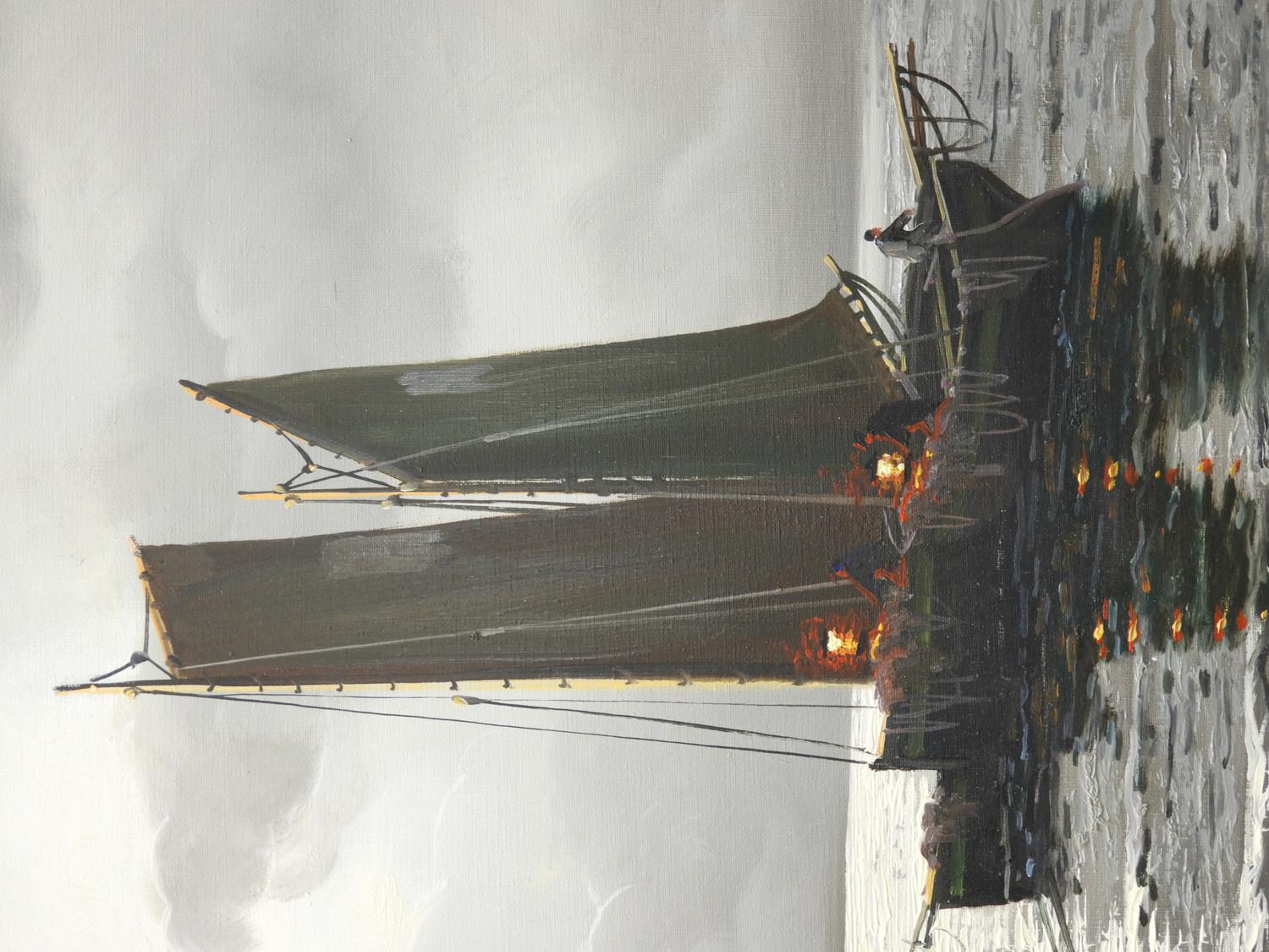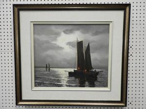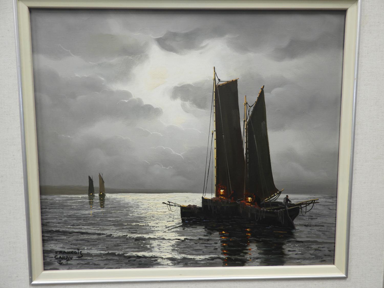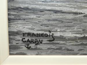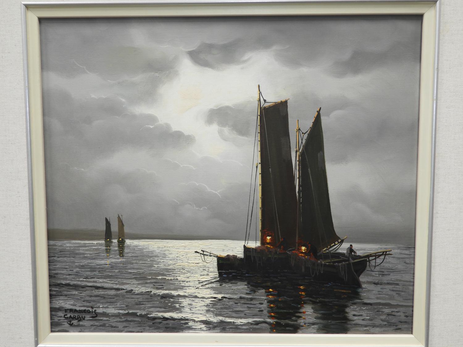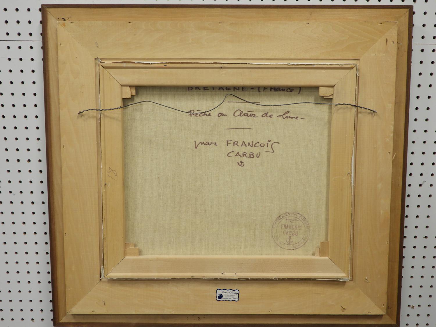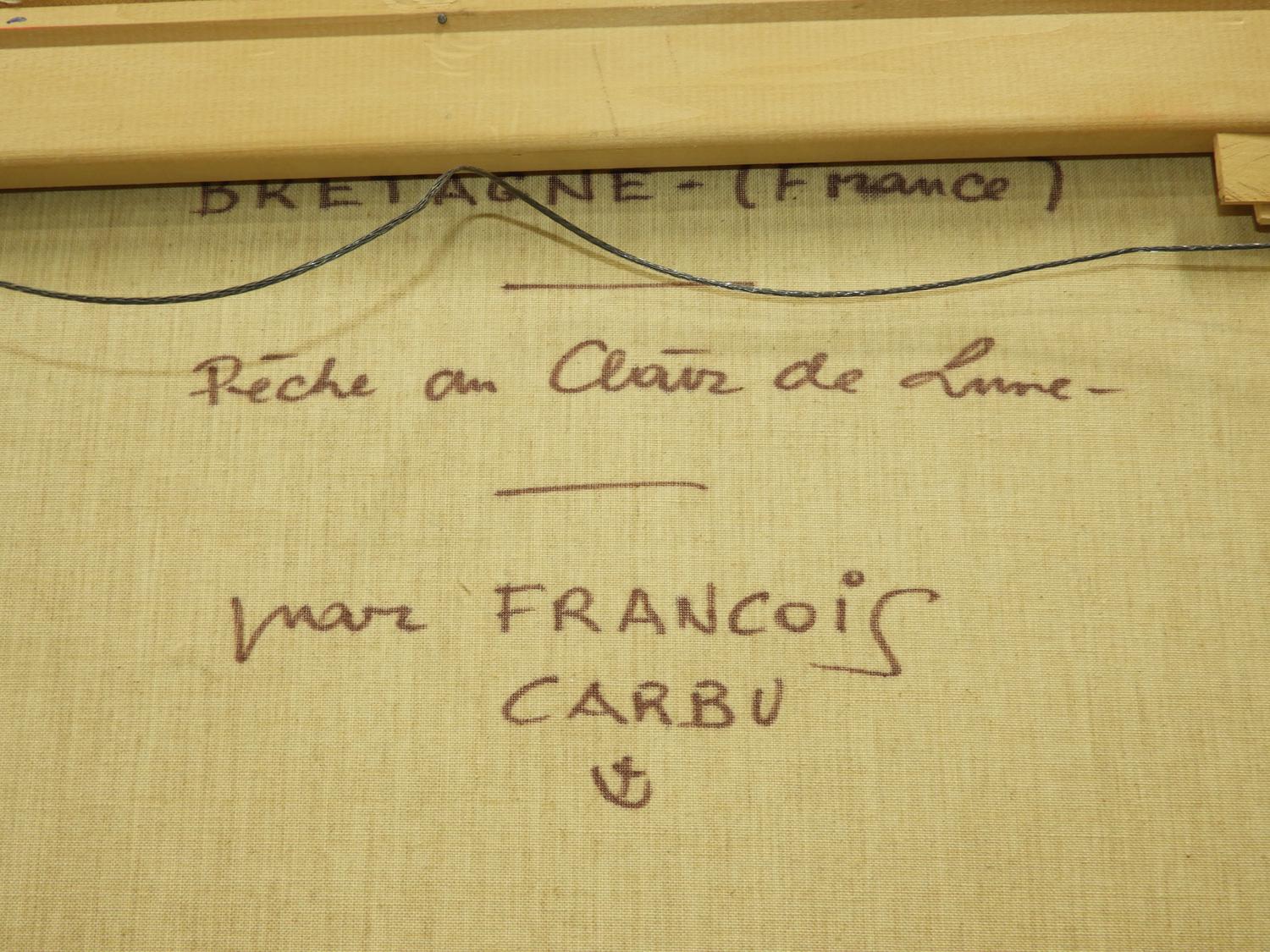 francois carbu (b.1896), oil on canvas, 18" x 21", "bretagne - peche au clair de lune"