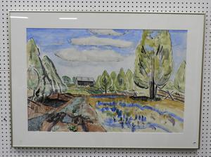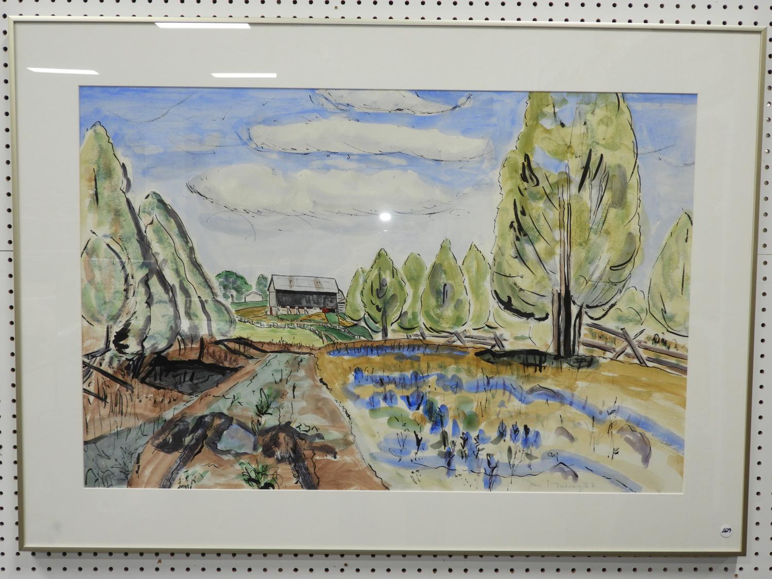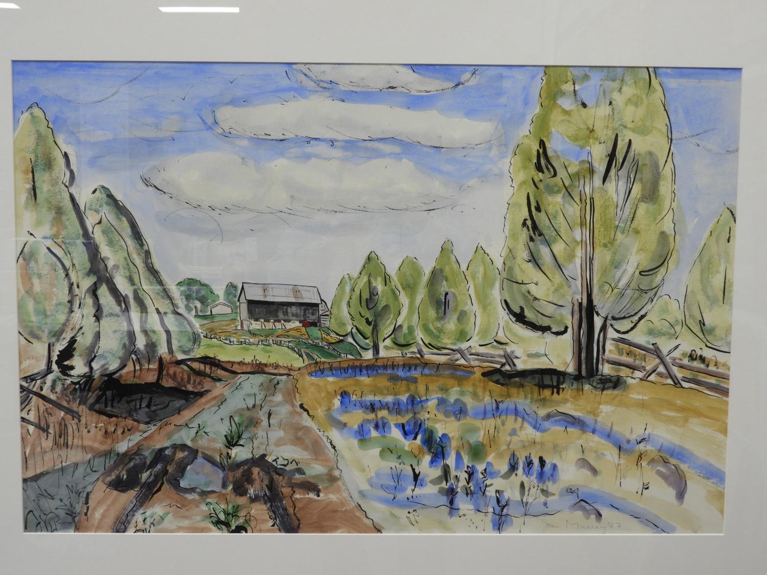 joan murray, watercolour, 25" x 38", "farm landscape"