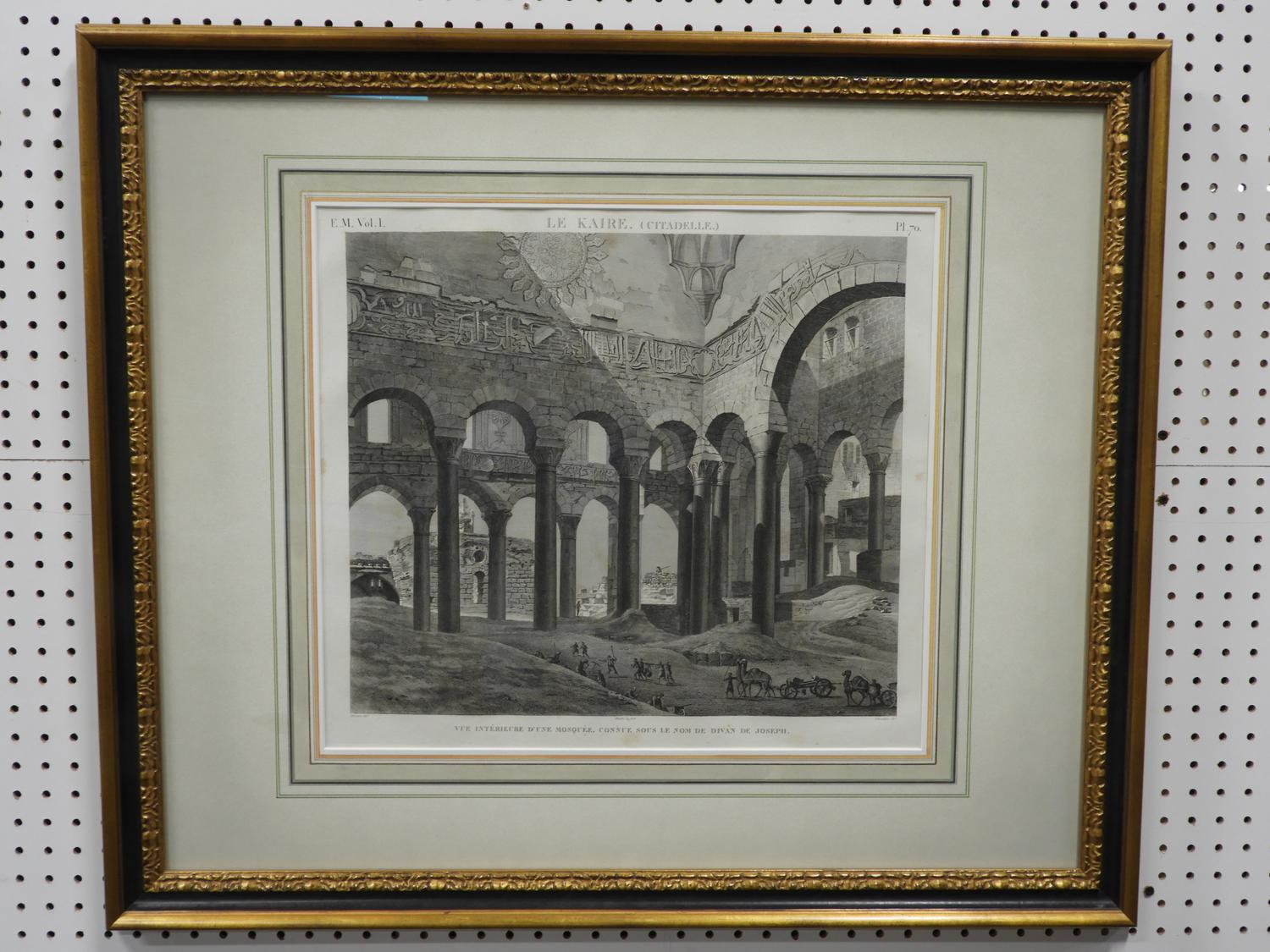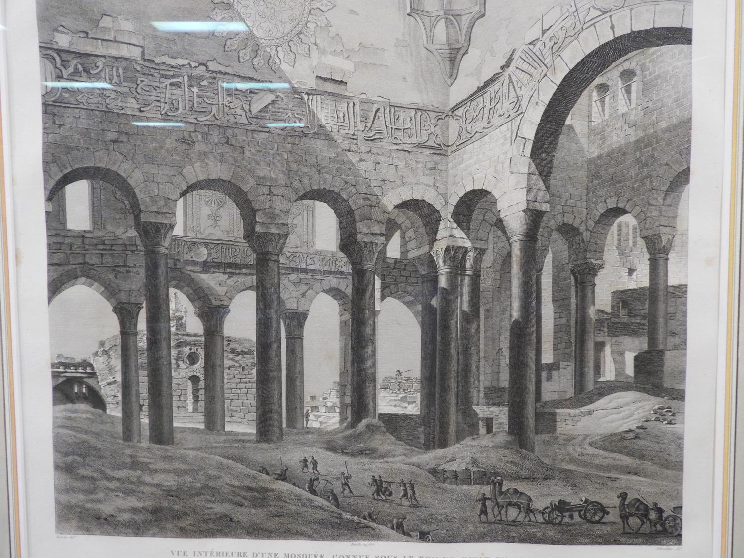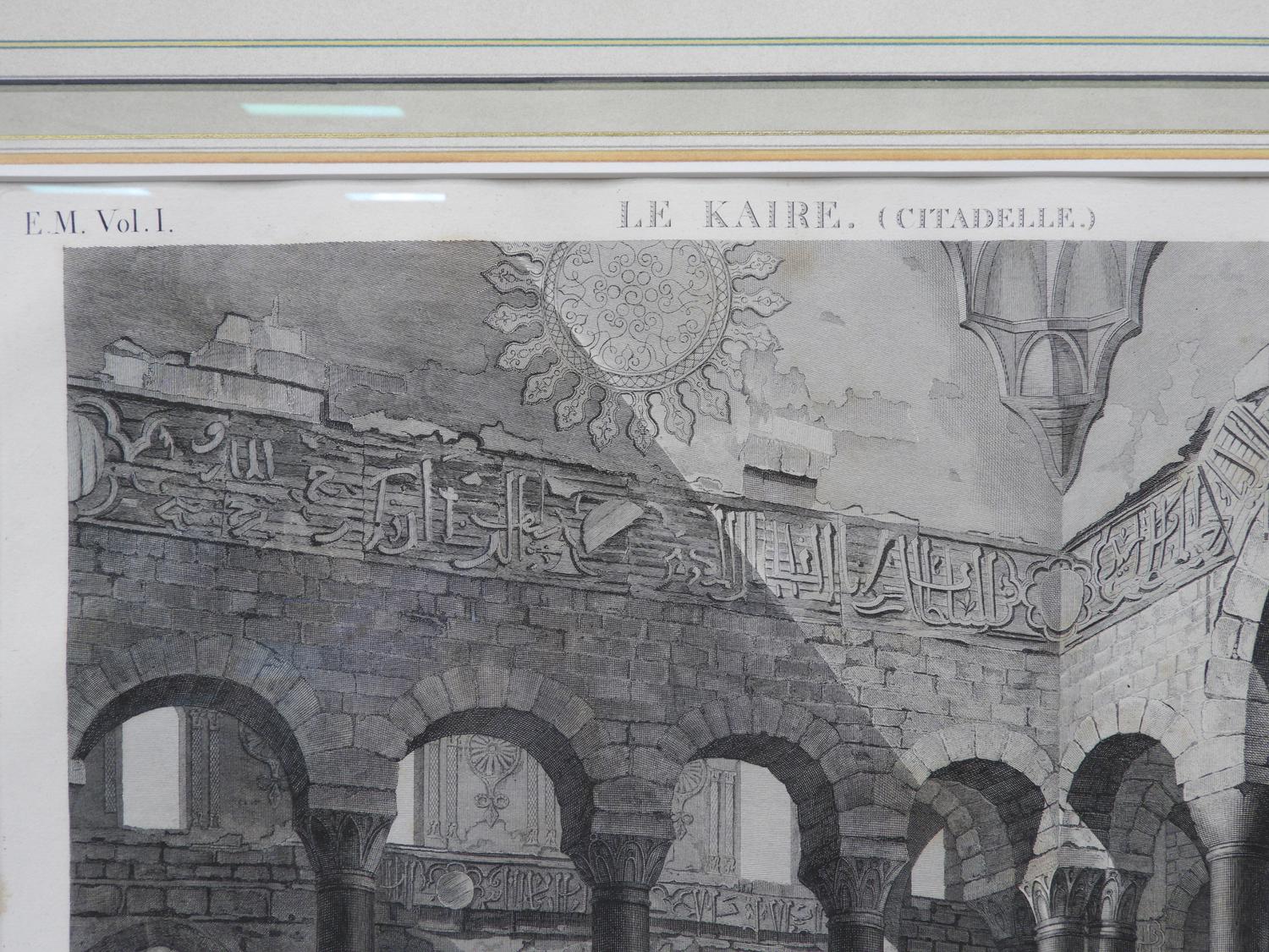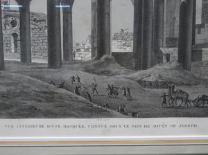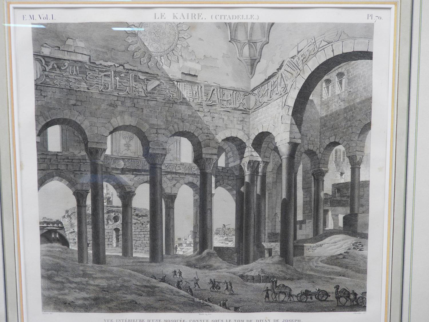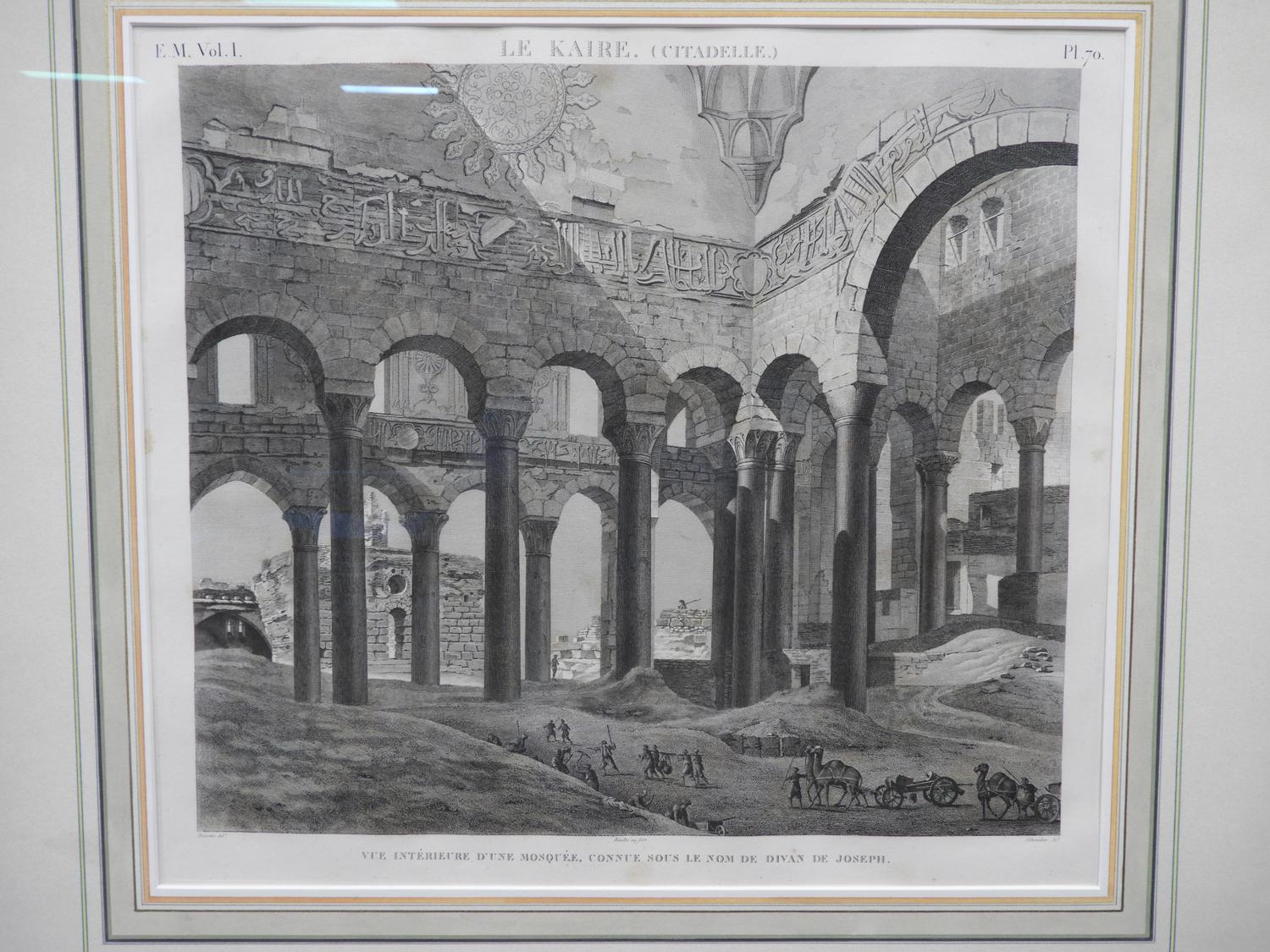 early 19th century french engraving, 18" x 20", le kaire (citadelle), vue interrieure d'une mosquee, connue sous le nom de divan de joseph" from "description de l'eqypte" series
