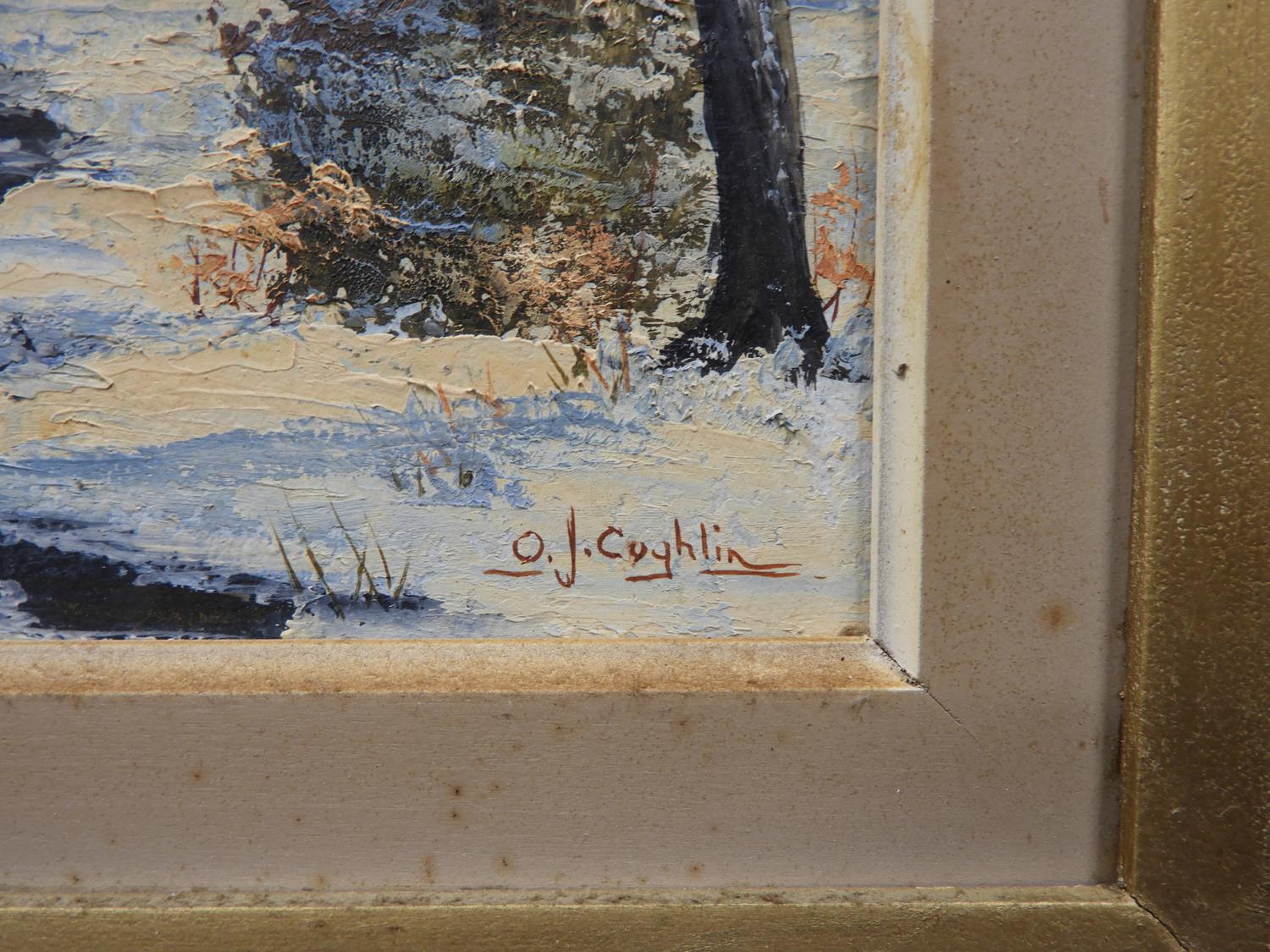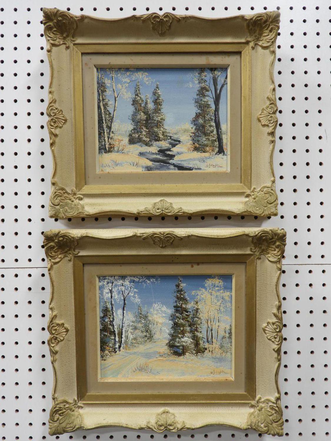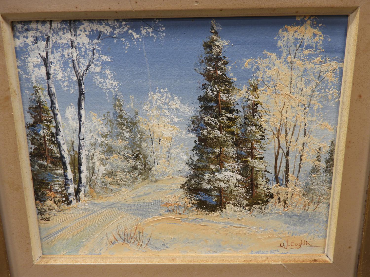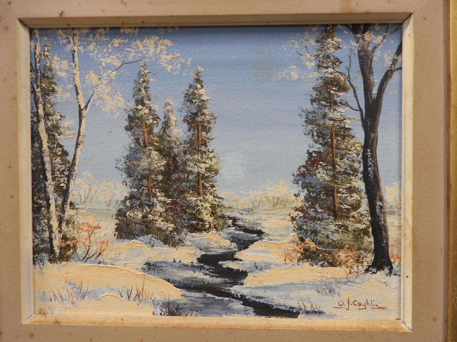 o.j. coghlin, two oil on board, 8" x 10", "winter landscapes"