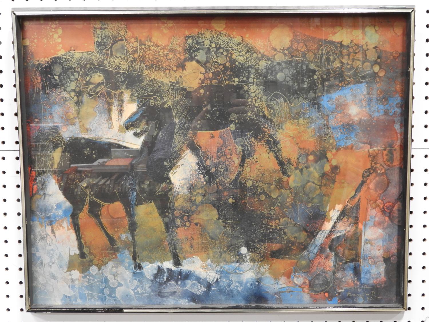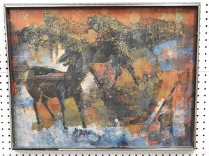 kamolt, d.1970, serigraph, 20" x 26", "untitled - abstract horses"