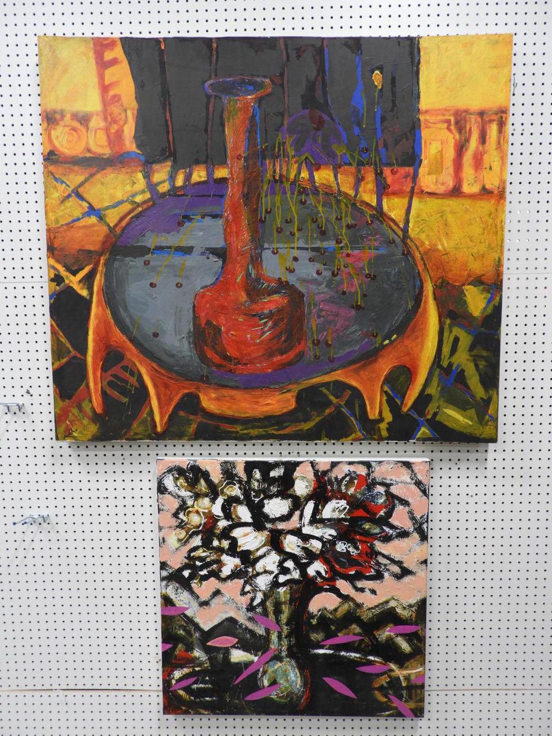 two oil on canvas, 42" x 48" and smaller, "abstracts"