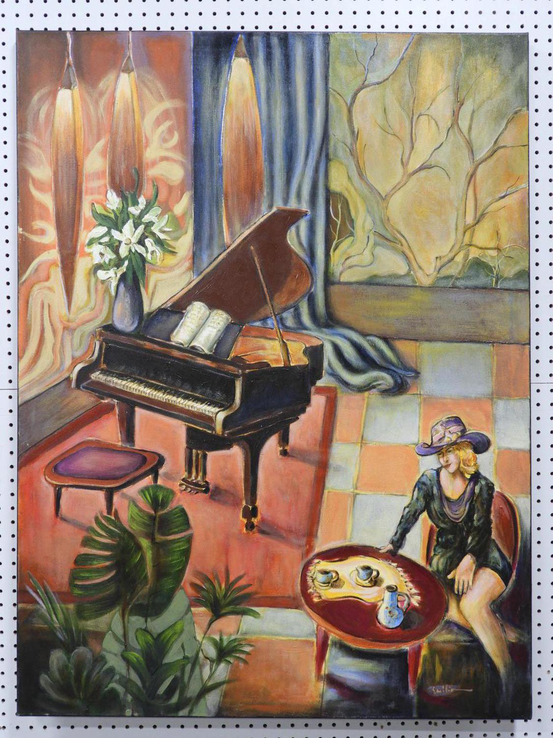 emilio pica, acrylic on canvas, 48" x 36", "interior scene"