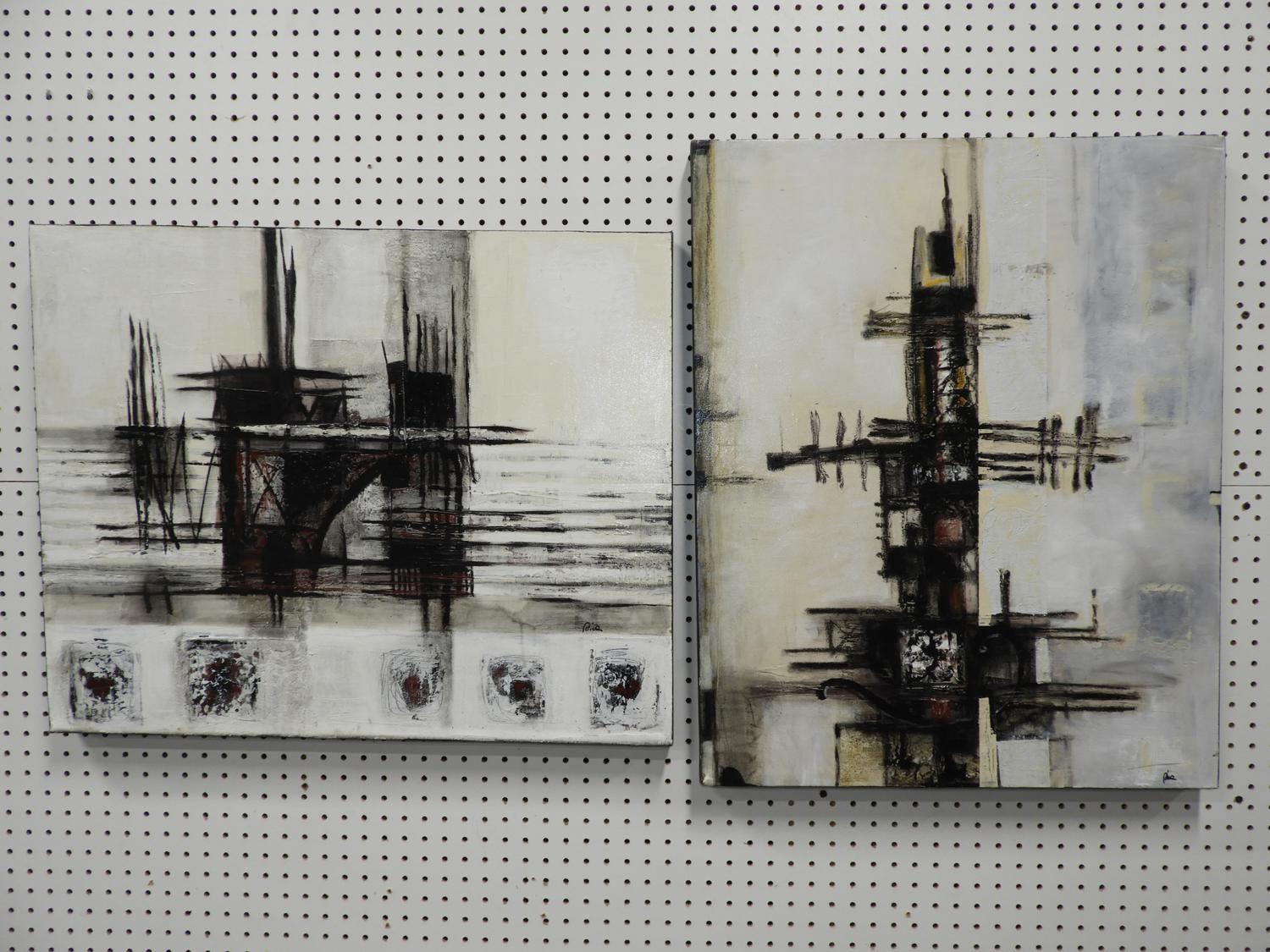 liana pica birt (b.1964), 2 acrylic on canvas, 30" x 24", "city scapes"