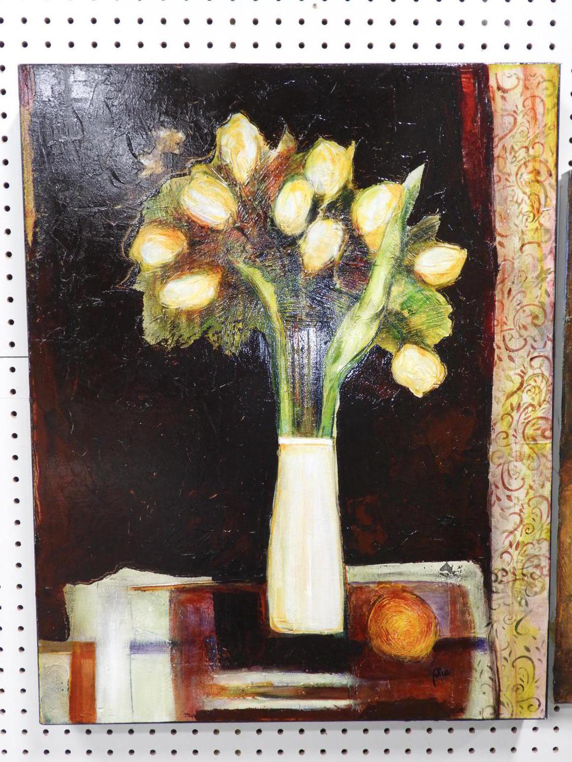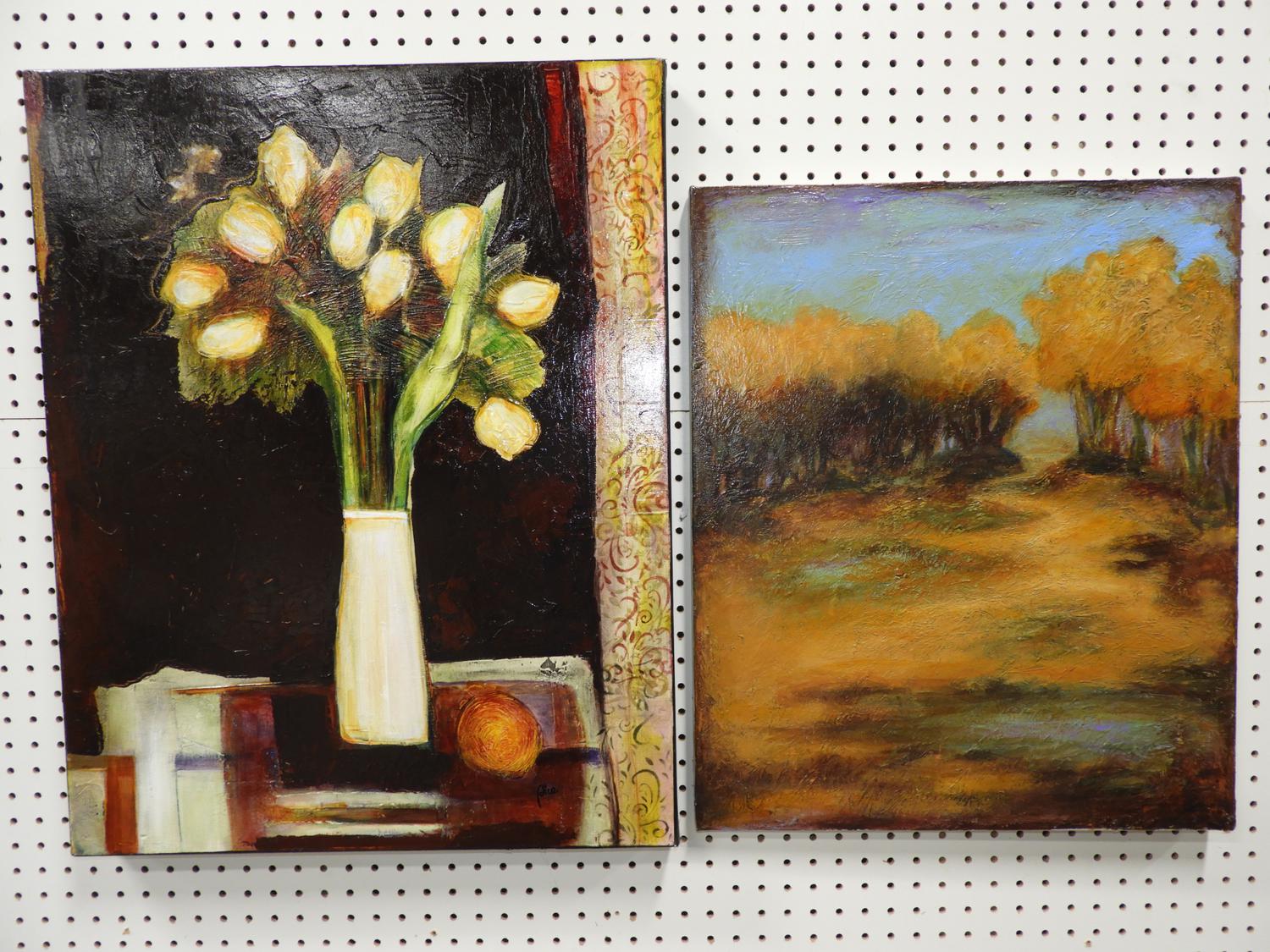 liana pica birt (b.1964), 2 acrylic on canvas, 30" x 24", "stillife" & "landscape"