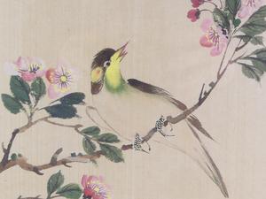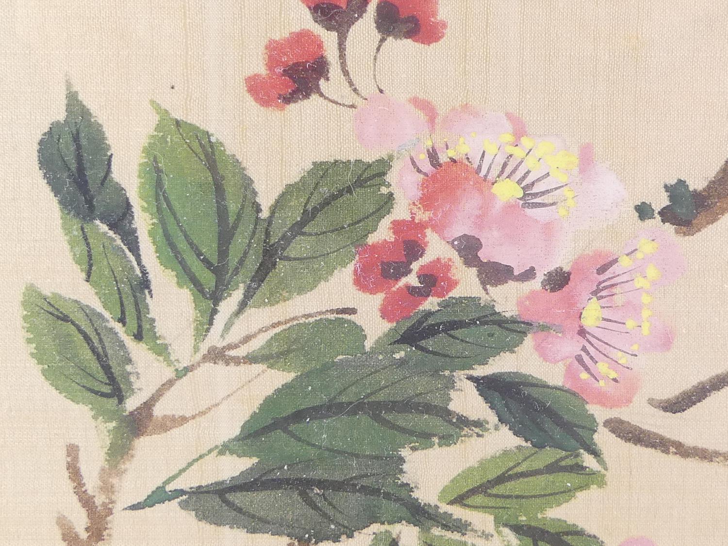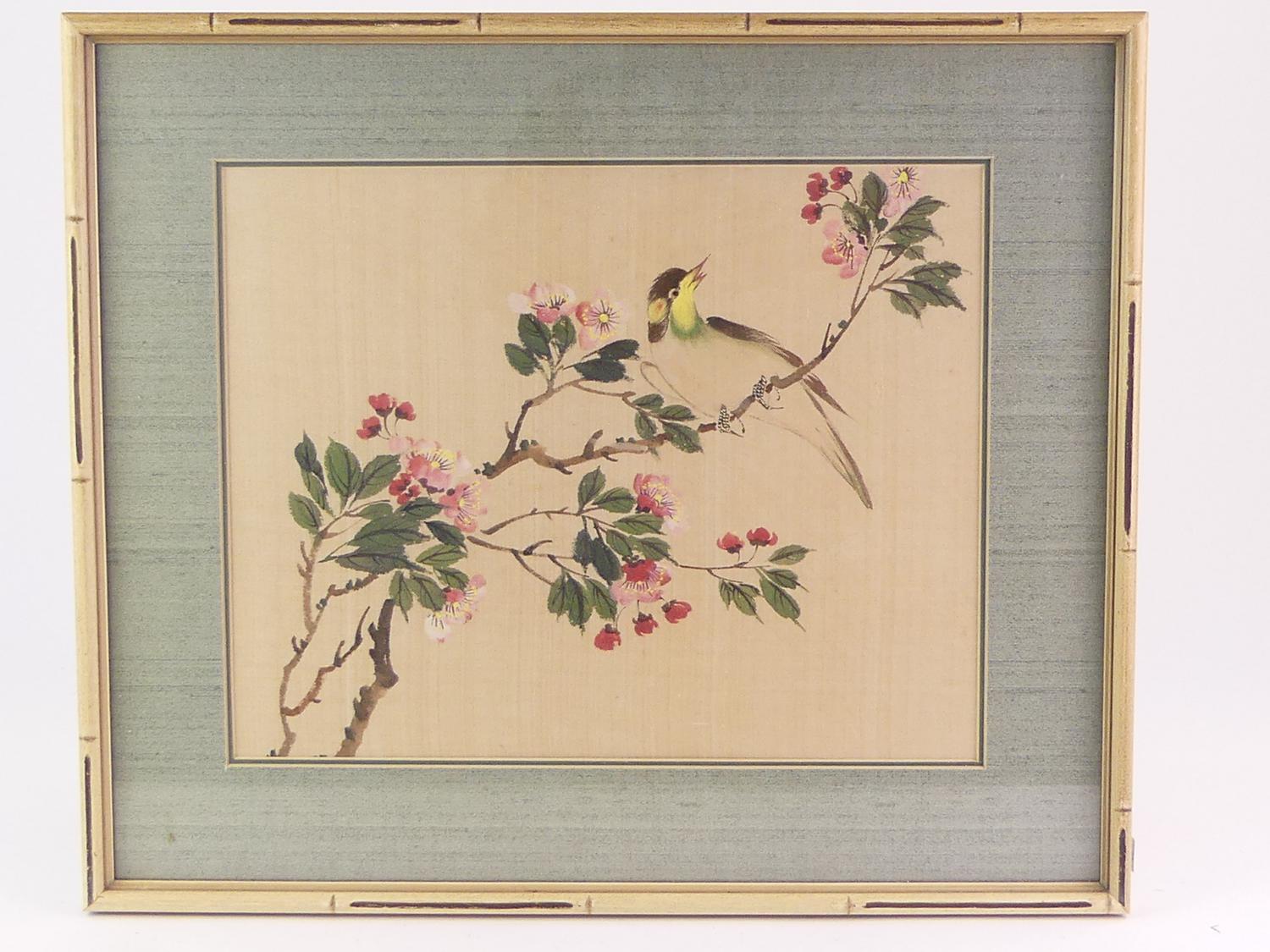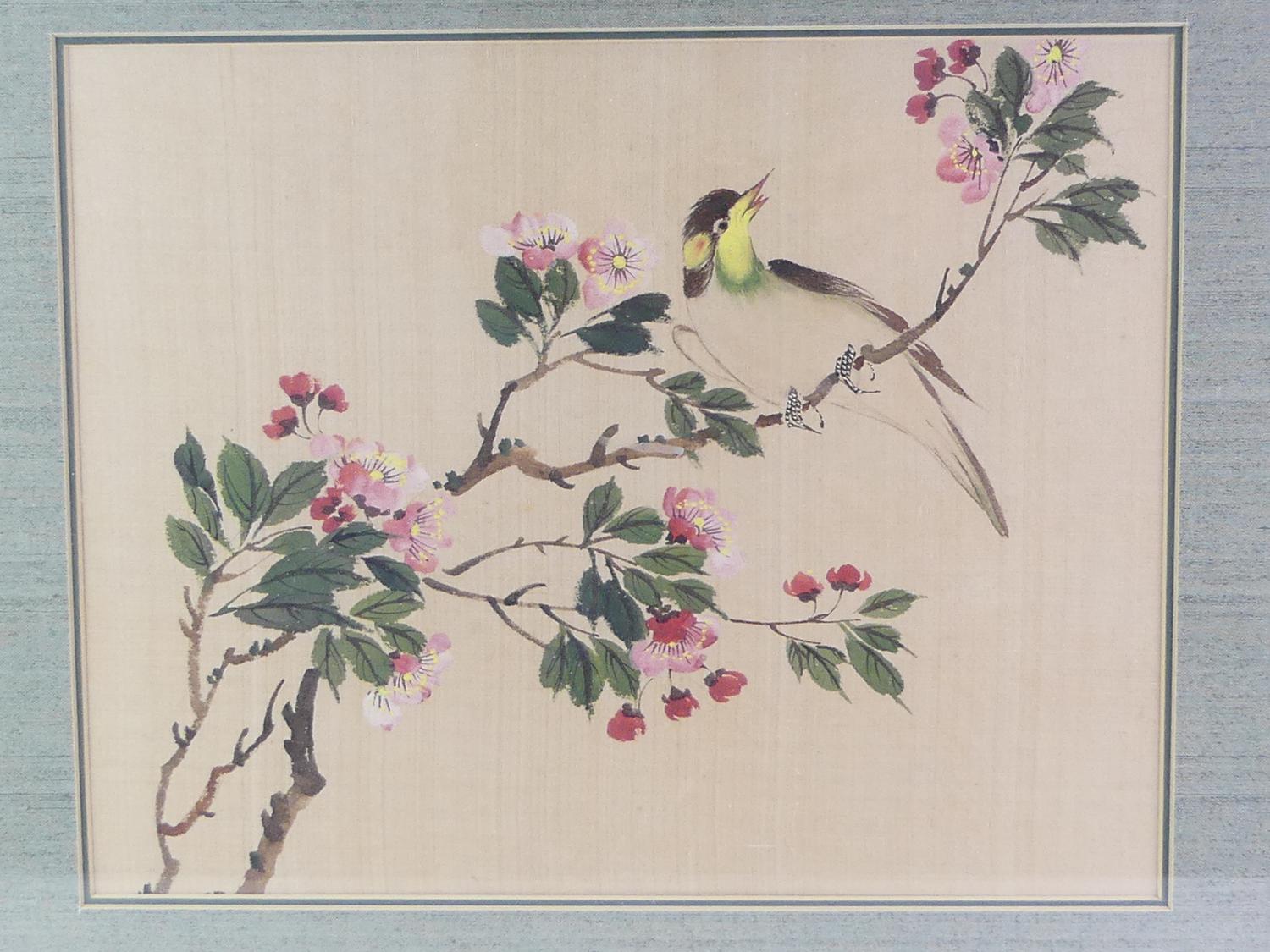 chinese school watercolour on silk, 10 1/2" x 13", "bird on flowering branch"