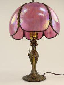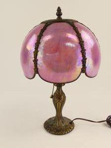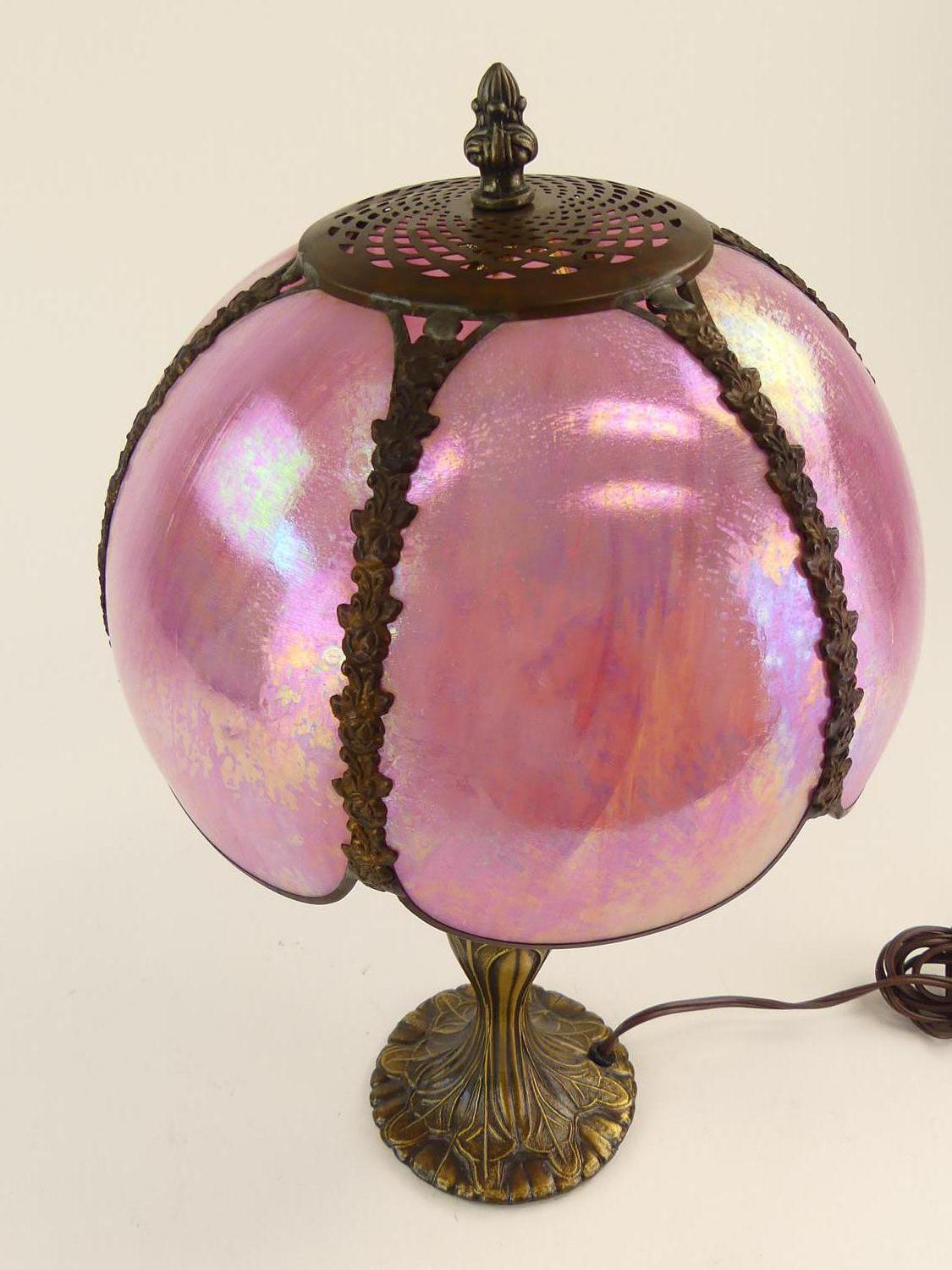 table lamp with pink slag glass shade, ht. 16 1/2"