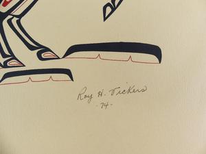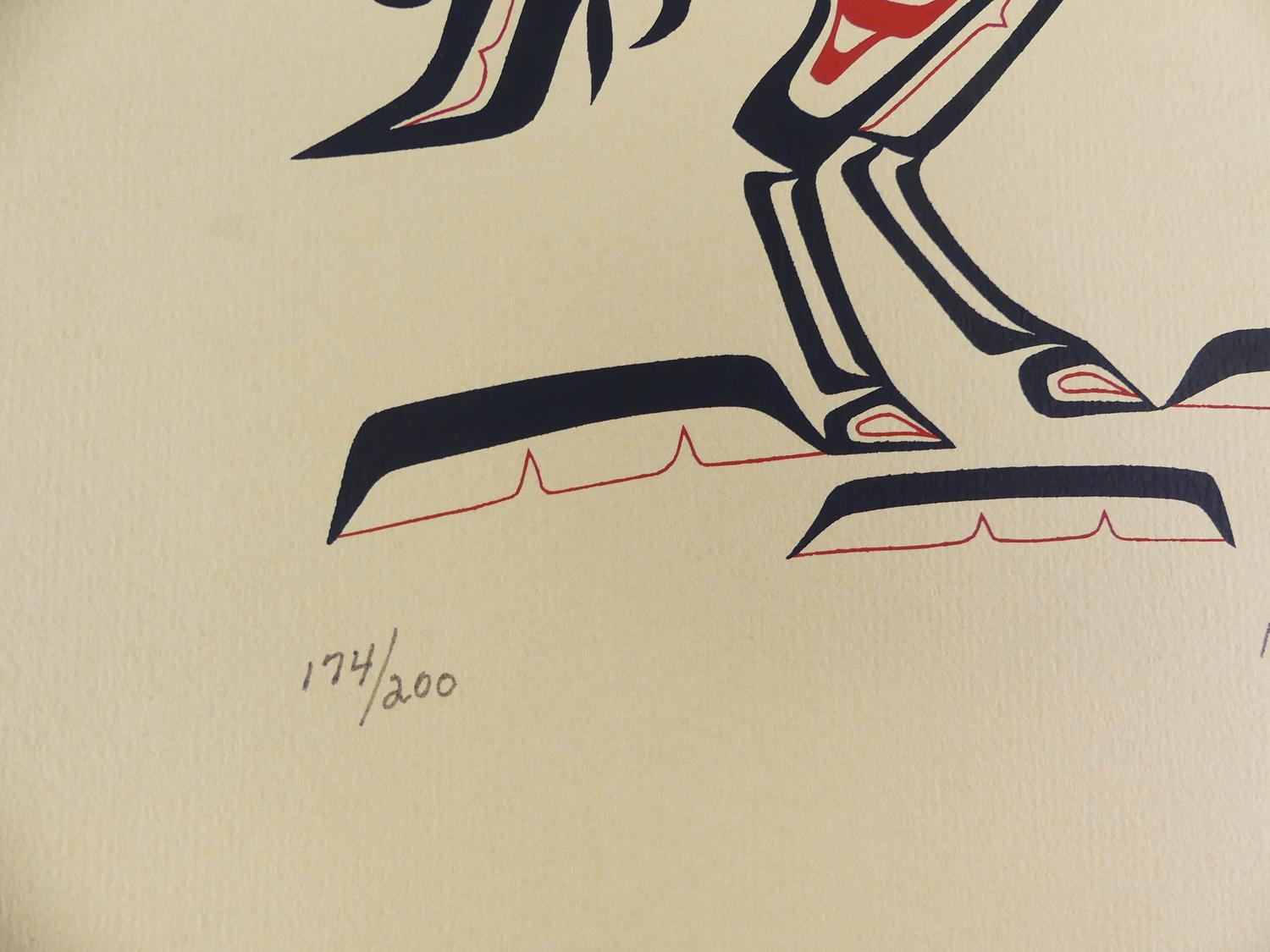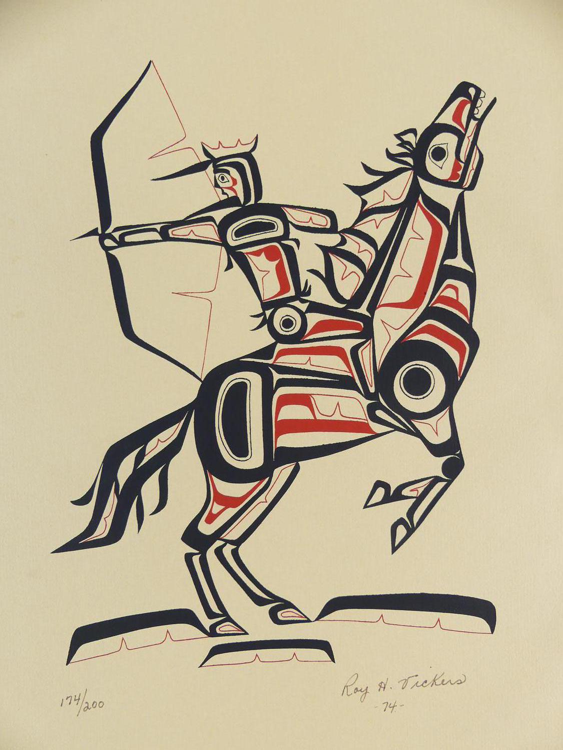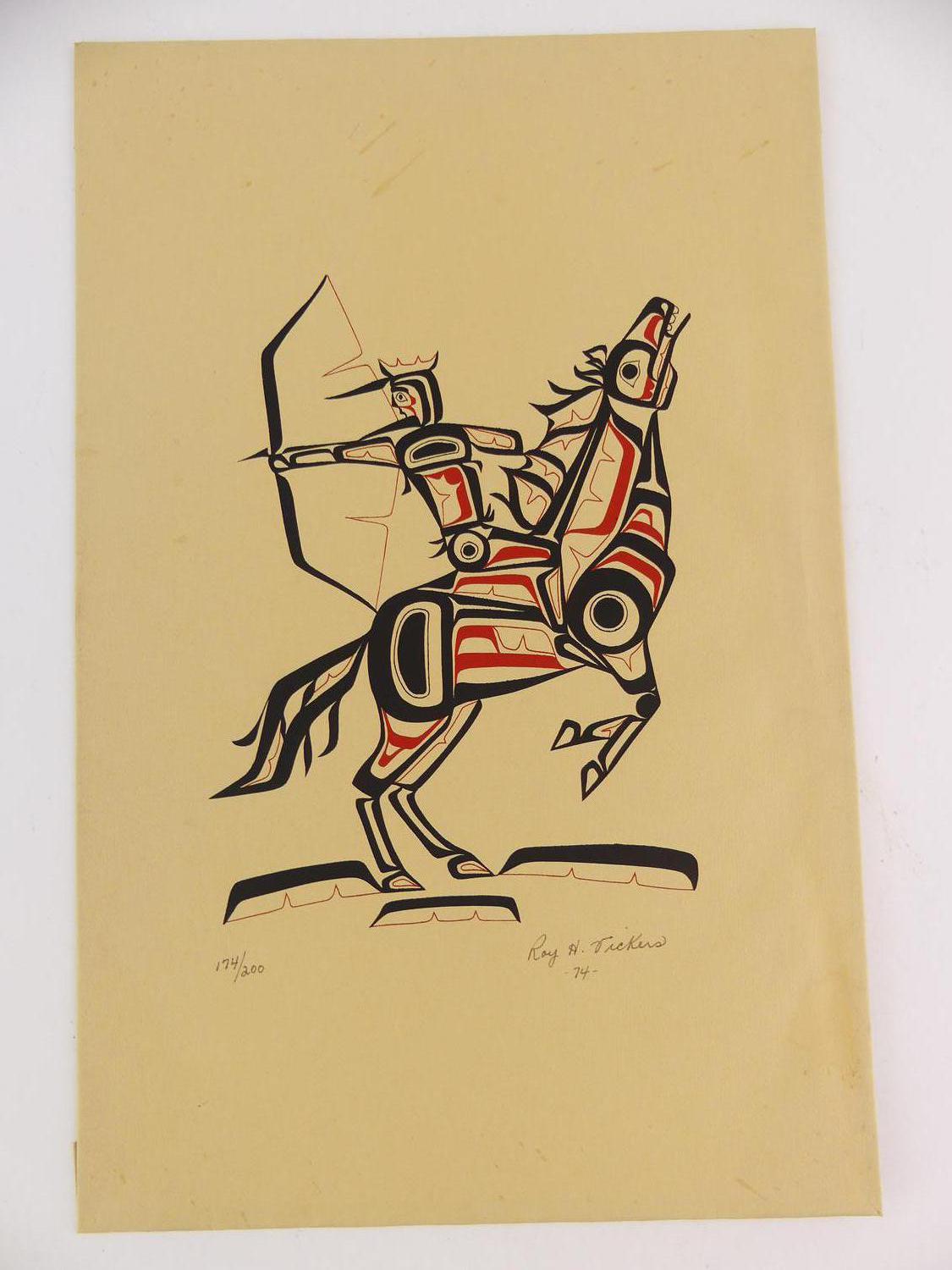 roy henry vickers (b.1946), silkscreen, 174/200, d.1974, 17 1/4" x 14", "untitled - mounted archer" folded salvages