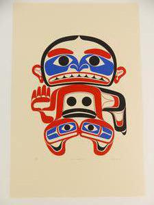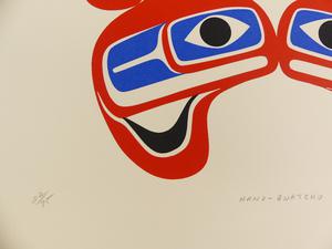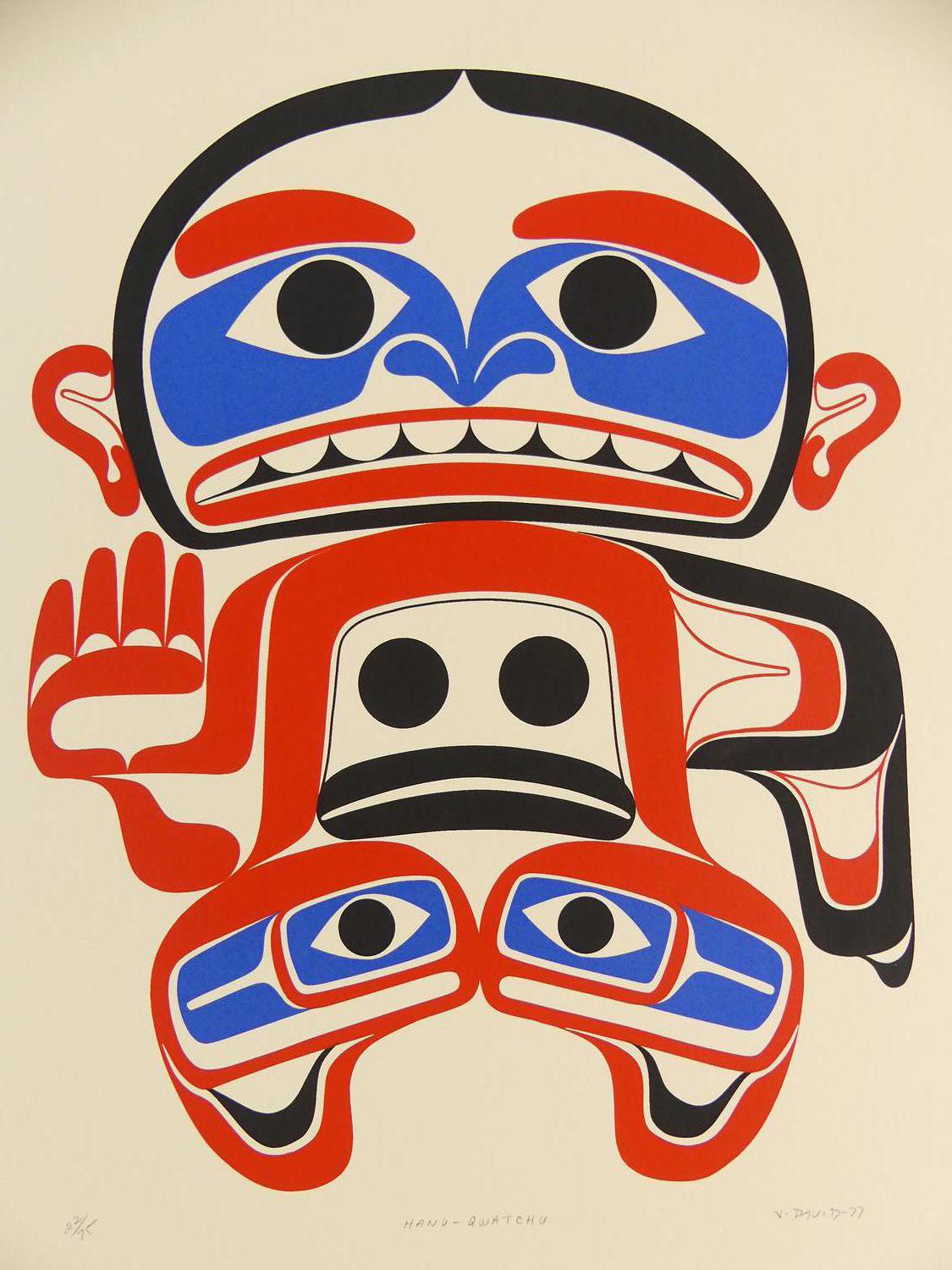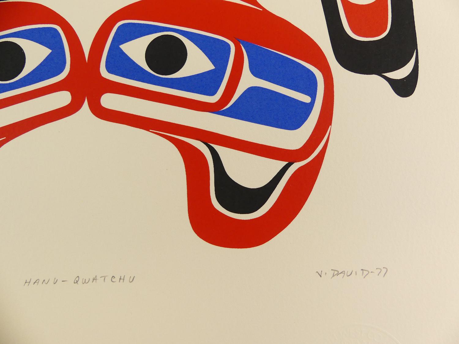 joe david (b.1946), silkscreen, 22/75, d.1977, 22 1/4" x 14 3/4", "hanu-qwatchu"