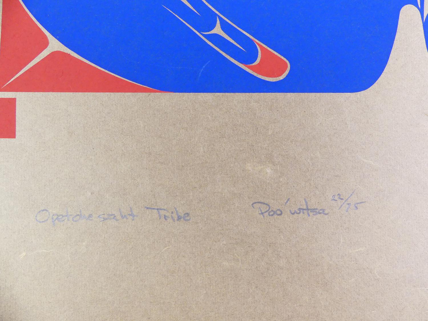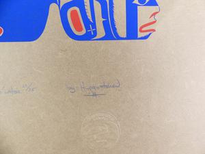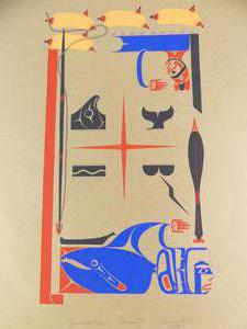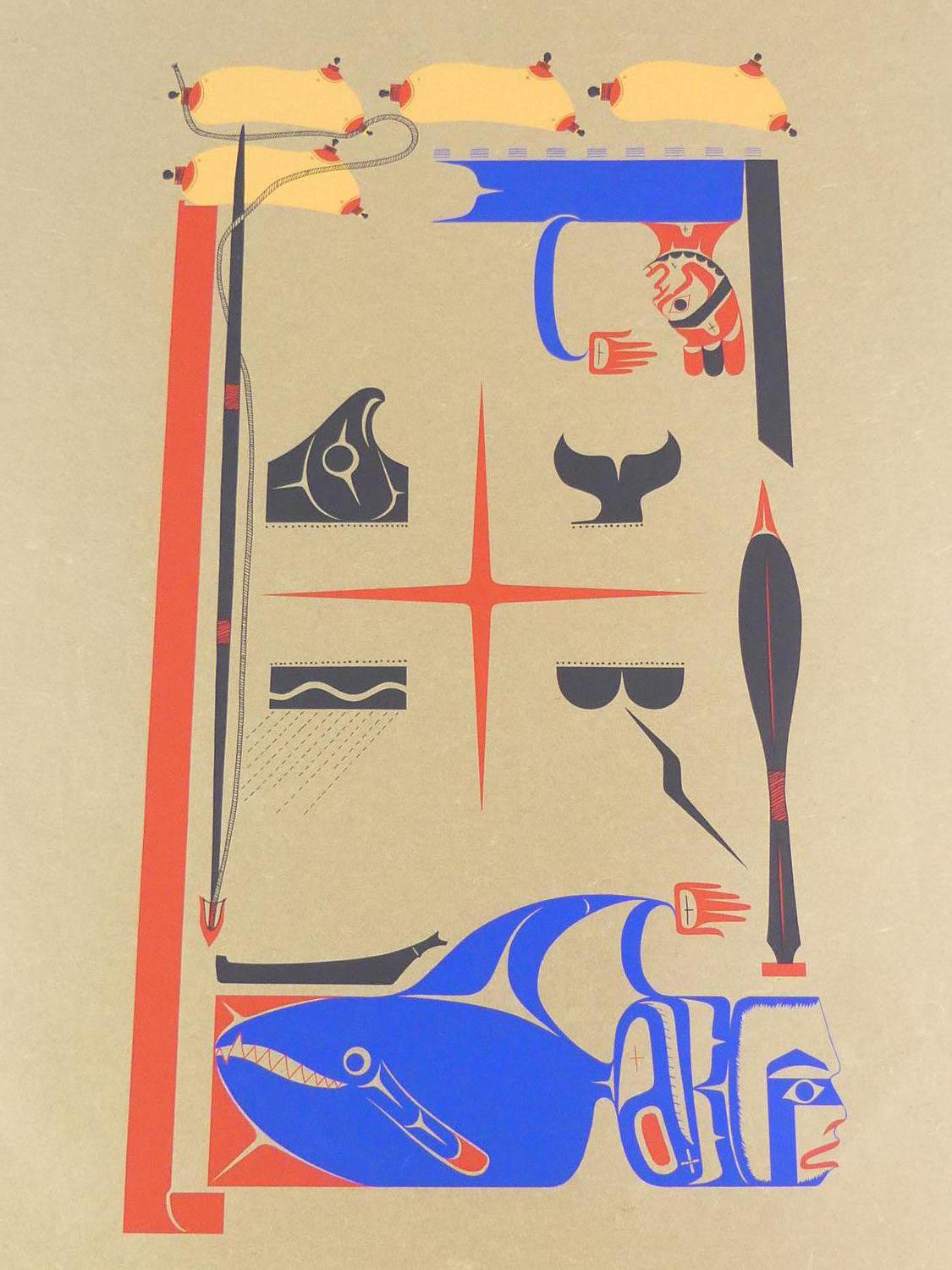 ron hamilton, hupacasath (b.1948), silkscreen, 22/75, c.1977, 37" x 24 1/2", "poo'witsa - the whaler's dream"