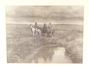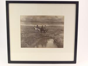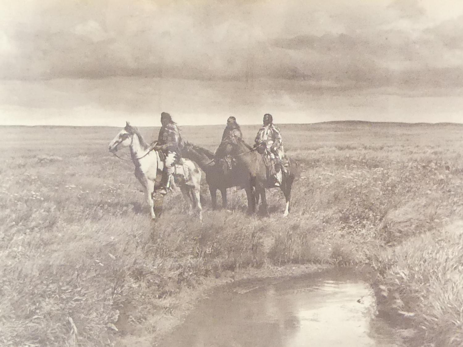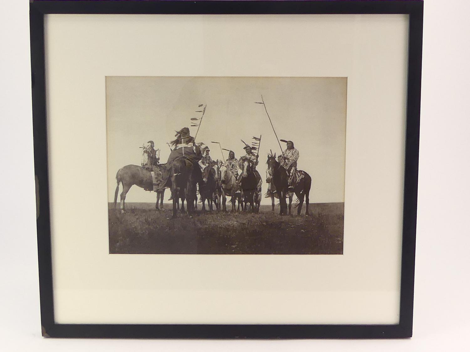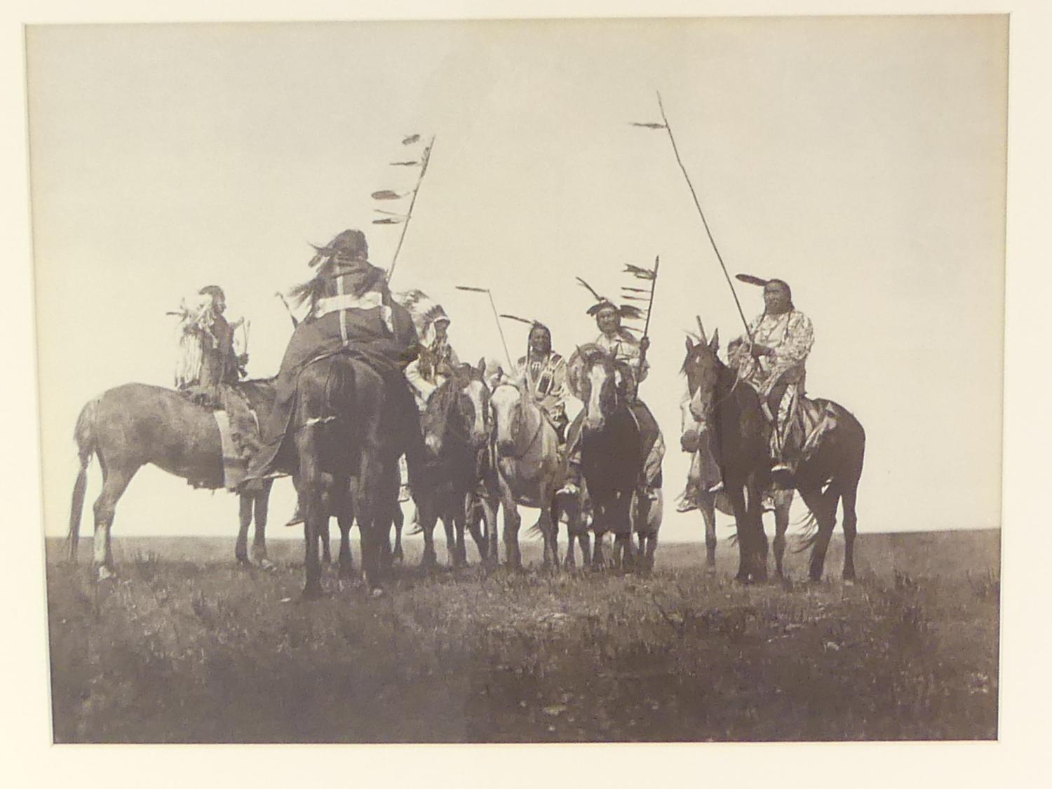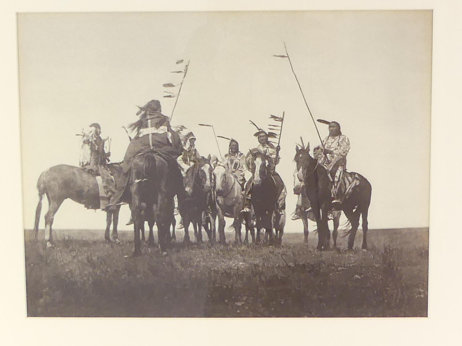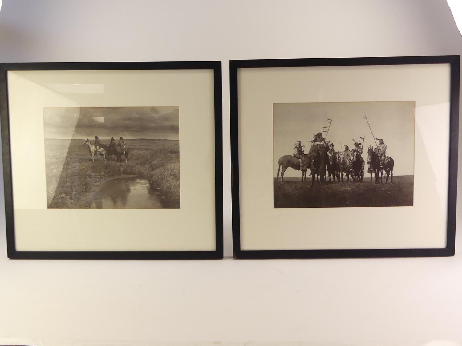 edward s. curtis (1868-1952), two framed photographs, 11 1/2" x 15", "the three chiefs" & "atsina warriors"