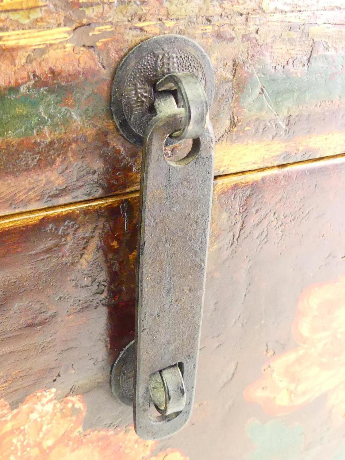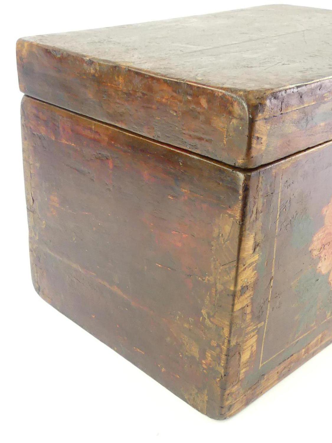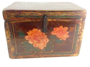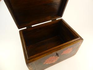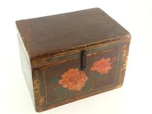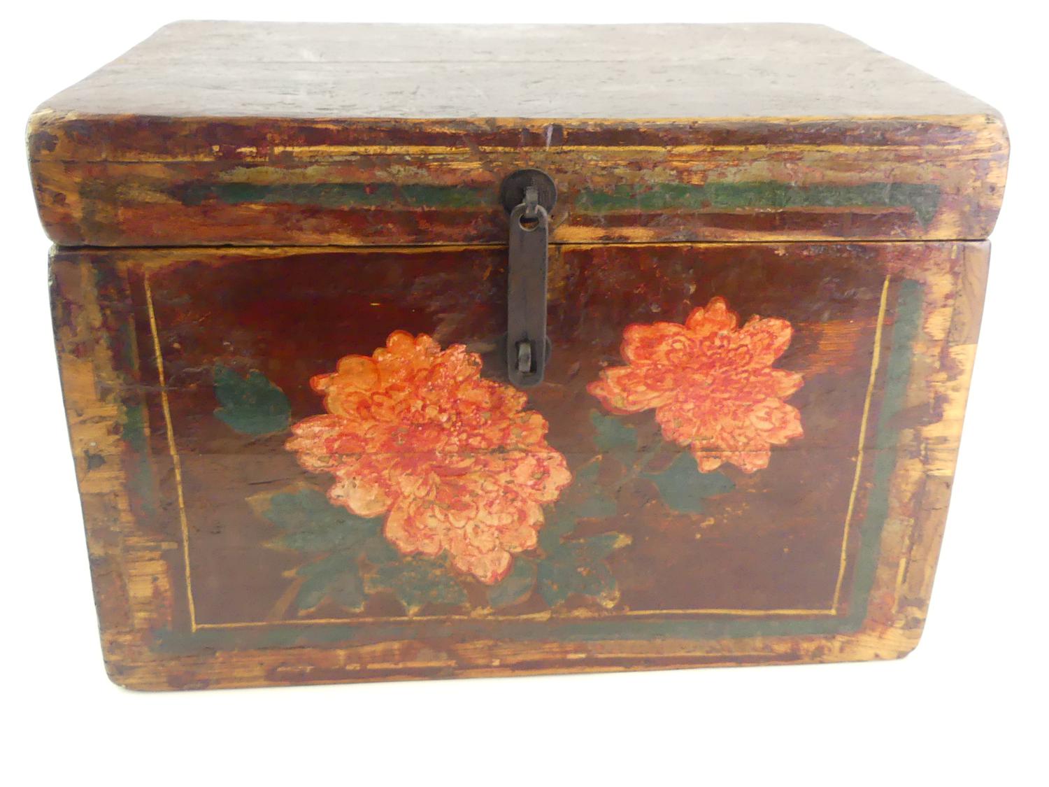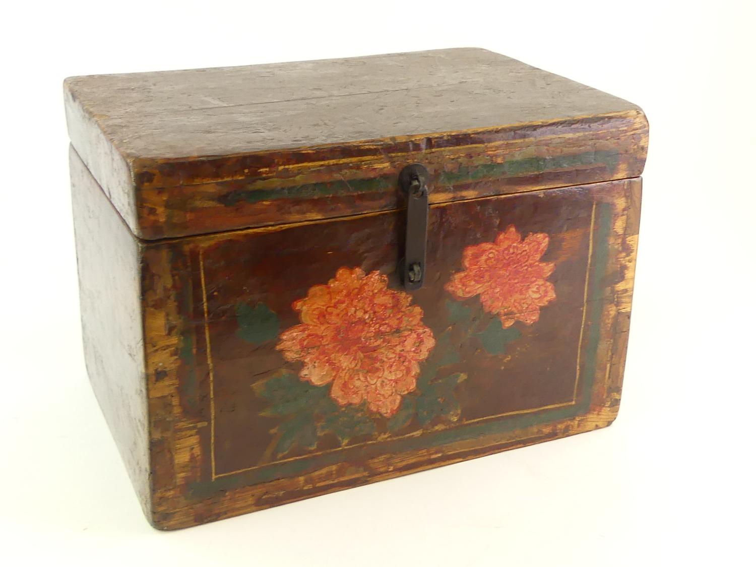 chinese lacquered and painted box decorated with flowers, early 20th century, 12" x 17" x 12"