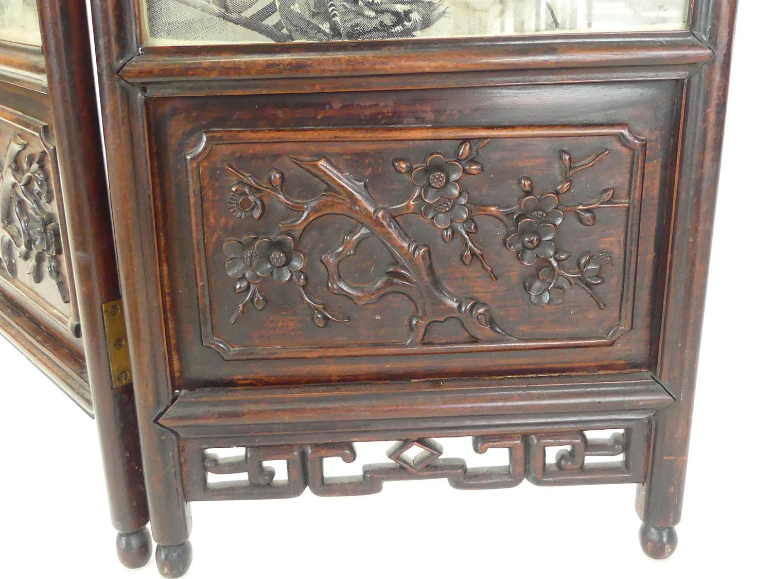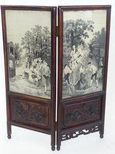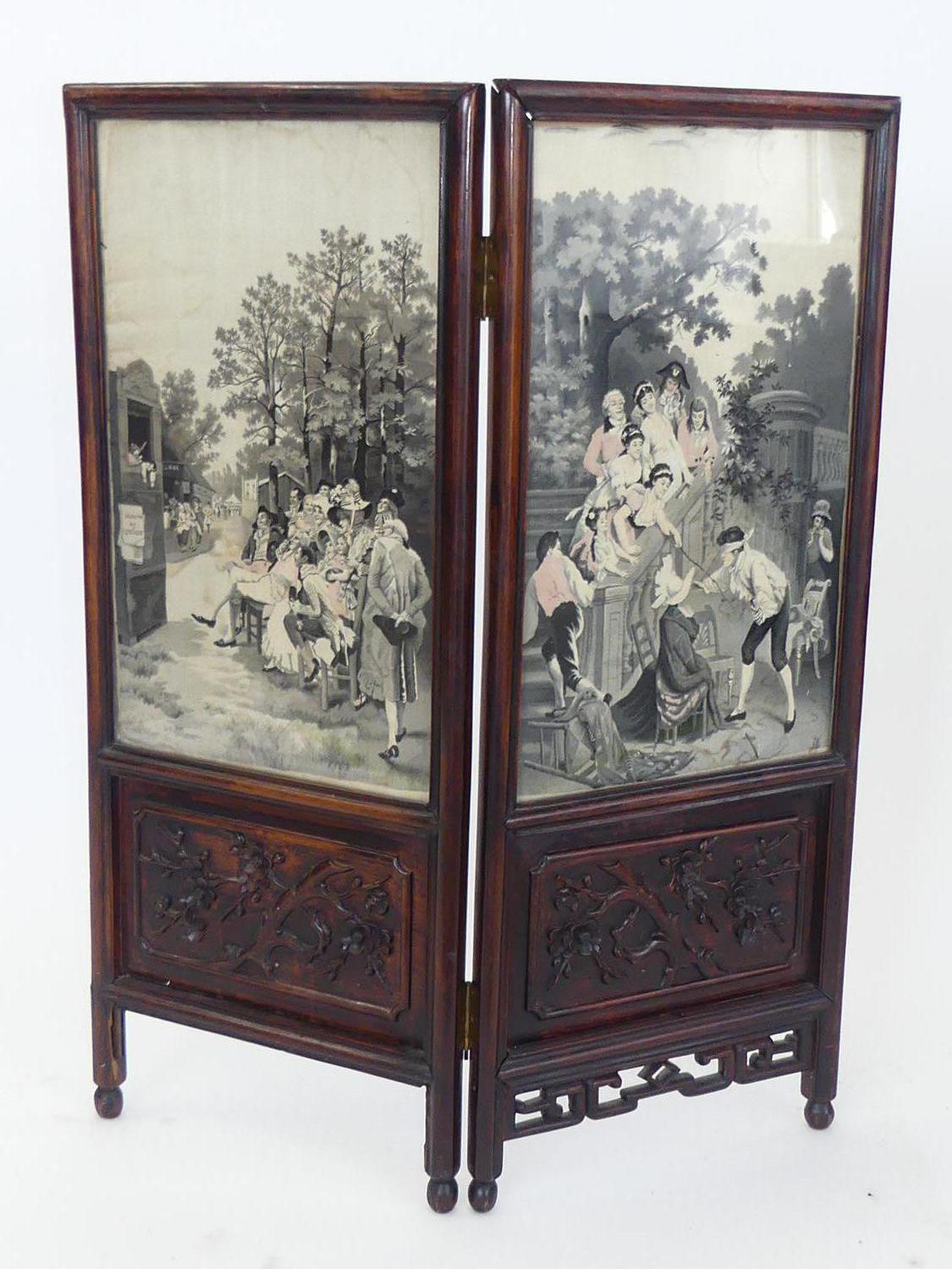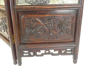 19th century chinese carved hardwood 2-panel screen, 34" x 13 1/2"