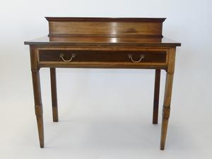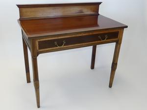 fine edwardian inlaid mahogany two drawer side table, maple & co. london, c.1900, 36" x 39" x 21"