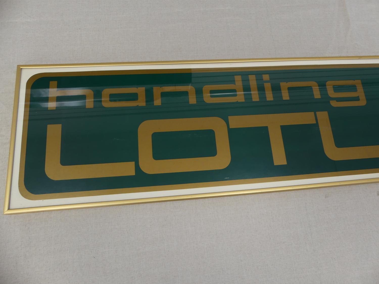 framed lotus cars "handling by lotus" poster, 11" x 48"
