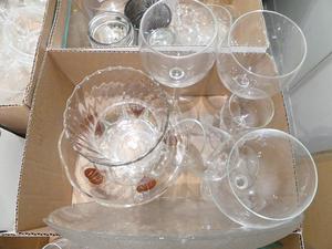 large lot of glassware and oval mirrors