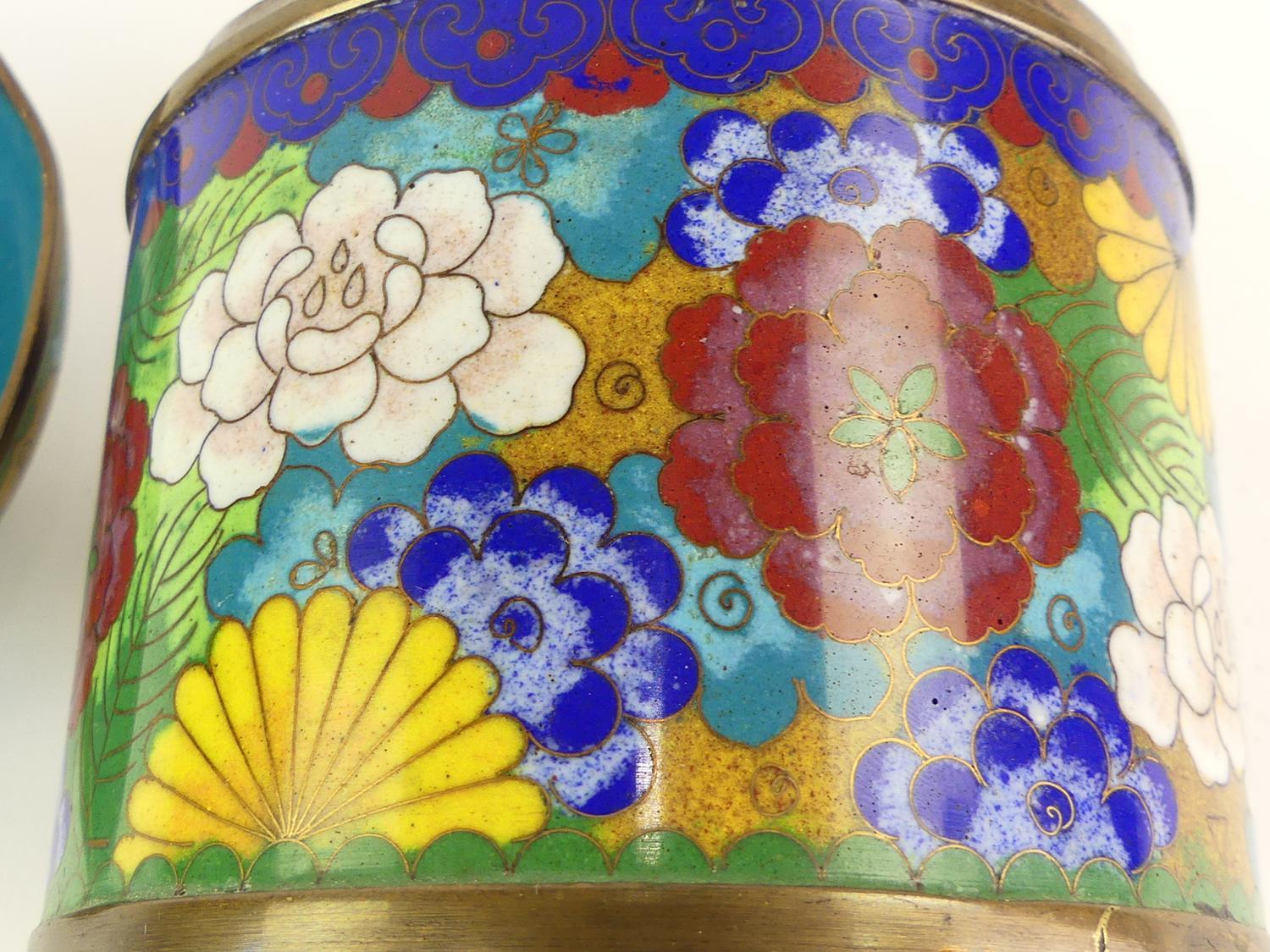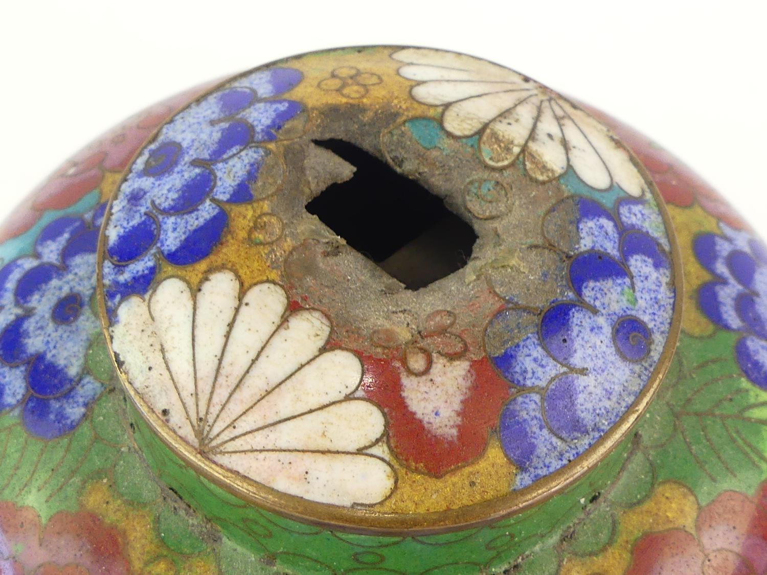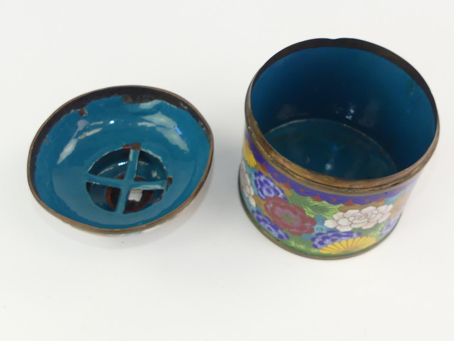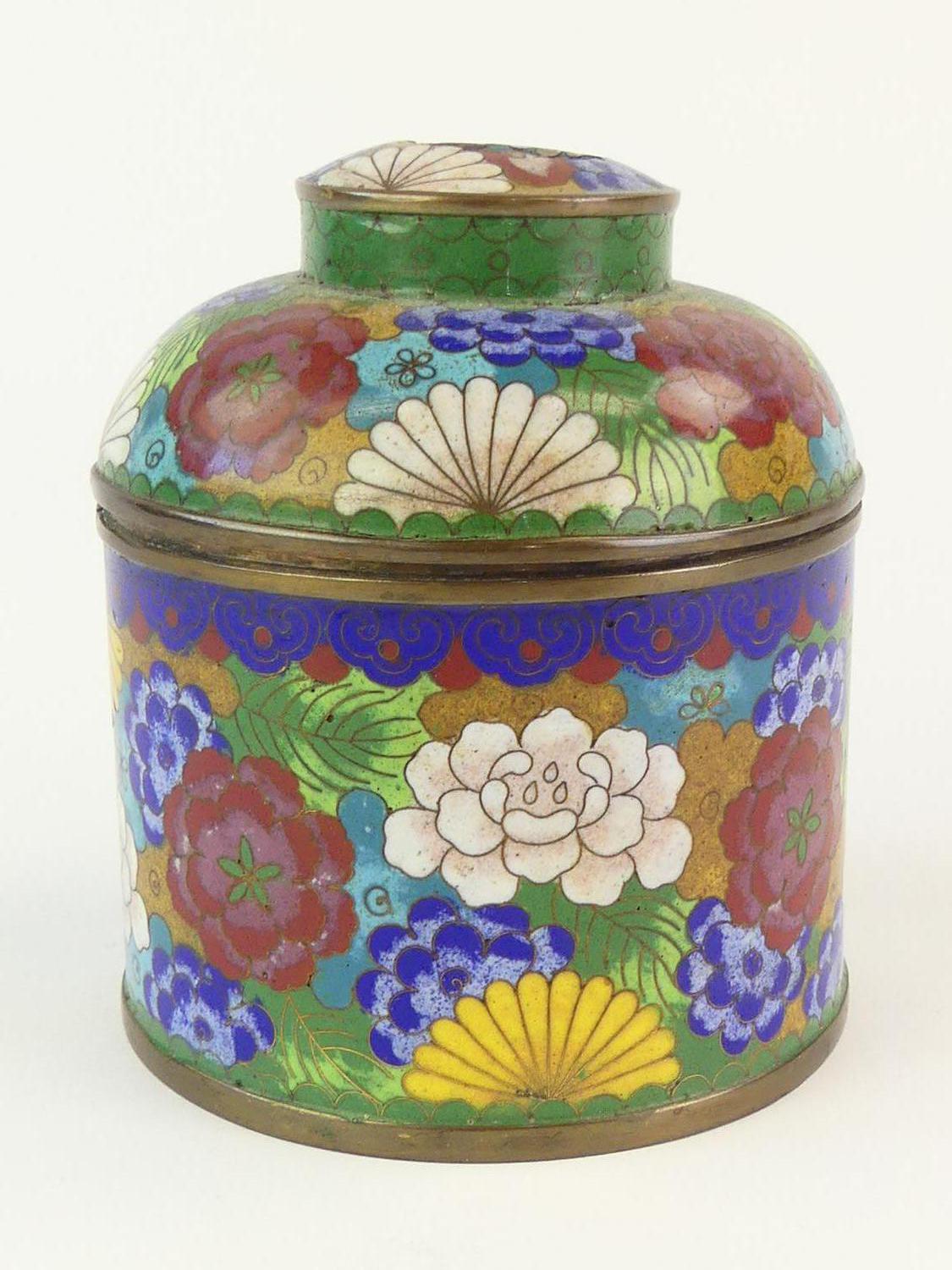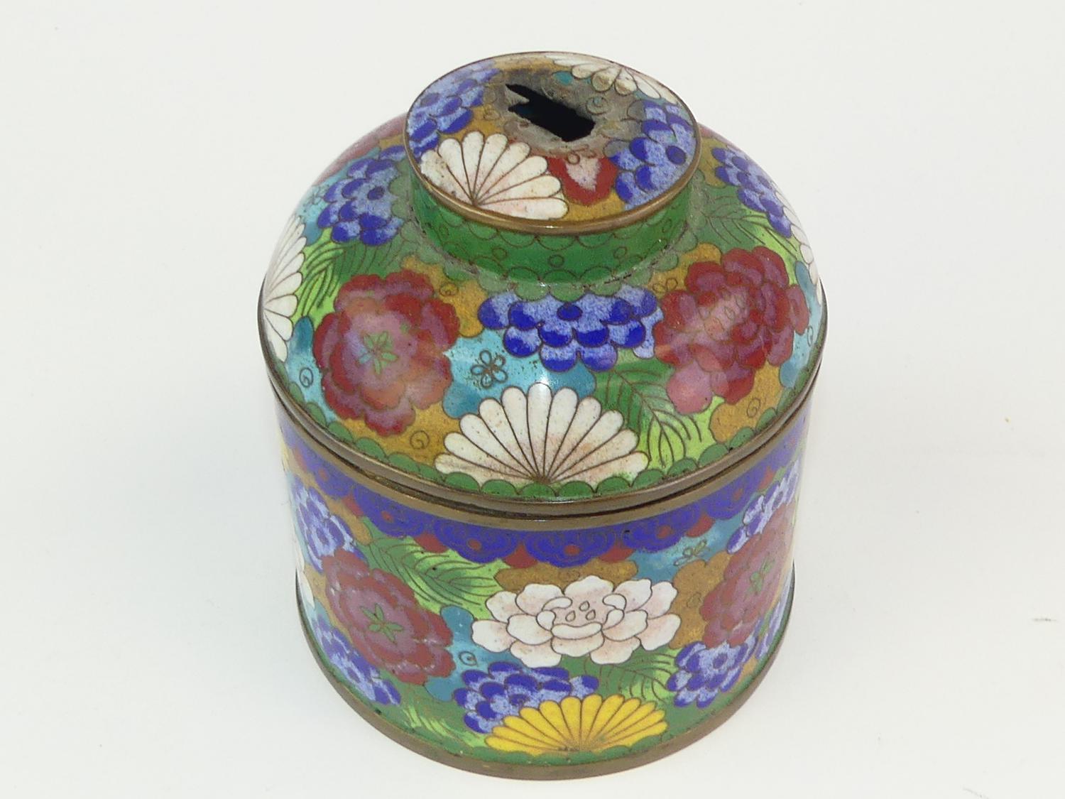 chinese cloisonne enamel covered tea box, damage/missing finial, early 20th century, 5" x 4 1/4"
