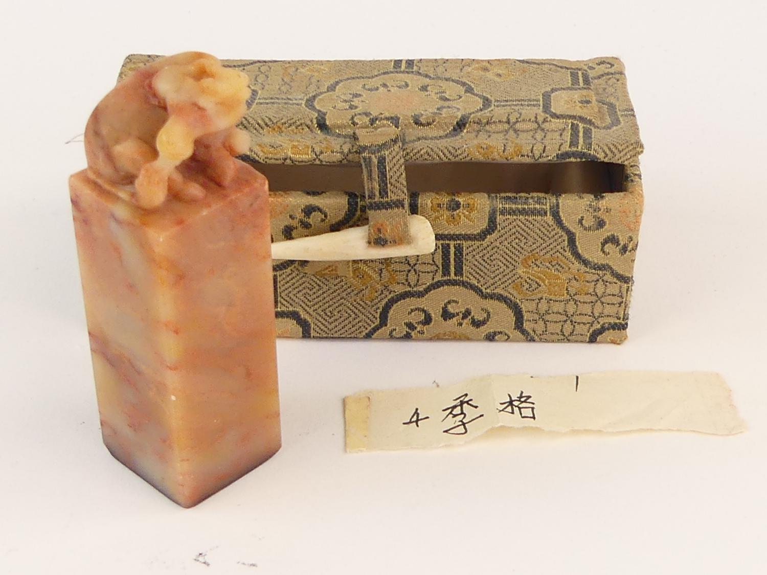cased chinese carved hardstone seal, ht. 2 3/4"