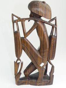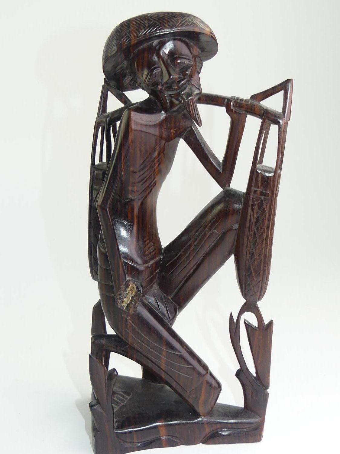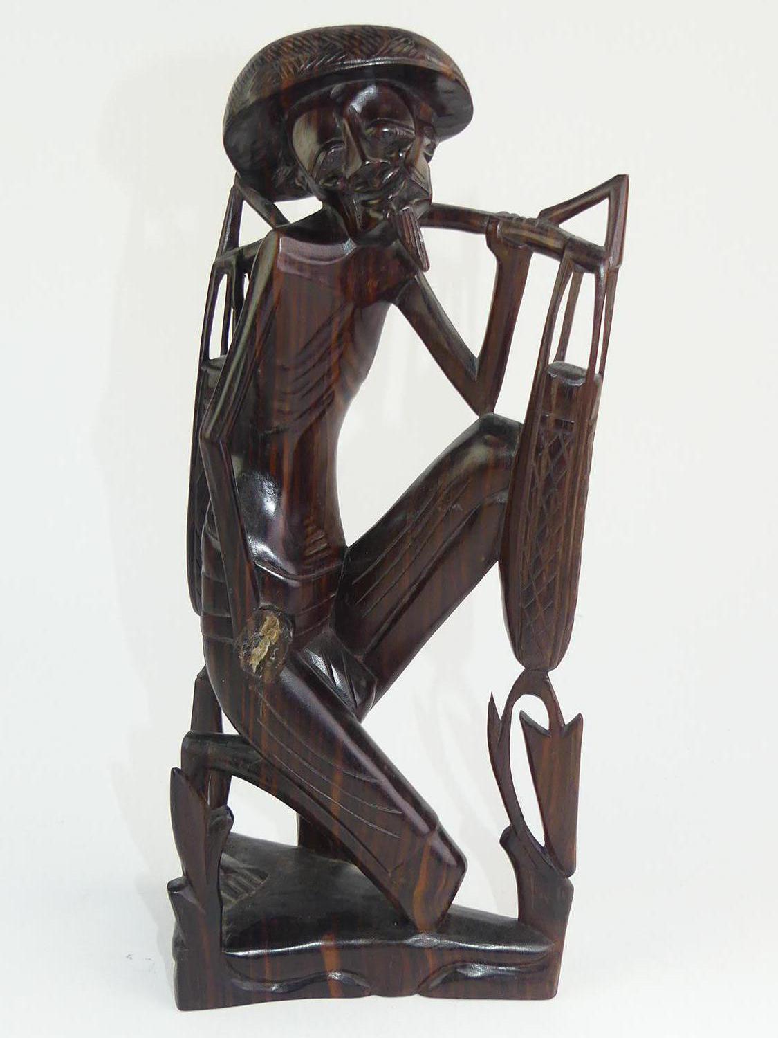 carved macassar ebony asian figure, losses, late 20th century, ht. 13 1/2"
