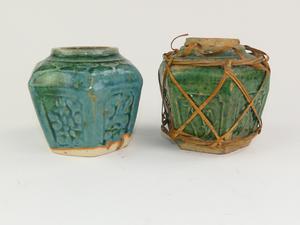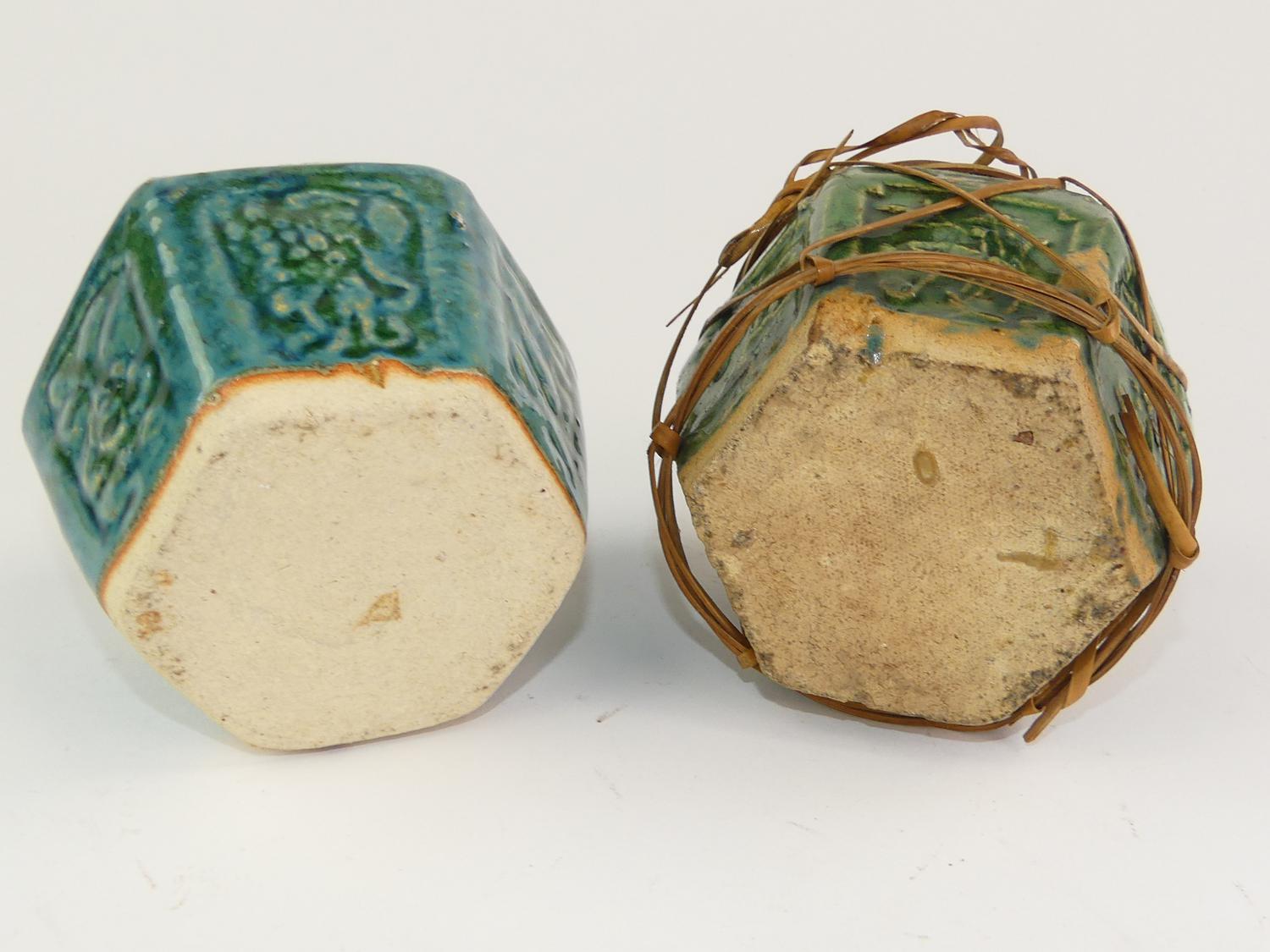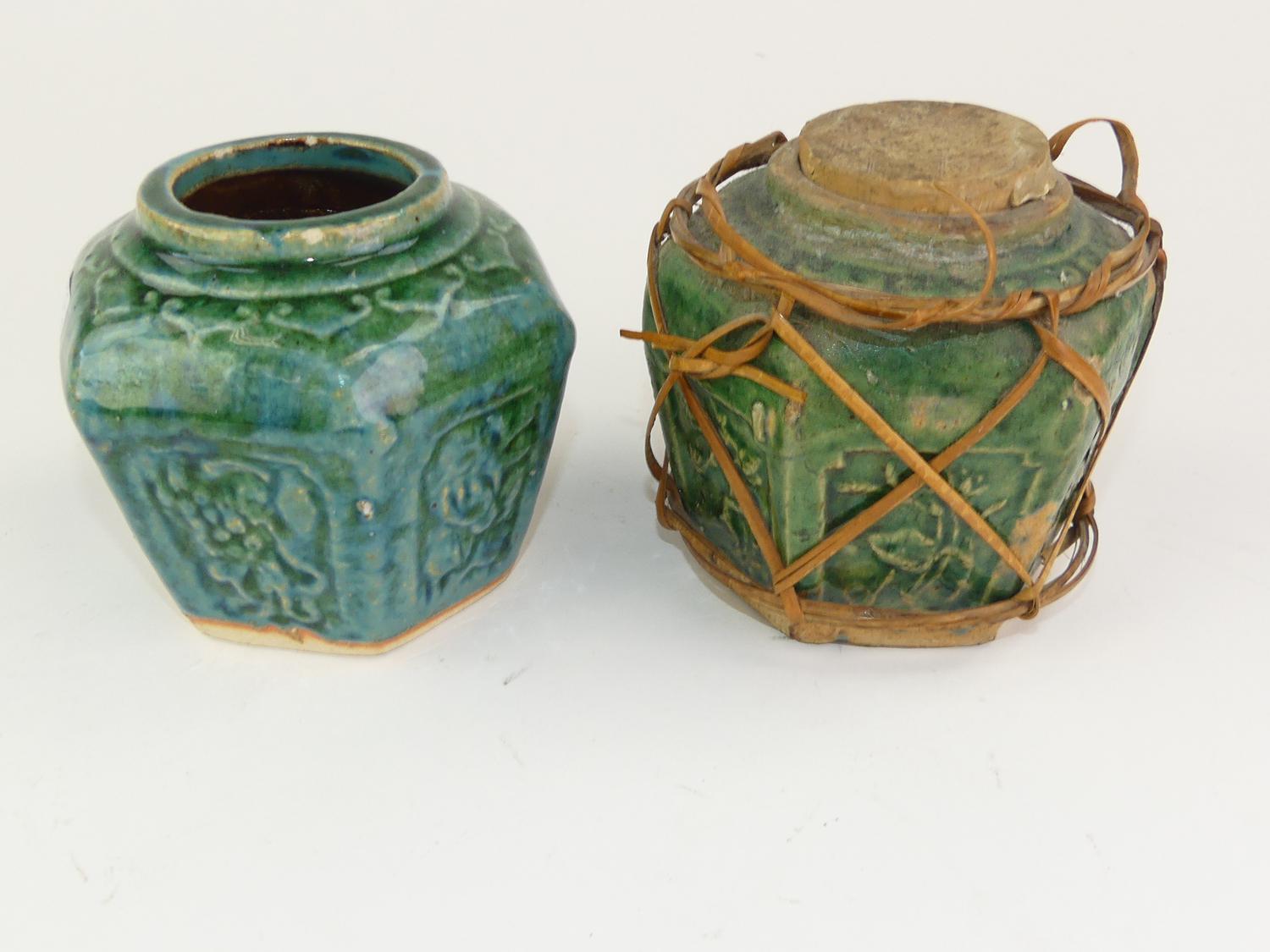 two chinese green glazed ginger pots, 20th century, ht 4"