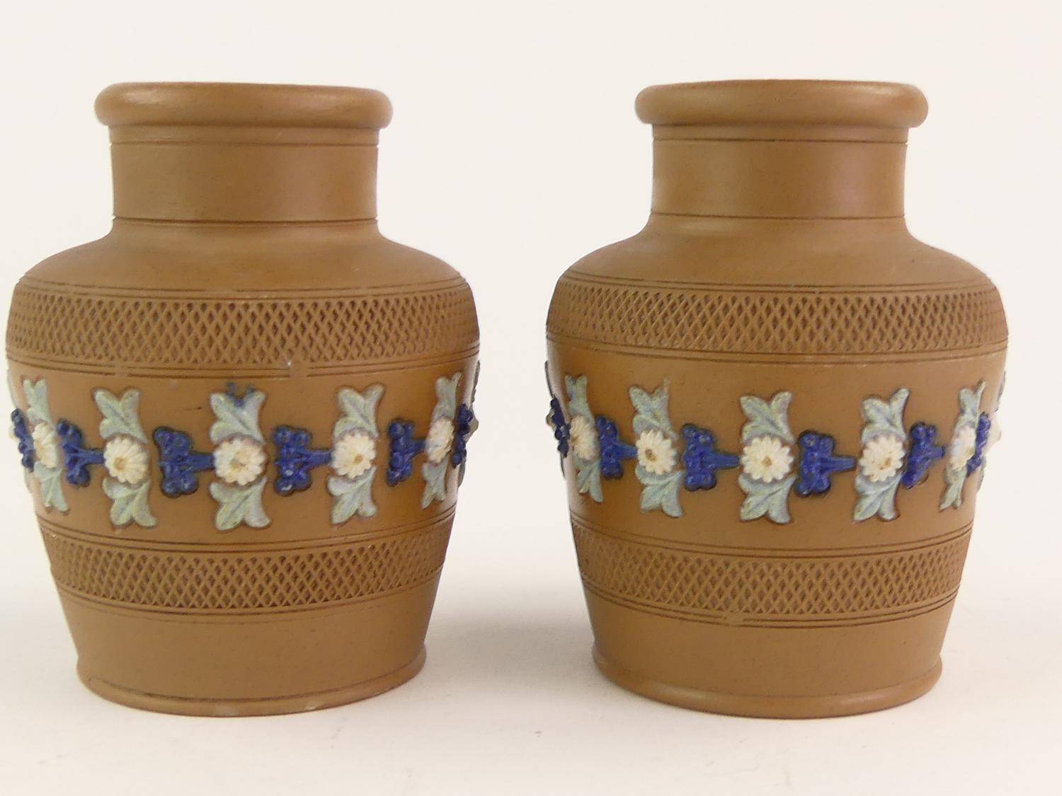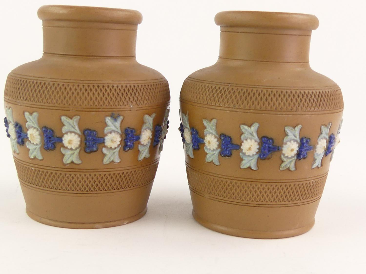pair of doulton silicon lambeth glazed vases, c.1900, ht. 4"