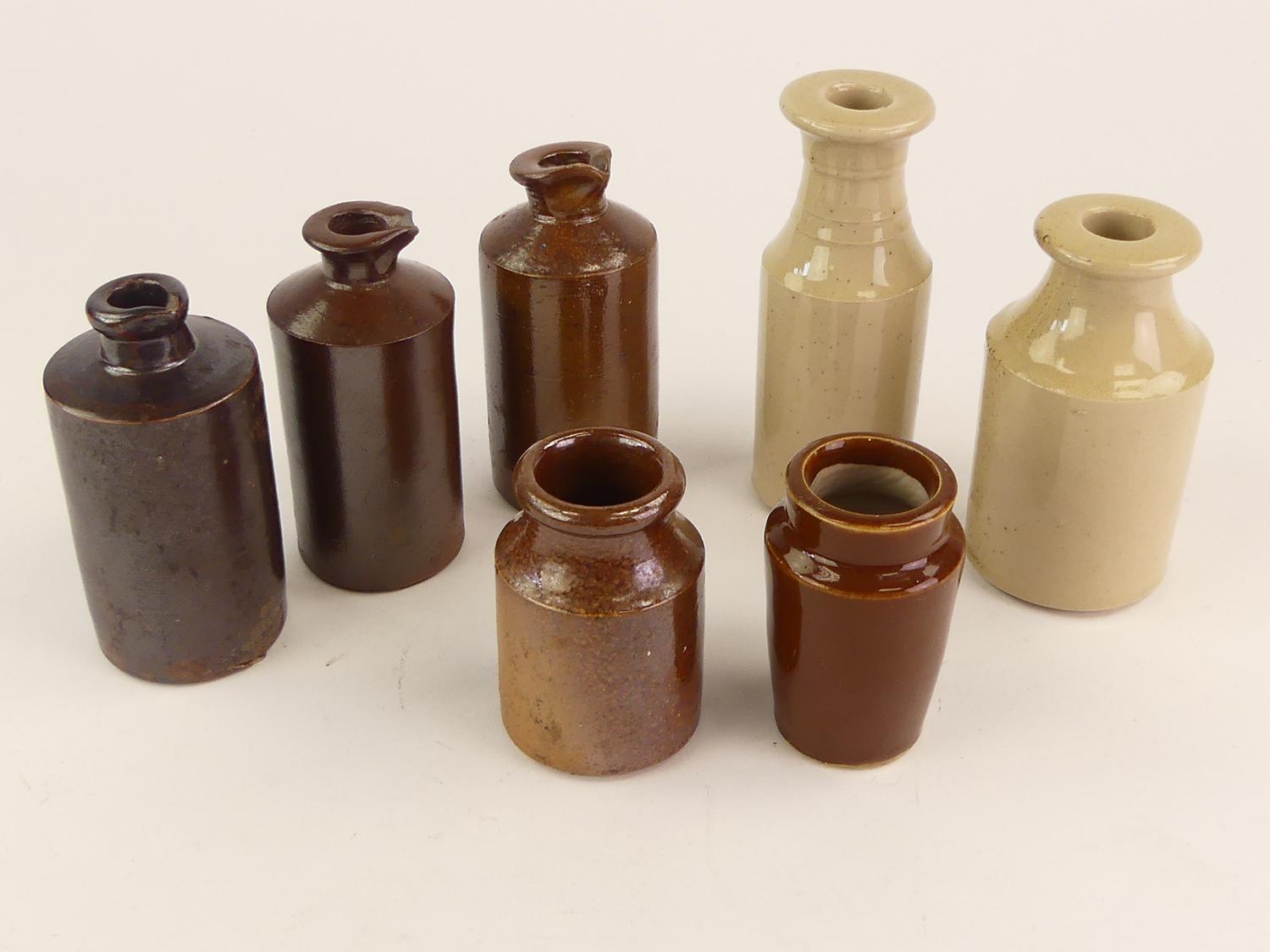 lot of glazed ink bottles including doulton, ht. 5 1/4" and smaller