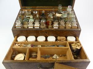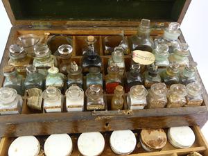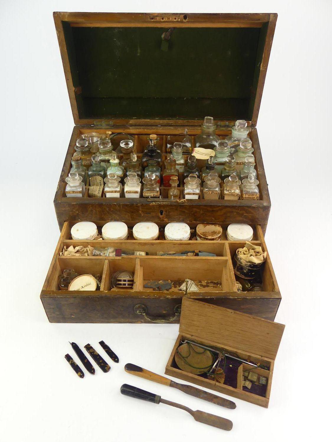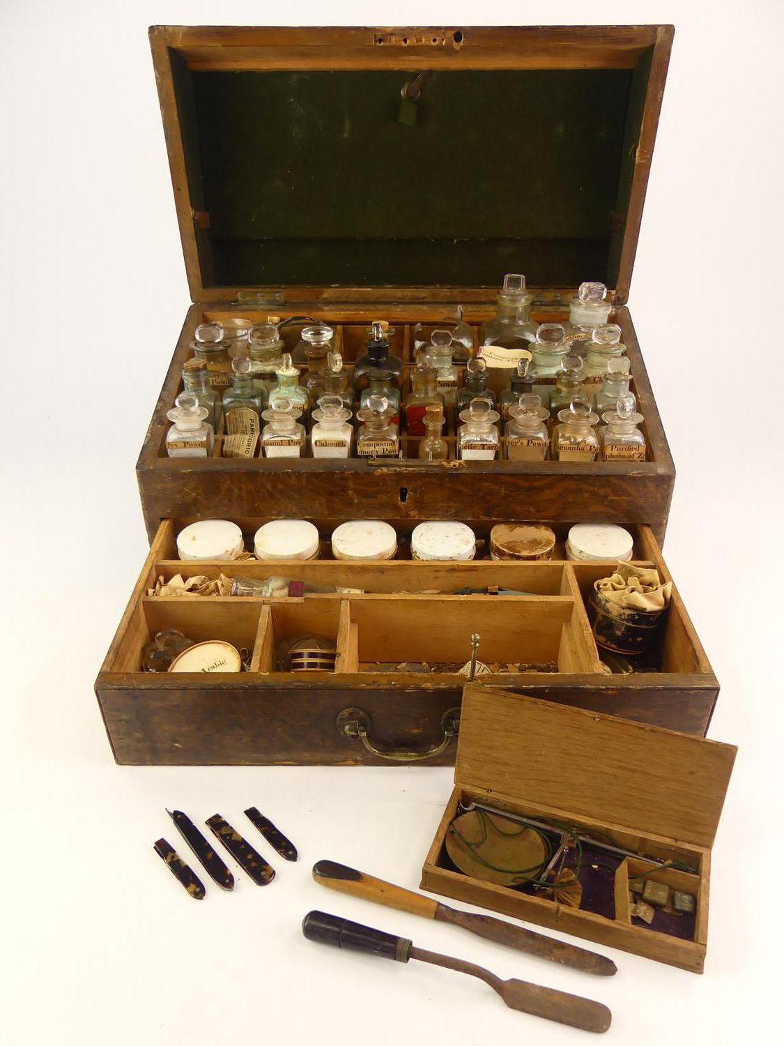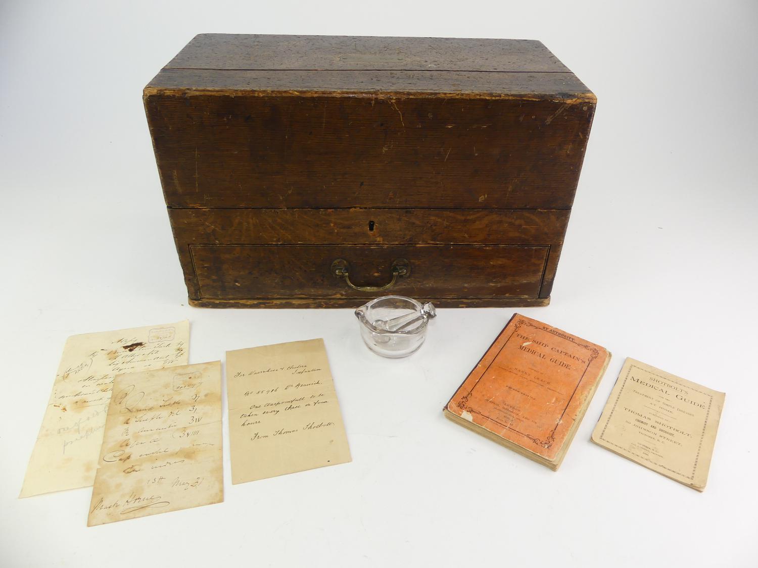 -case bears brass name plate W.H.M. Mill-Historical early Victoria ephemera including Langley & Co Druggists, Victoria BC, Thomas Shatbolt,