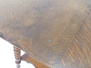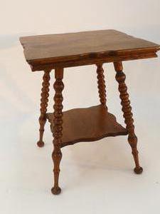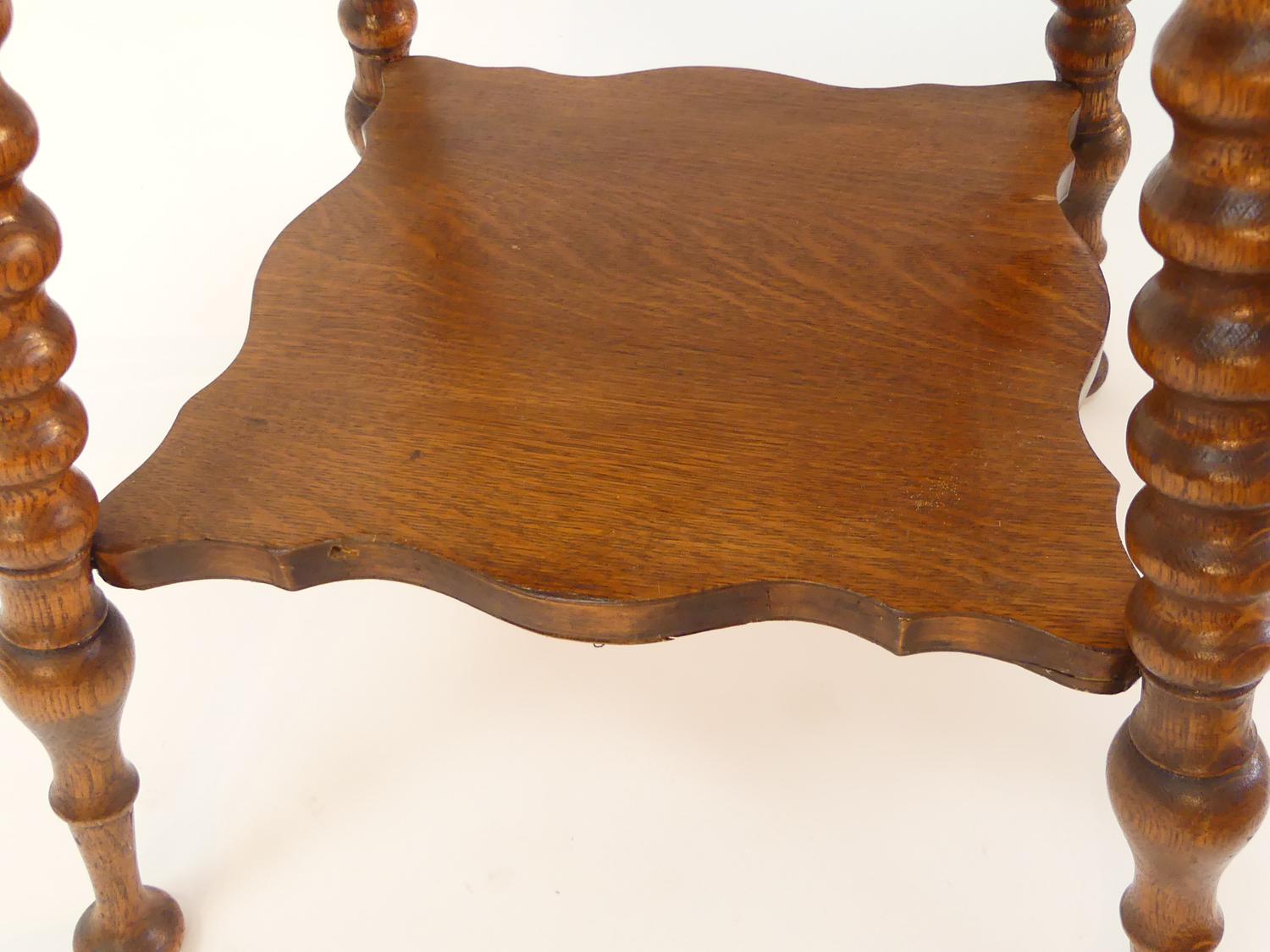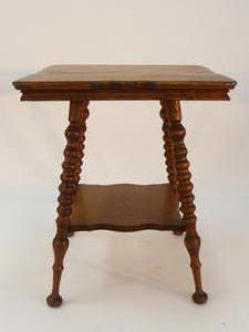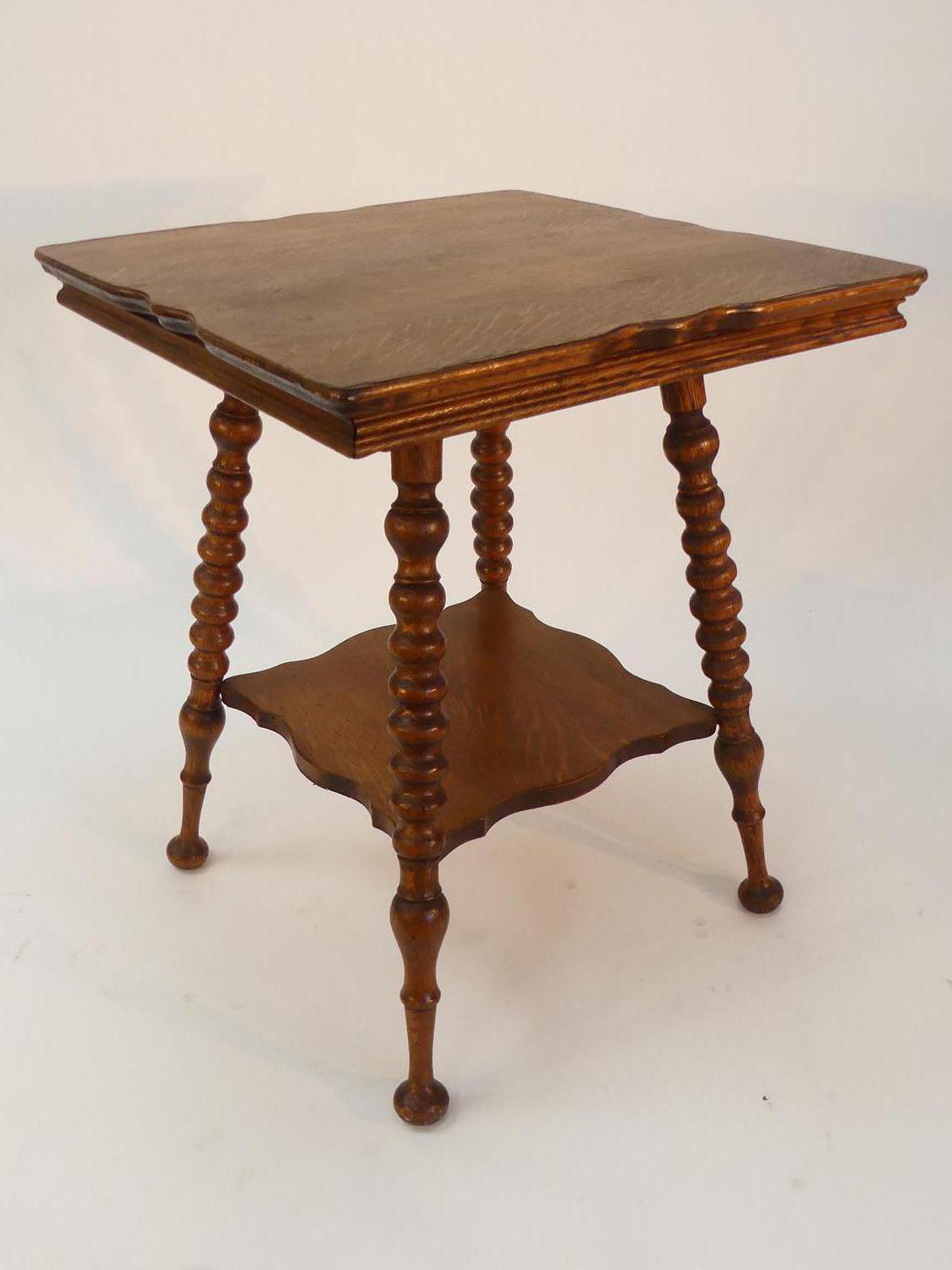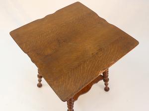 late 19th century oak two tier lamp table with turned splayed legs, 29" x 24" x 24"