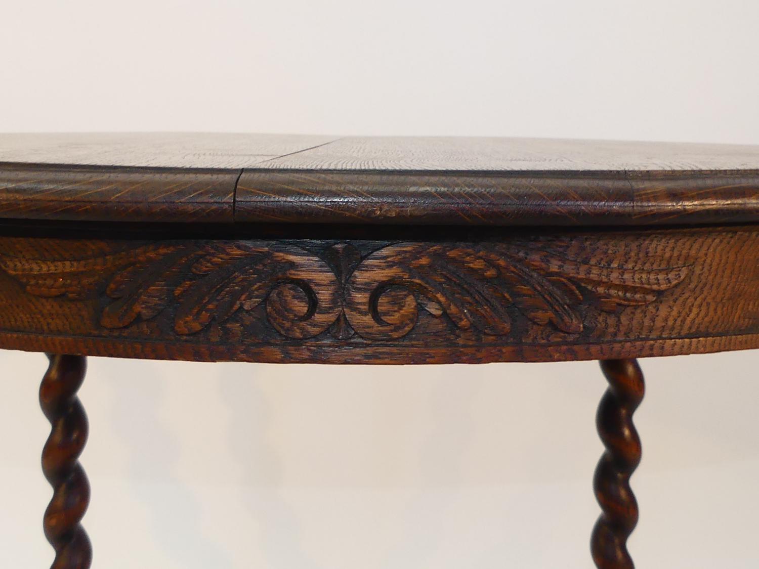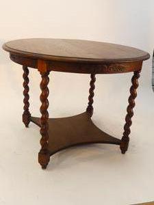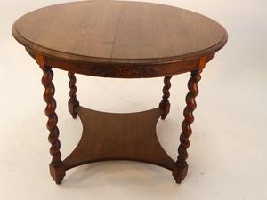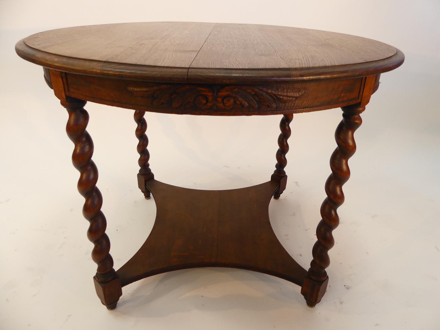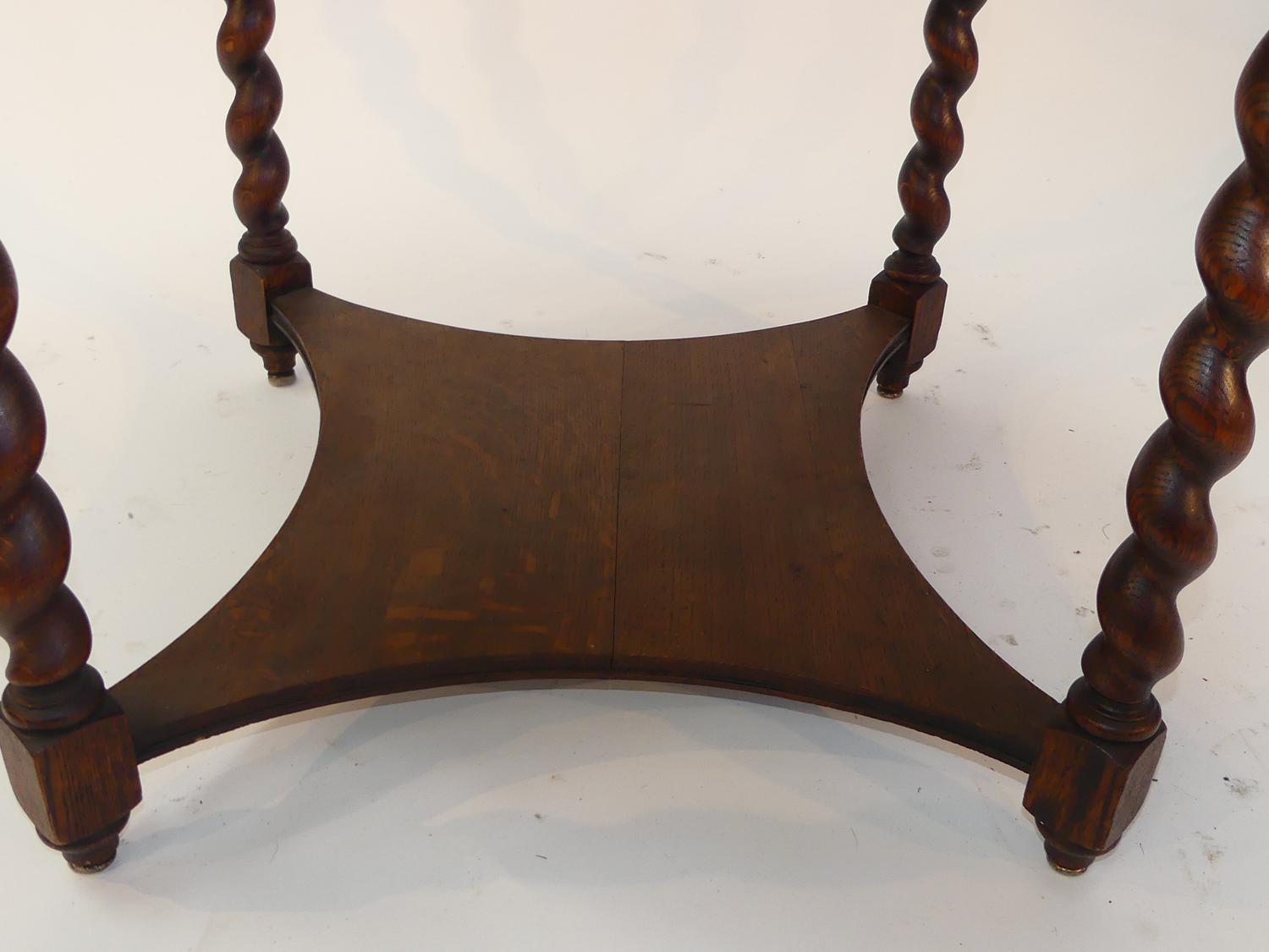 arts & crafts oak centre table with barley twist supports, england early 20th century, 26 1/2" x 36"